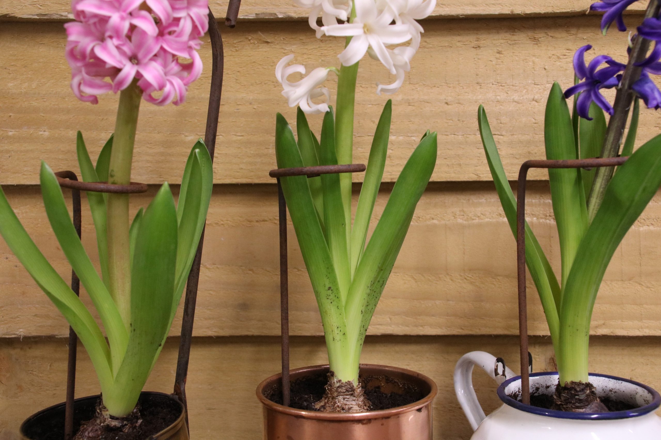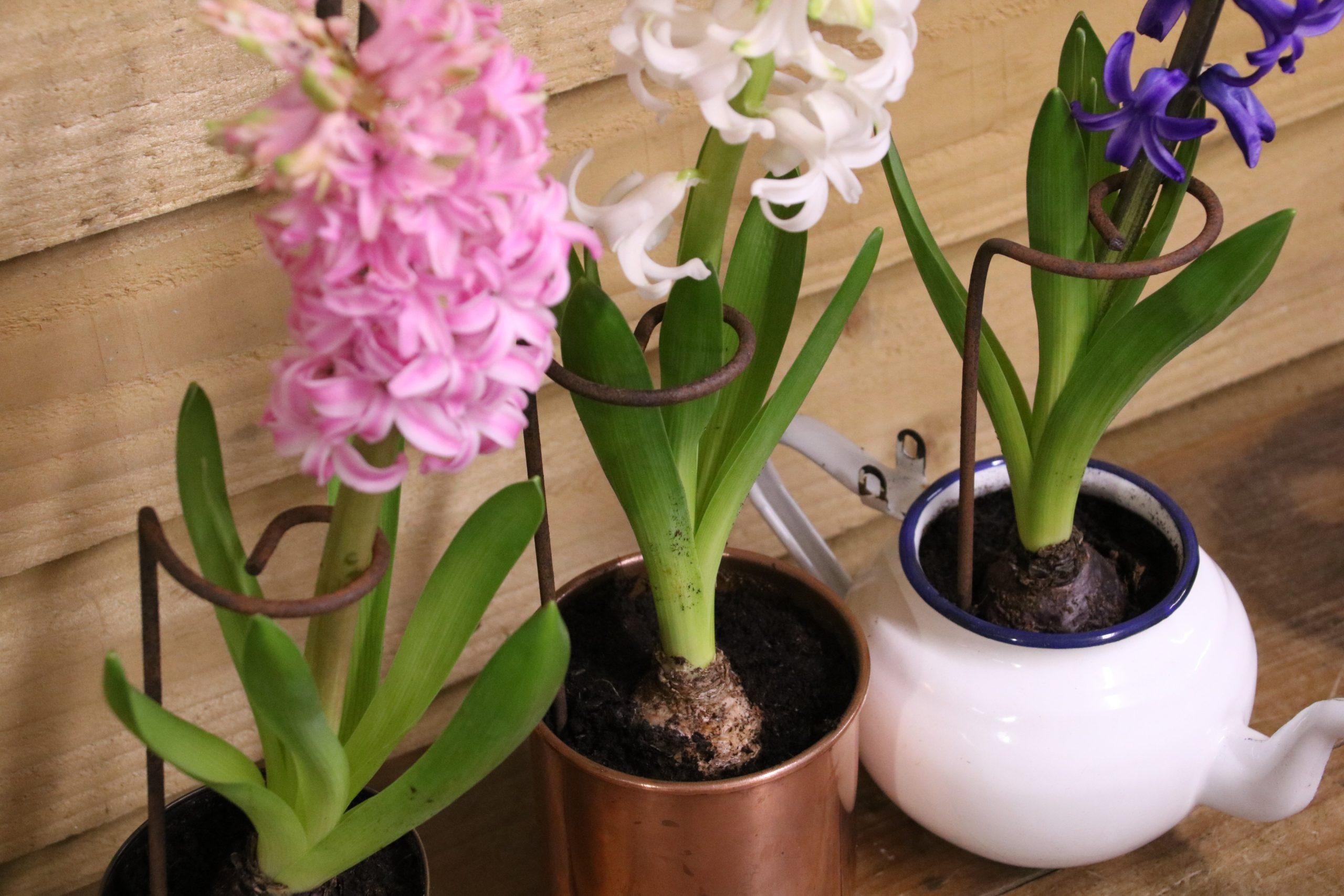 A set of 3 mini metal plant support crooks, the perfect size for potted plants such as Hyacinths etc. Simply pop them into a pot and gently curl the stem around the support, then watch those blooms stand tall and proud!