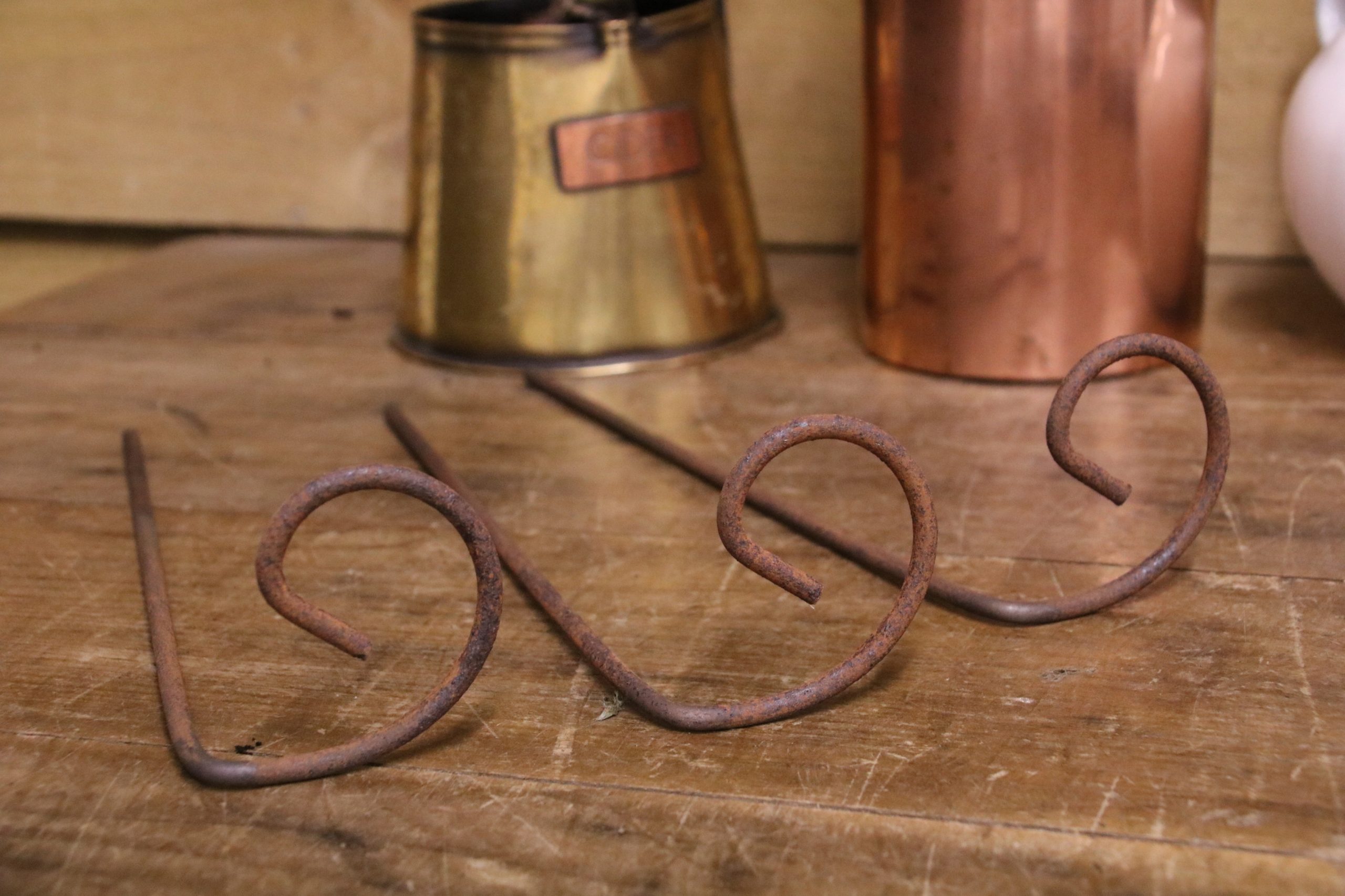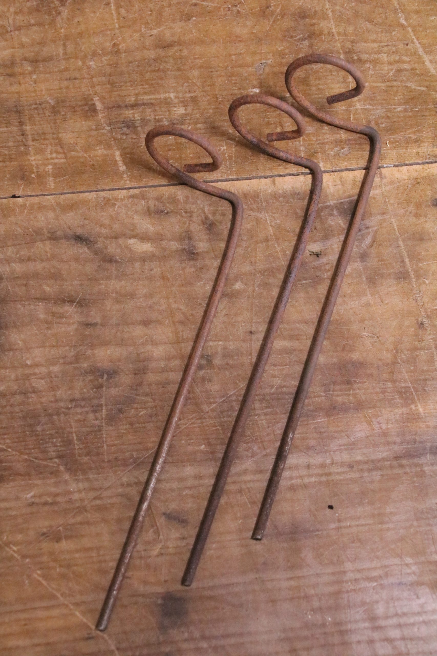 Handmade on the Welsh border by us from 4mm solid steel bar with a natural rust finish. They may be supplied as plain steel (just made) which will develop a beautiful rust coating very quickly or in various stages of rust patina according to the date of manufacture.
