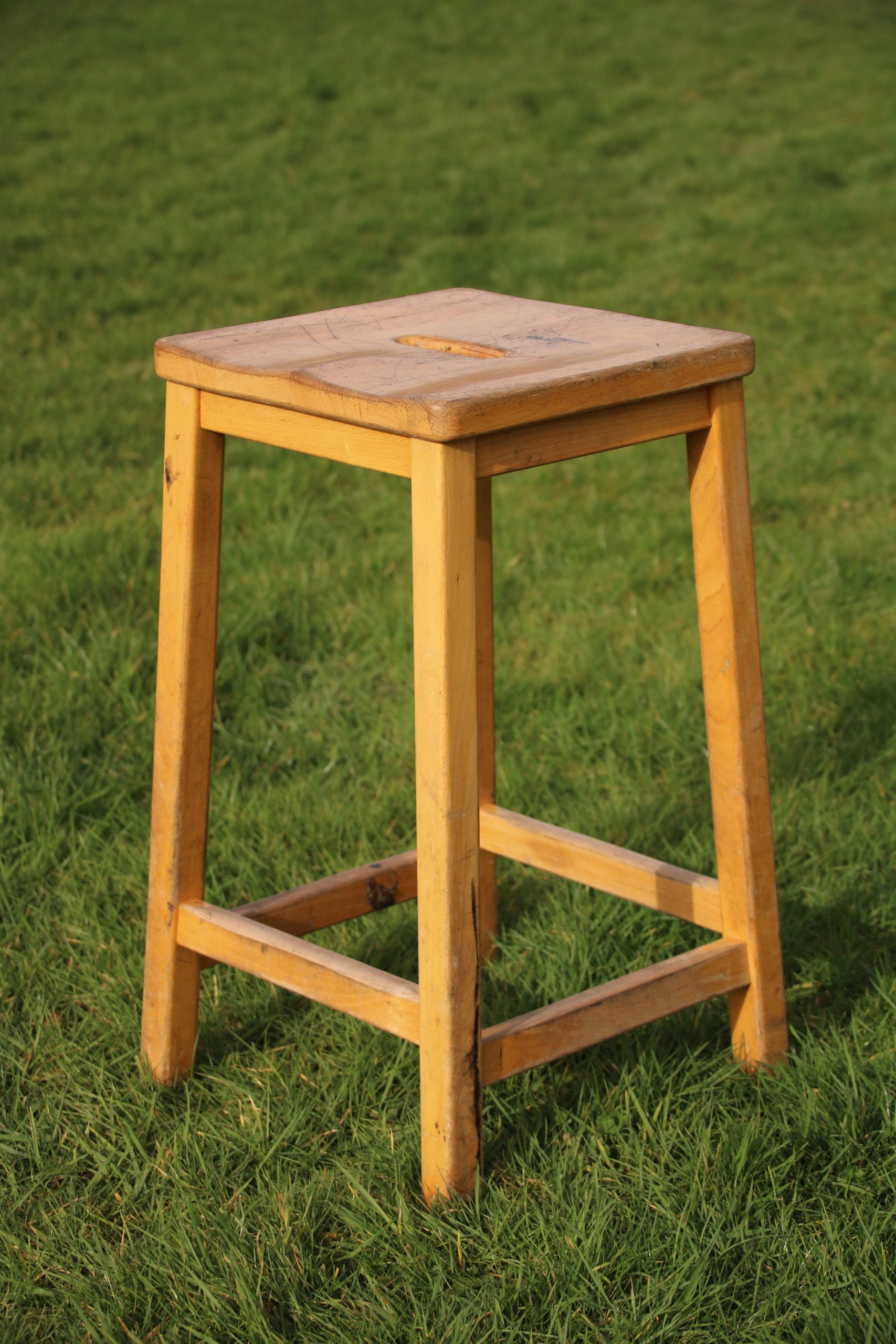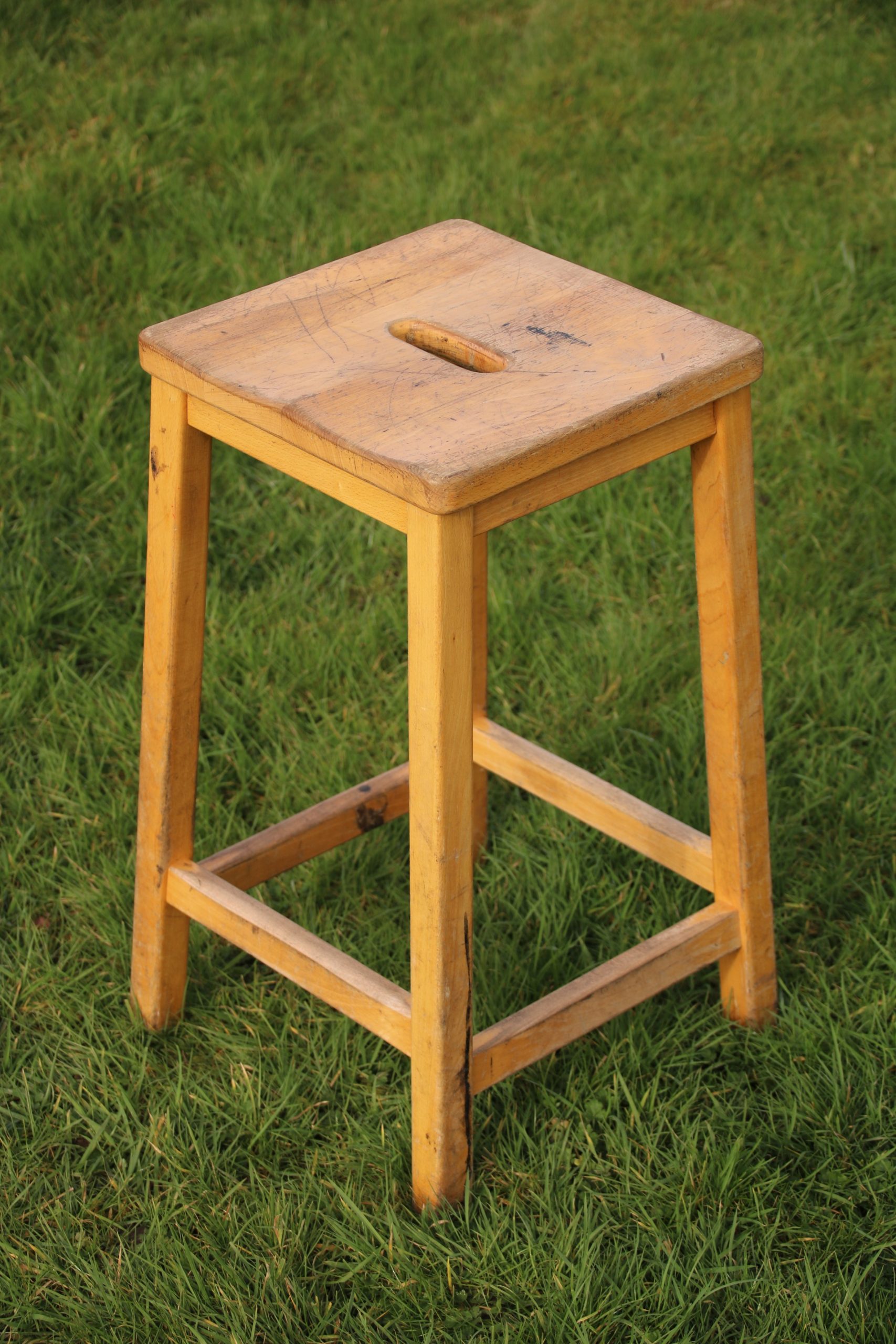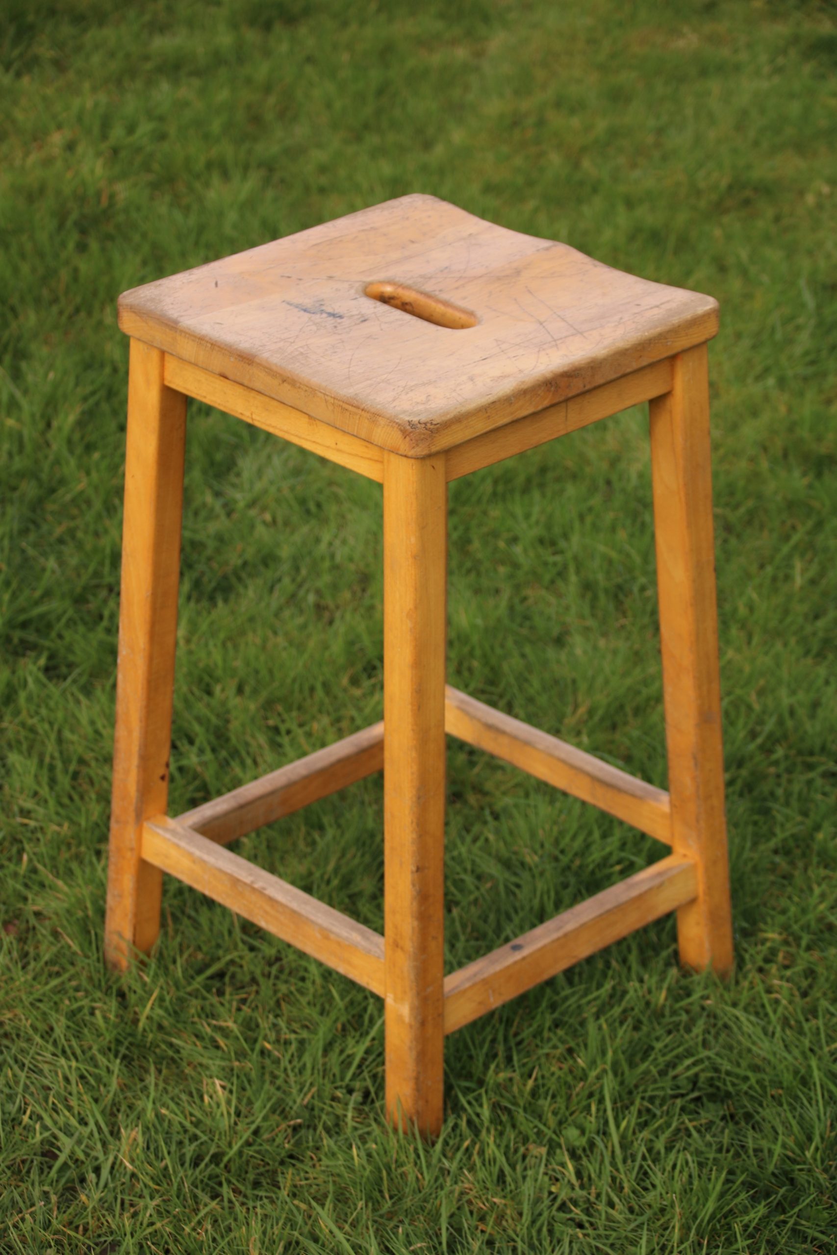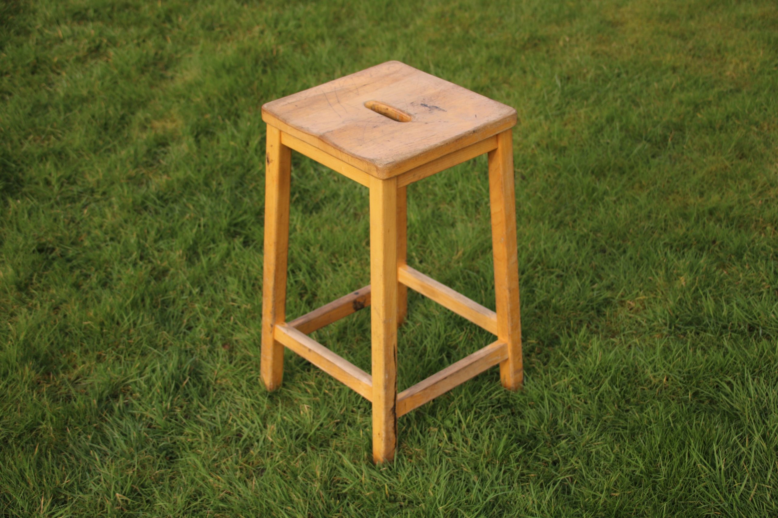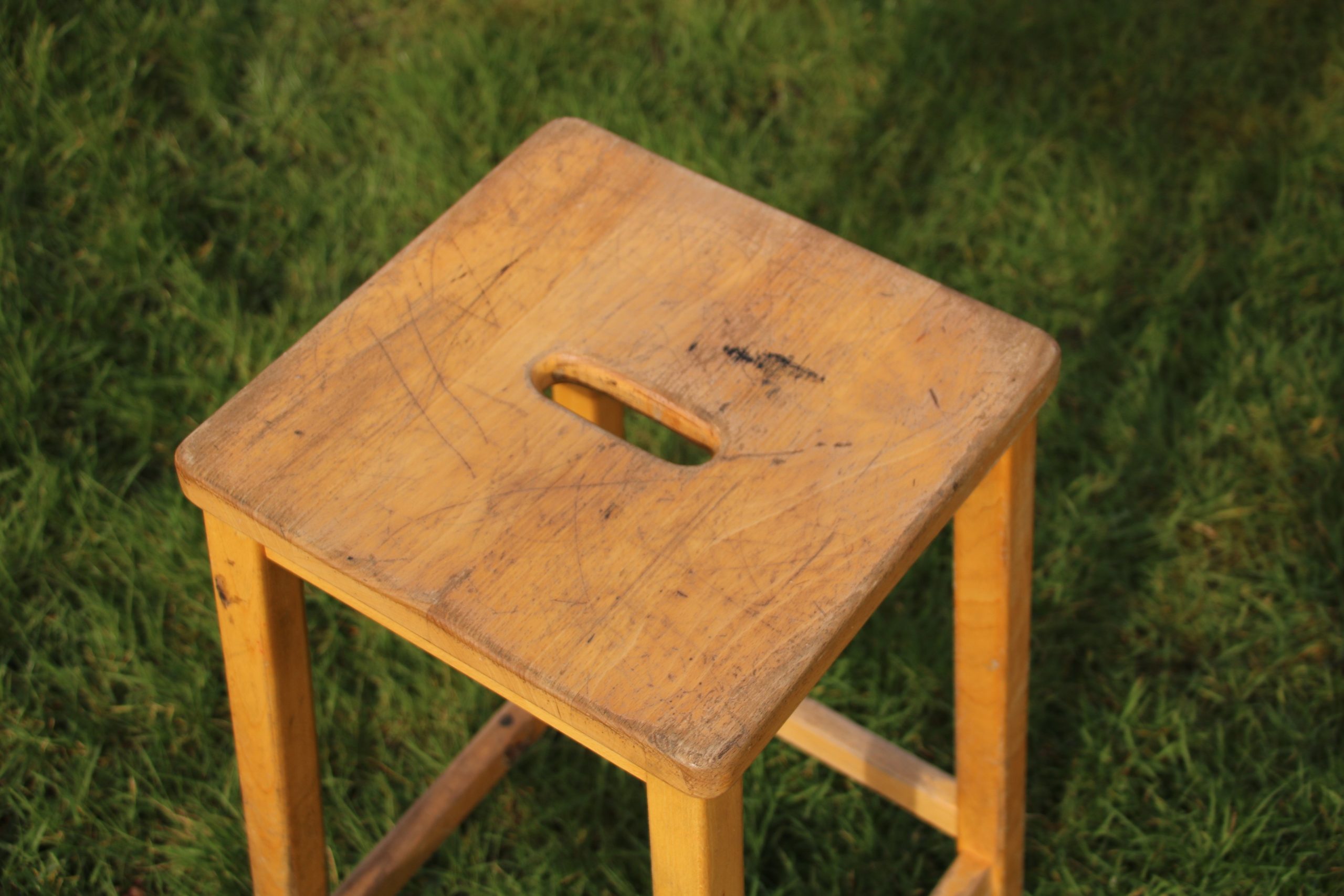 A retro school stool, originally used in a Biology classroom.