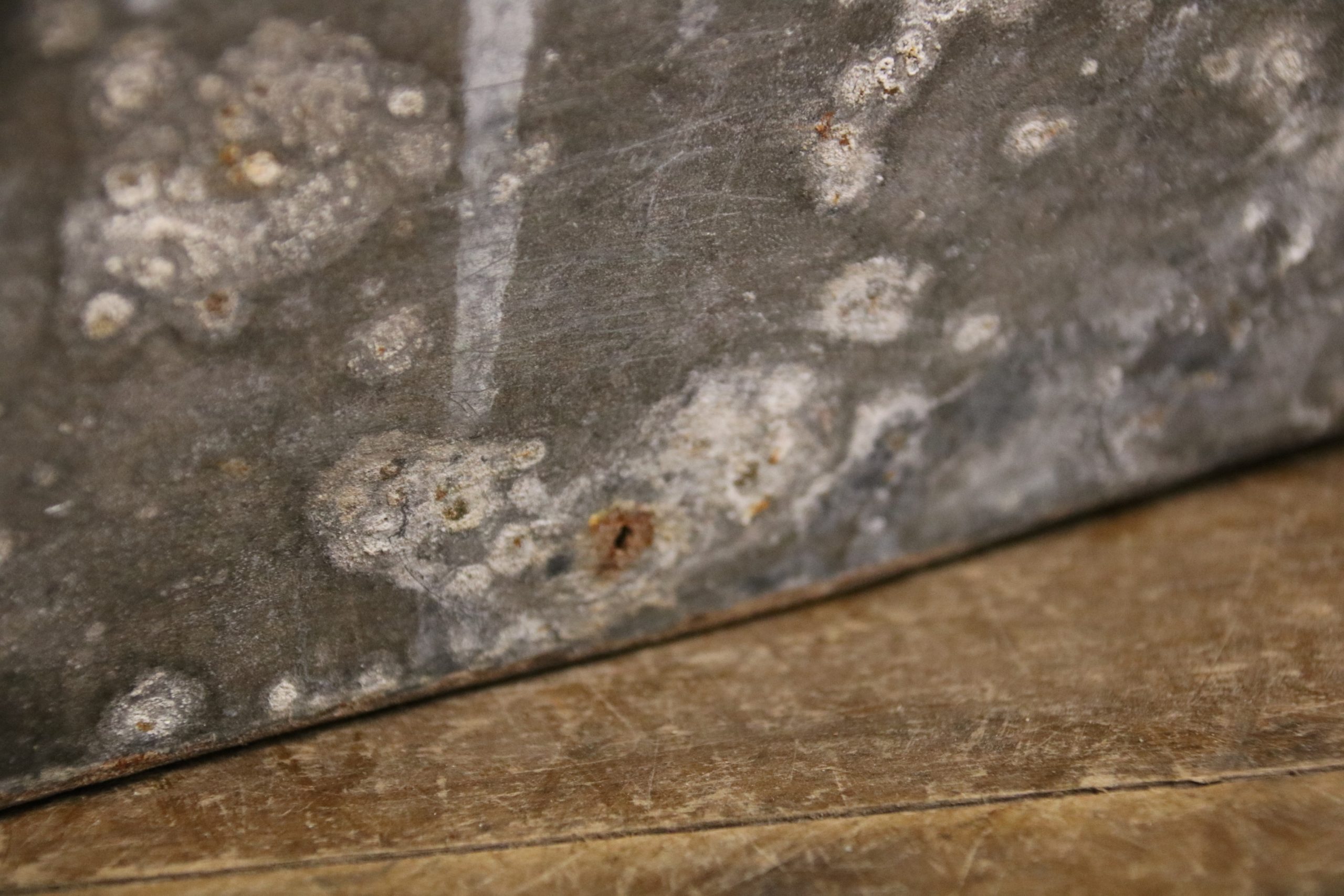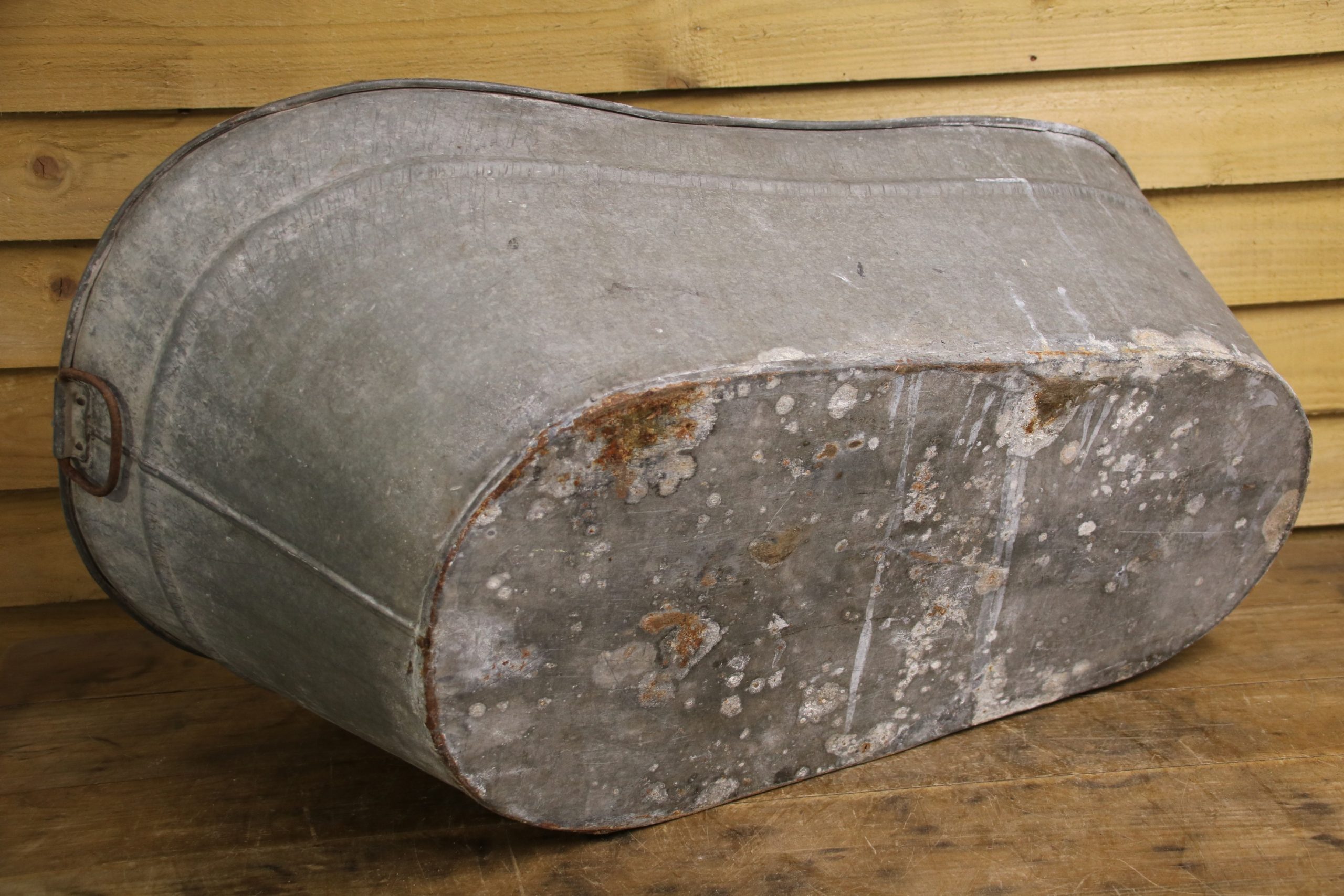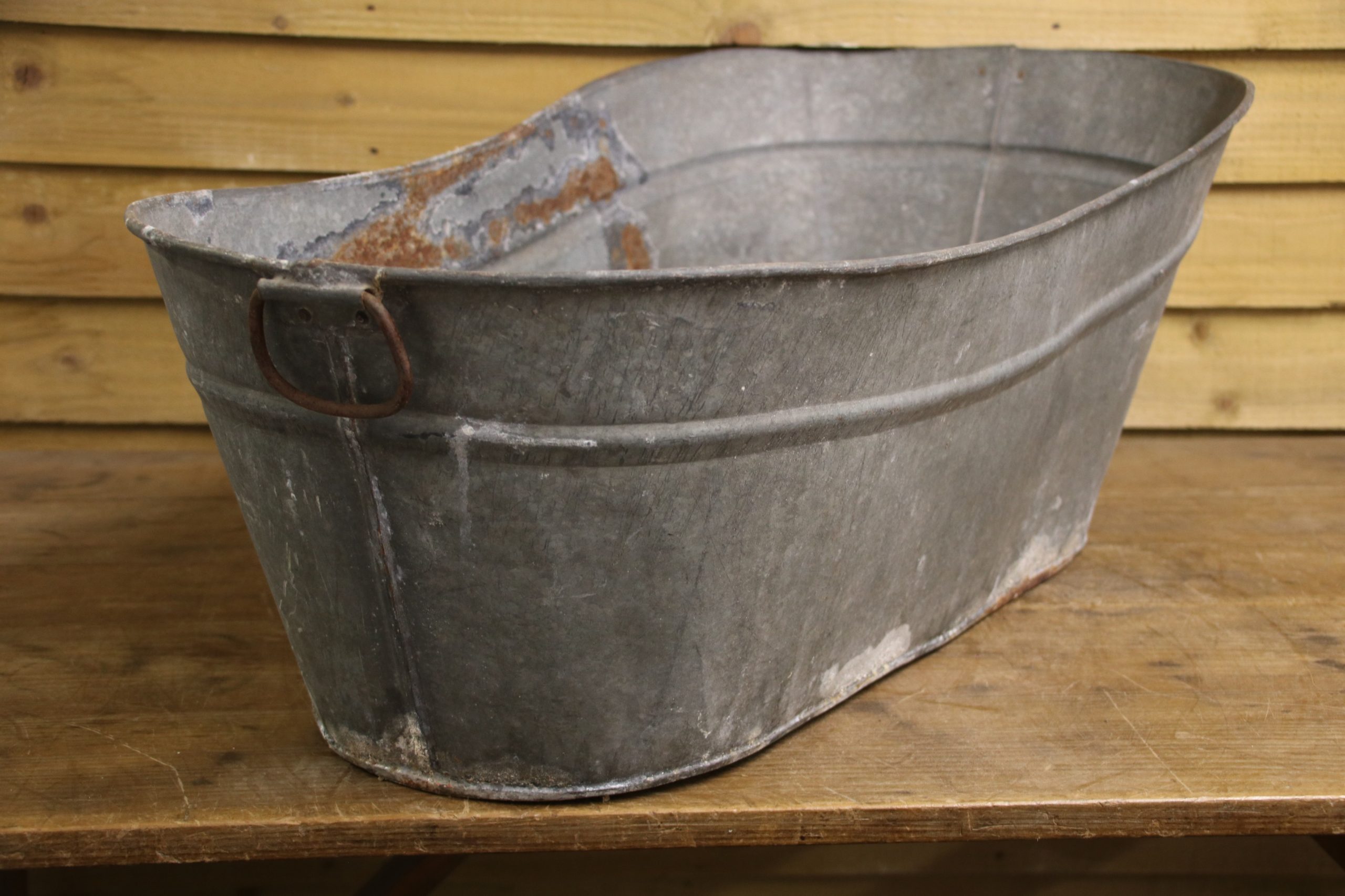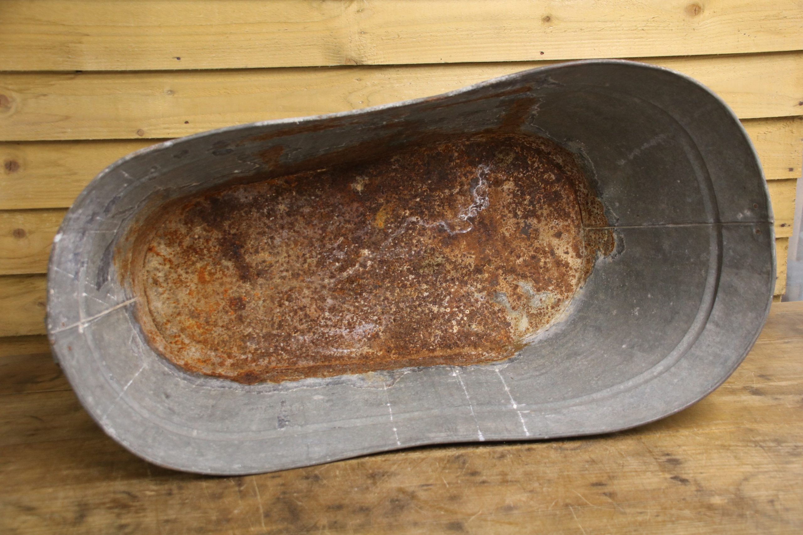 A vintage, galvanised baby bath. Perfect for planting up with flowers, herbs or even vegetables.