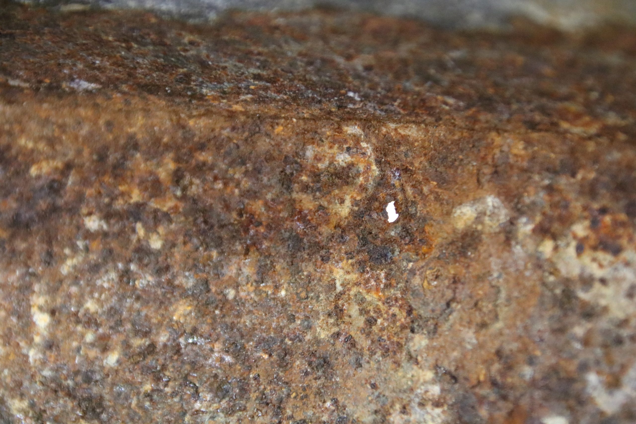 The bath is in good used condition with a few marks, stains and dents due to age. It has two handles and the inside has top rust stains. There are a few small holes in the bottom.