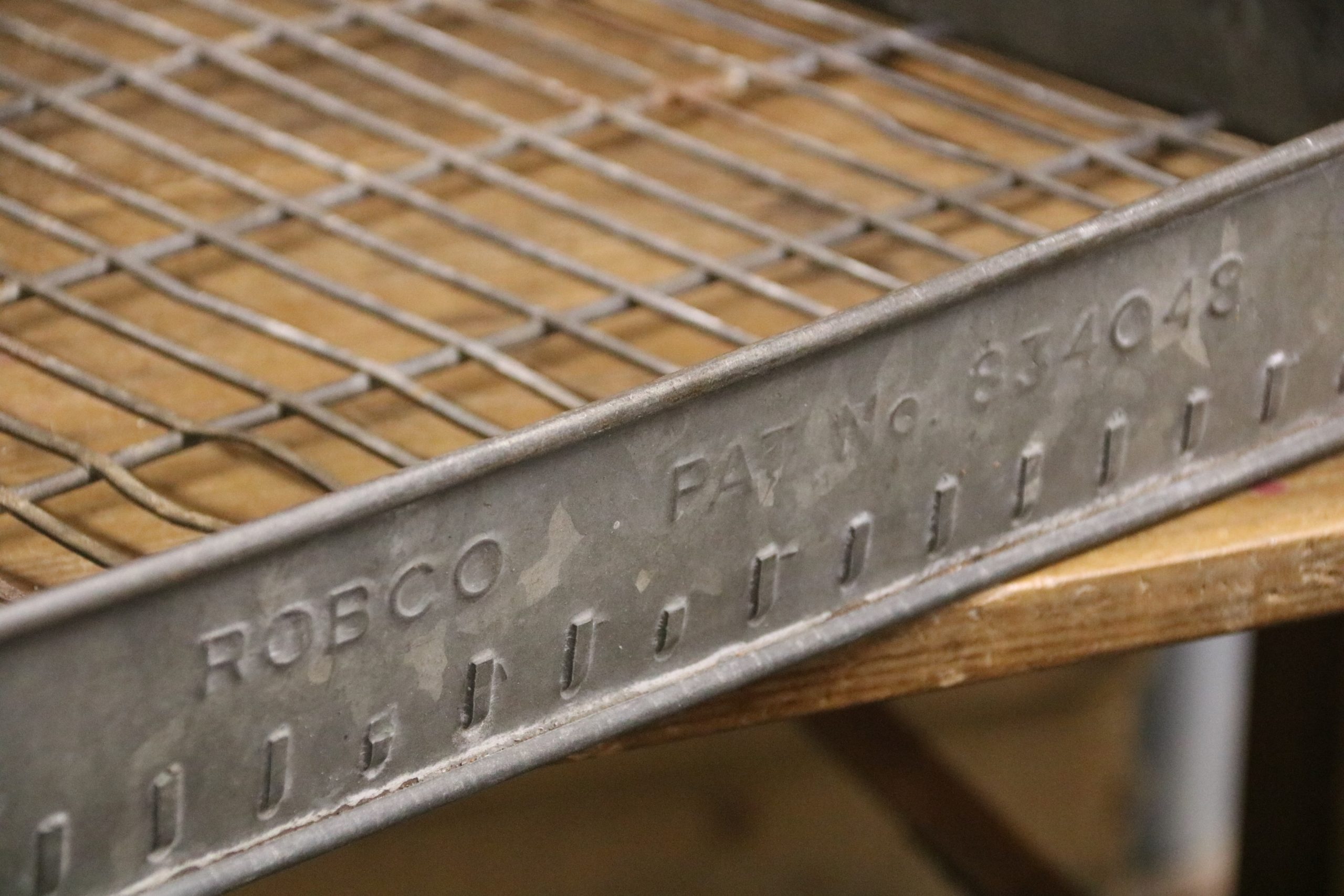 The tray is in very good condition with a few marks and stains due to age. It has a large mesh bottom and the manufacturer name ‘Frears & Blacks’ on the sides along with patent numbers.