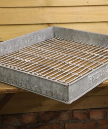 The tray is in very good condition with a few marks and stains due to age. It has a large mesh bottom and the manufacturer name ‘Frears & Blacks’ on the sides along with patent numbers.