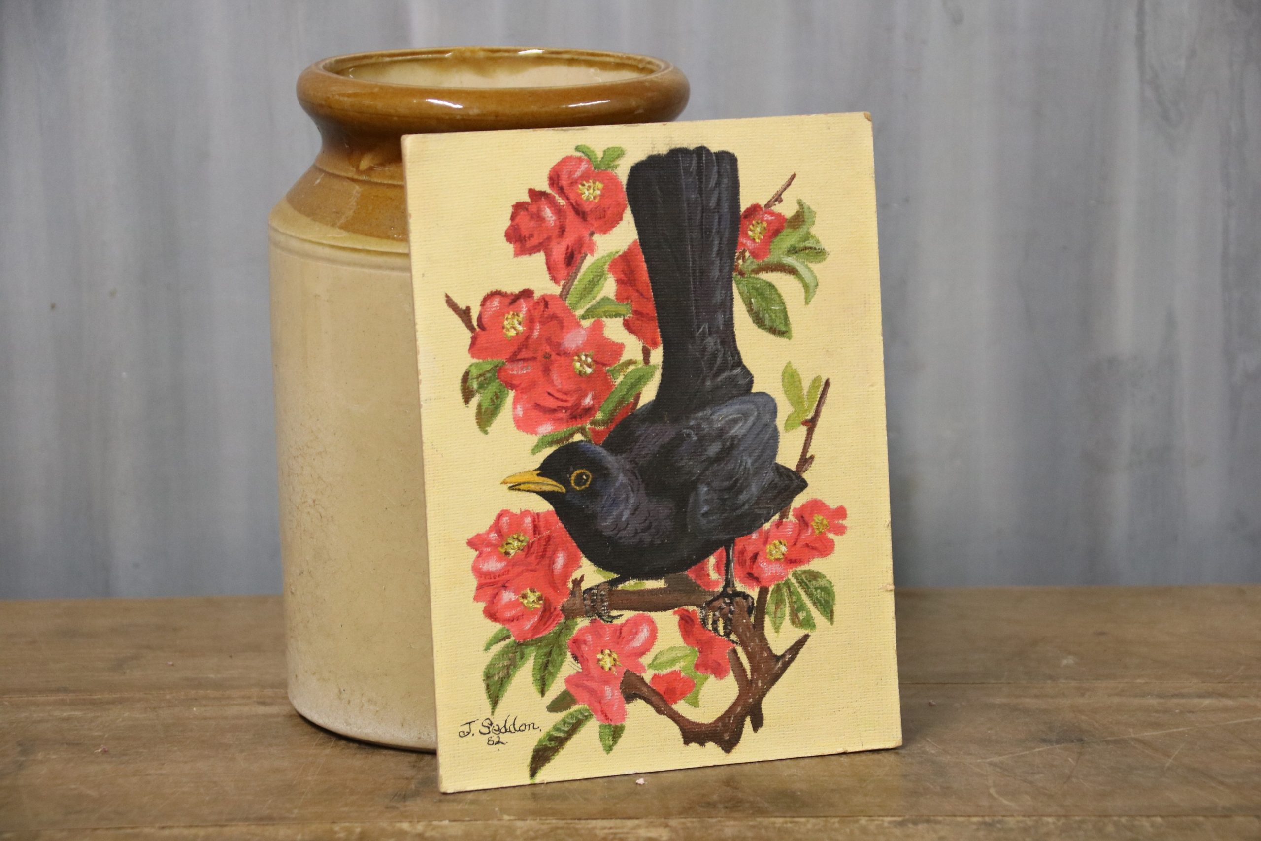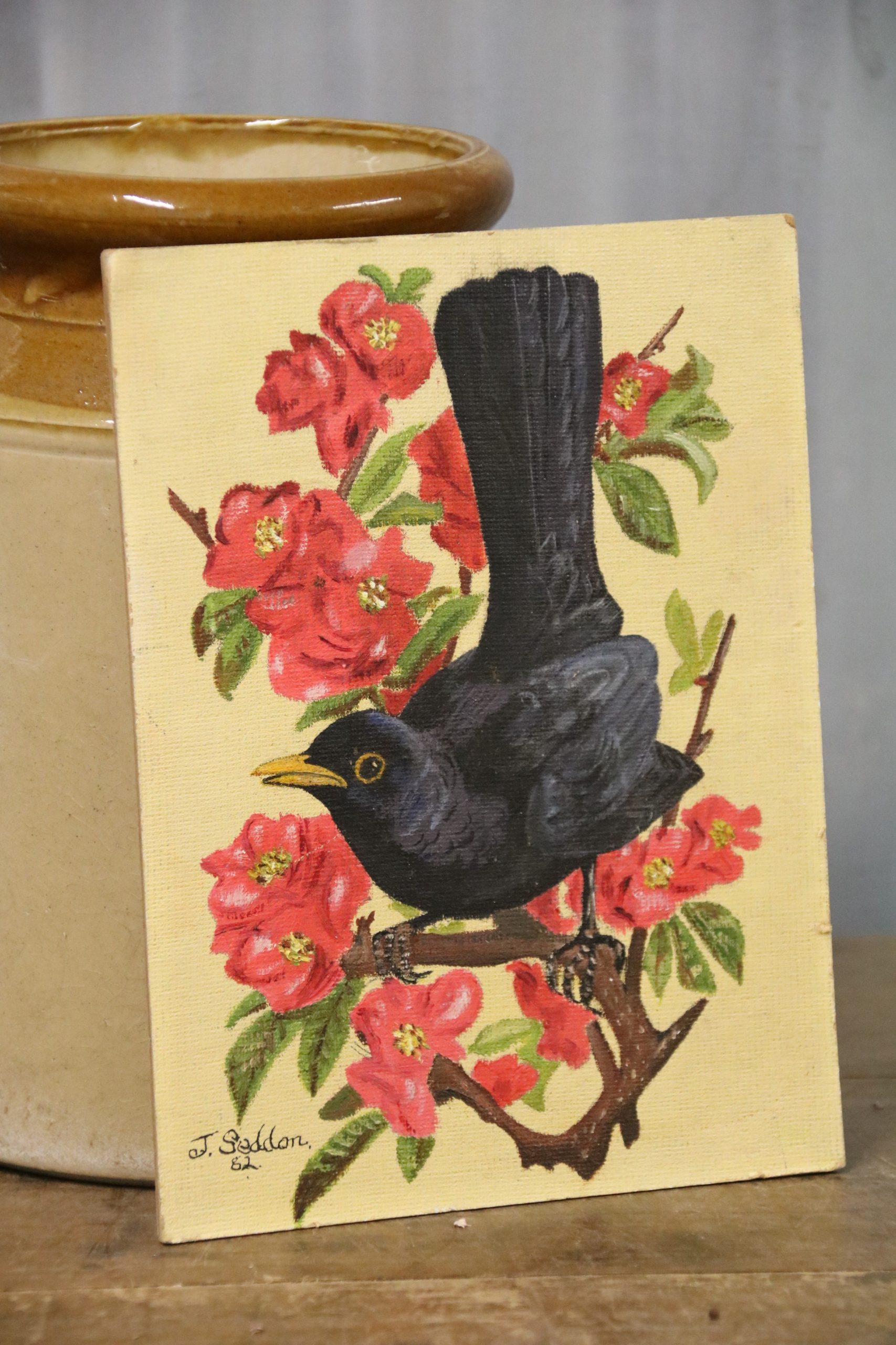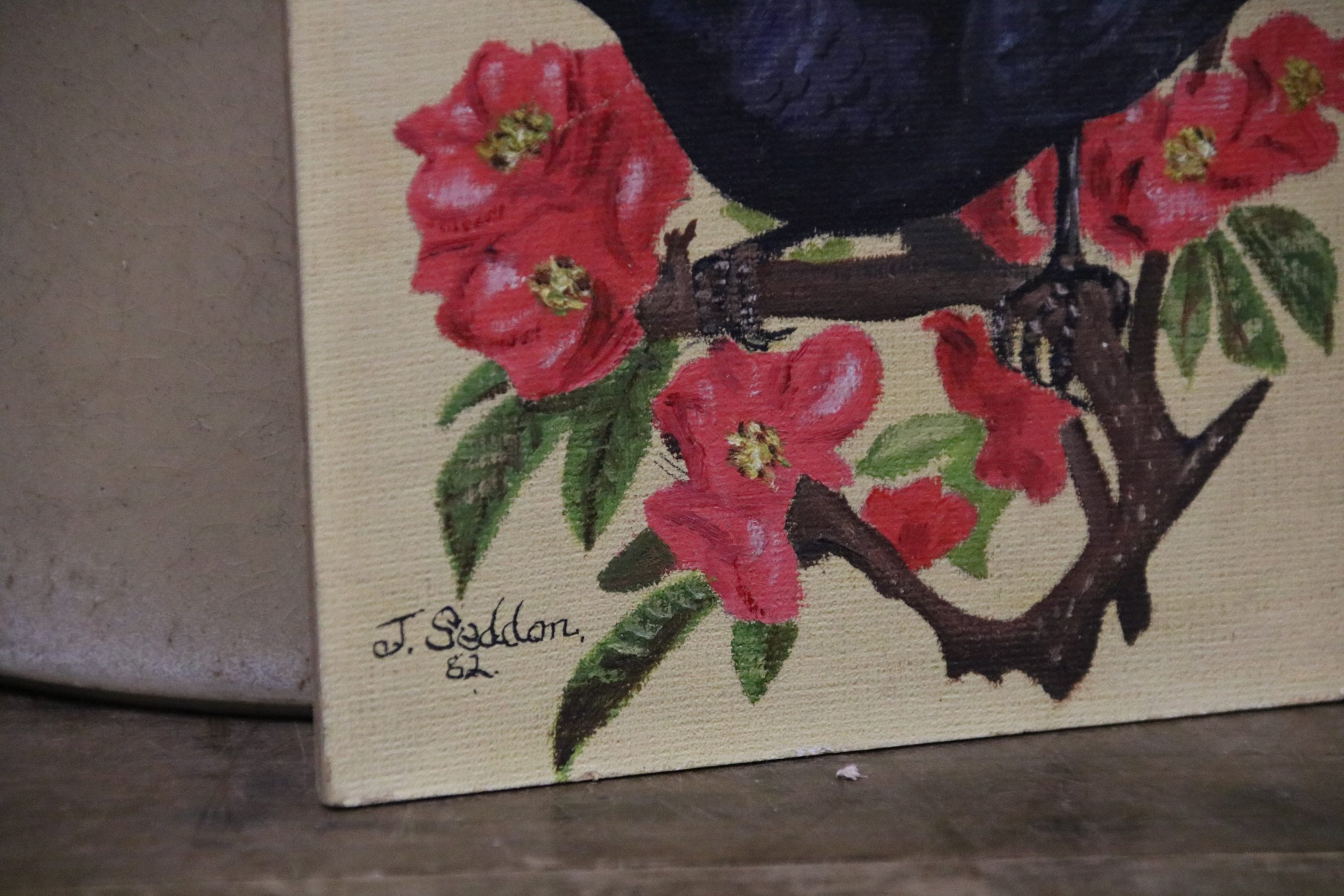 A beautiful painting of a black bird, an original on canvas board with the signature ‘J.Seddon 82.’