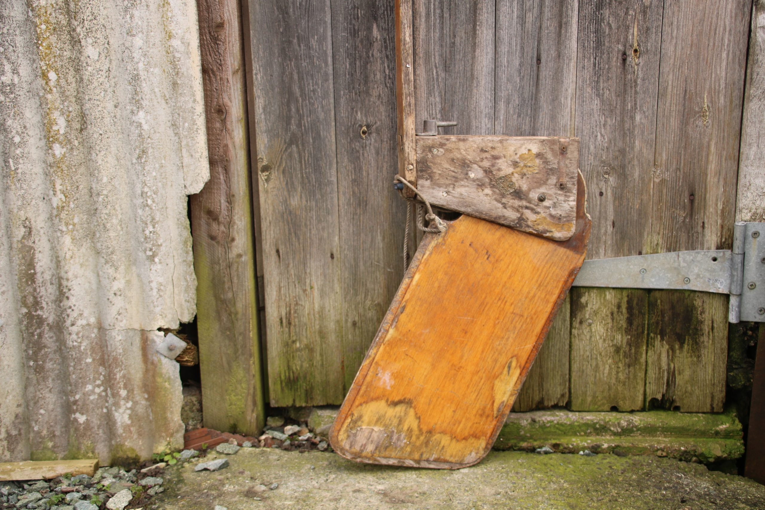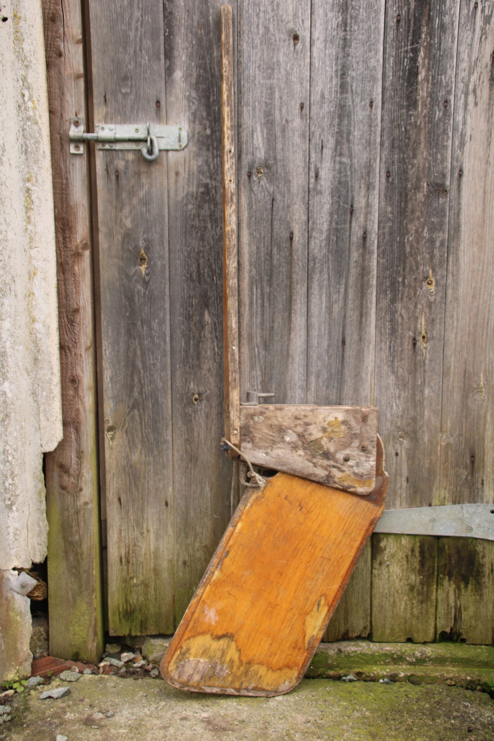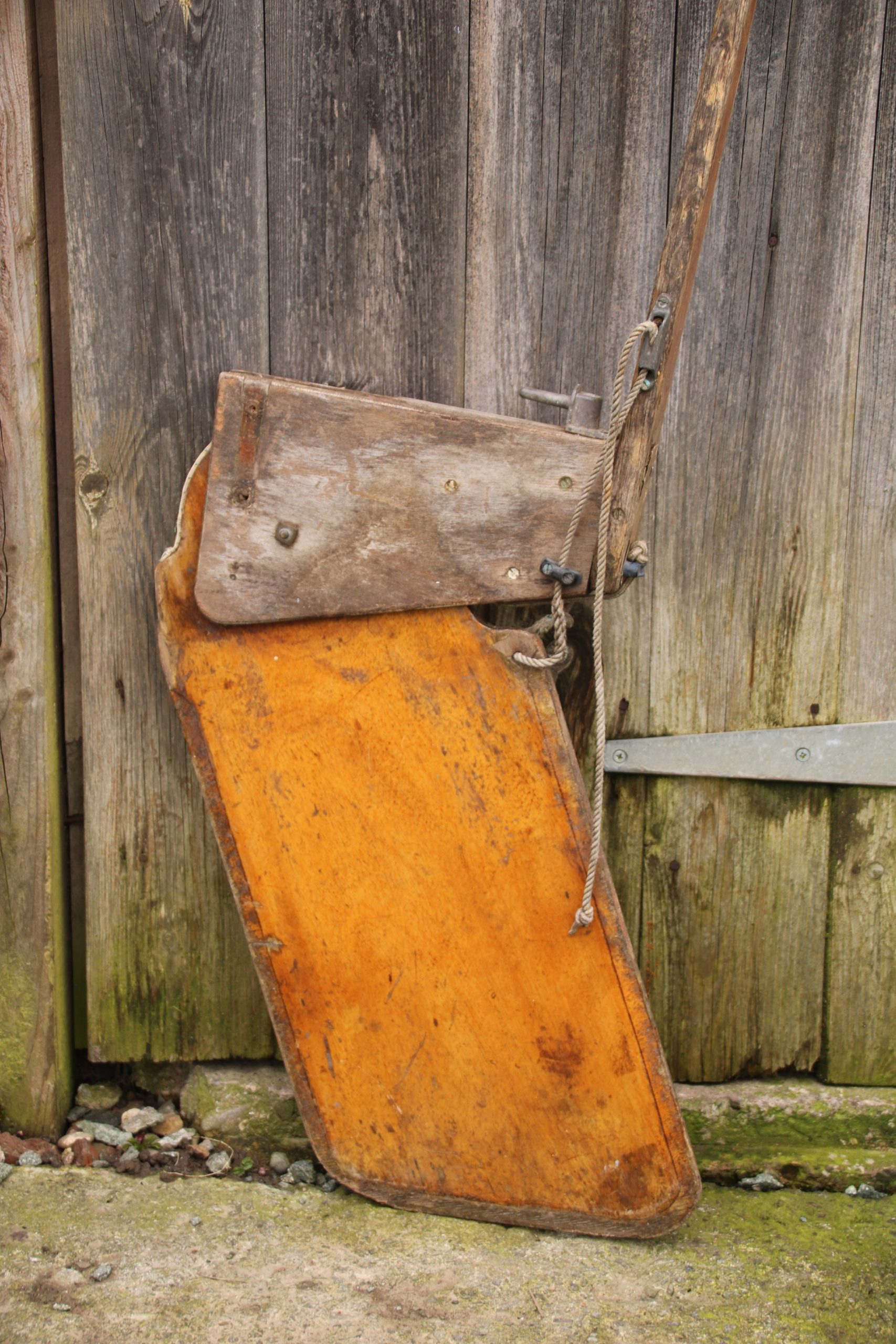 The rudder is in good, used condition with a few marks and scratches due to age. The original paint work and wood are beautifully distressed and worn. It also has a missing bracket.