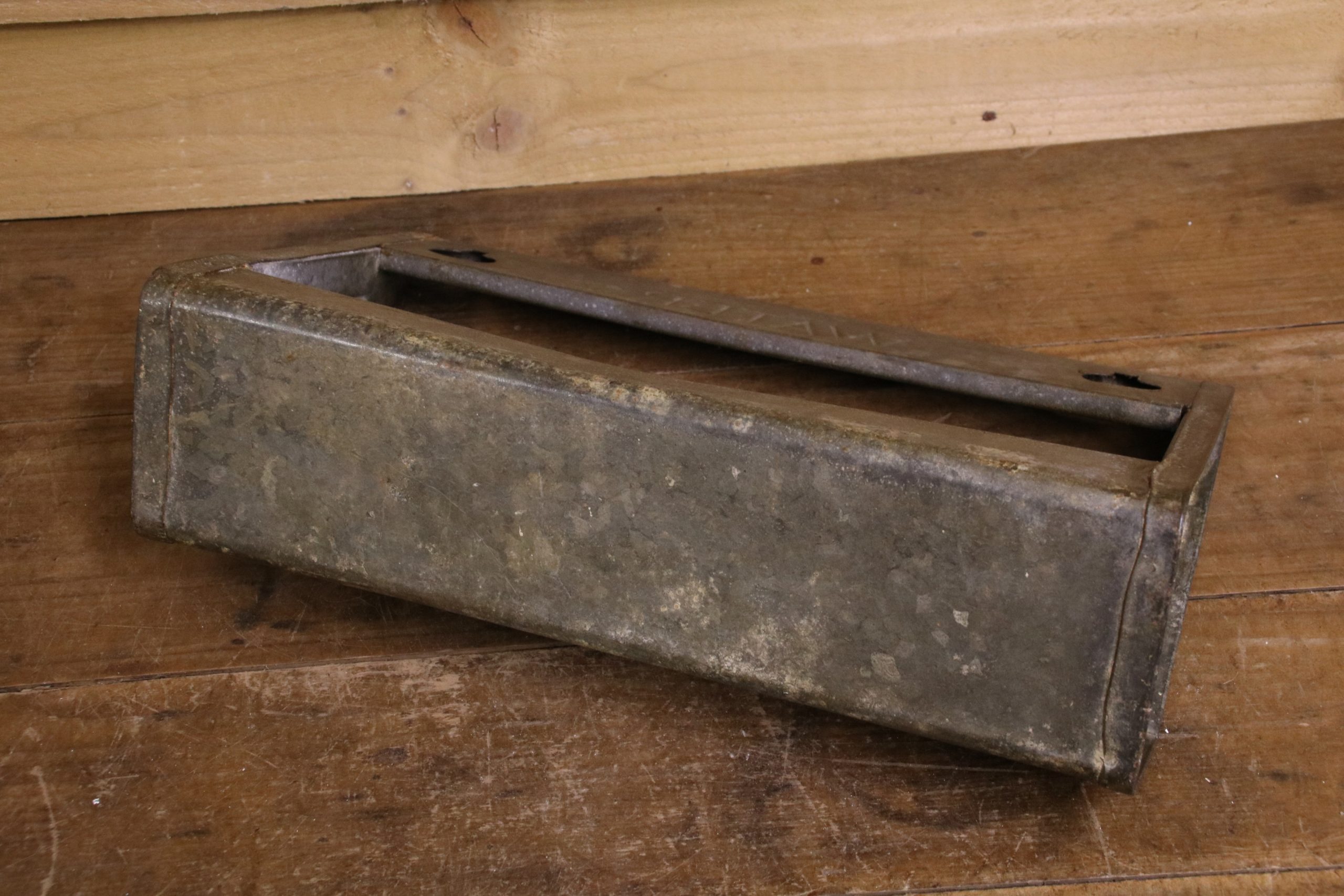 A small vintage galvanised chicken water trough, perfect for feeding your chickens or upcycling into a windowsill planter.