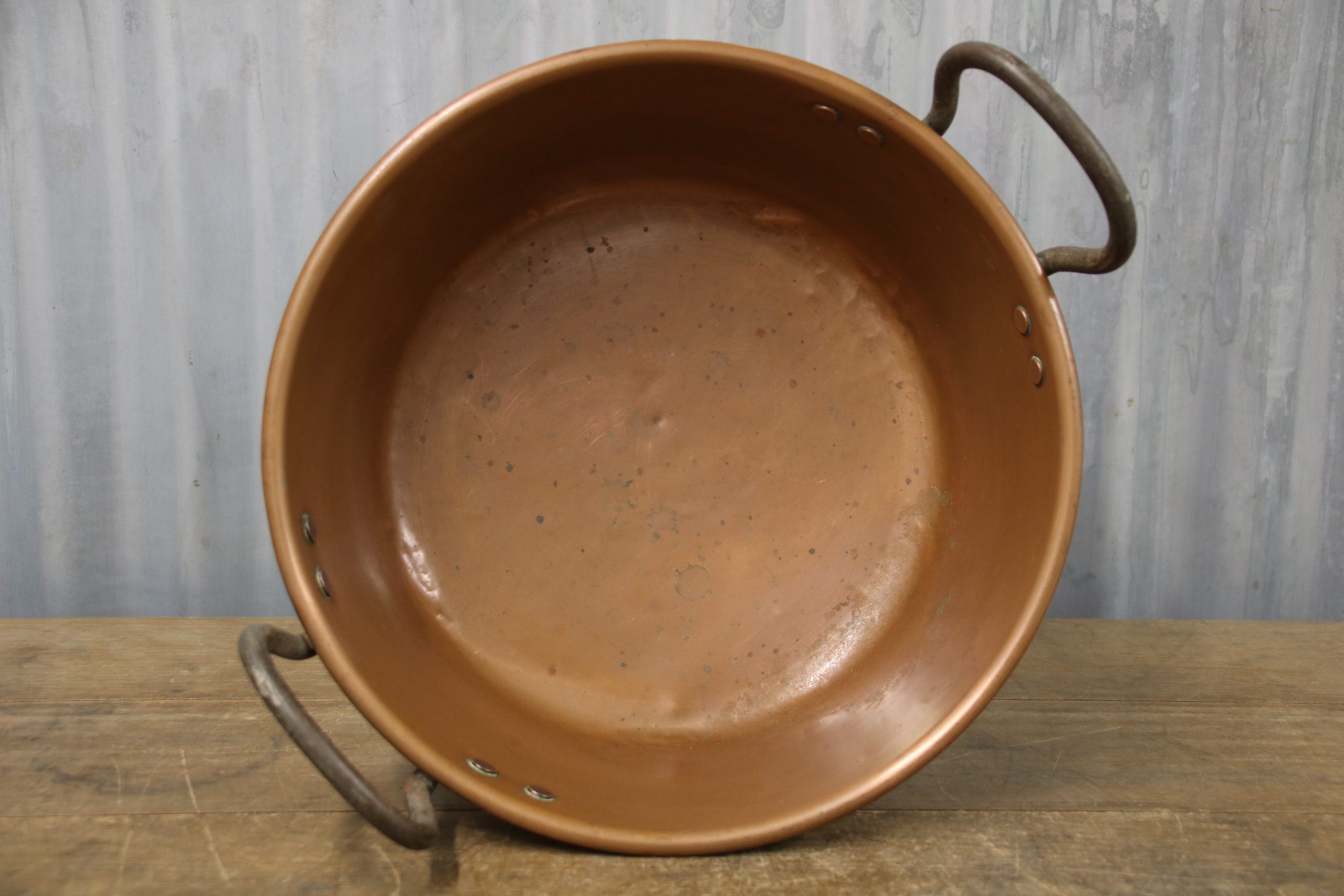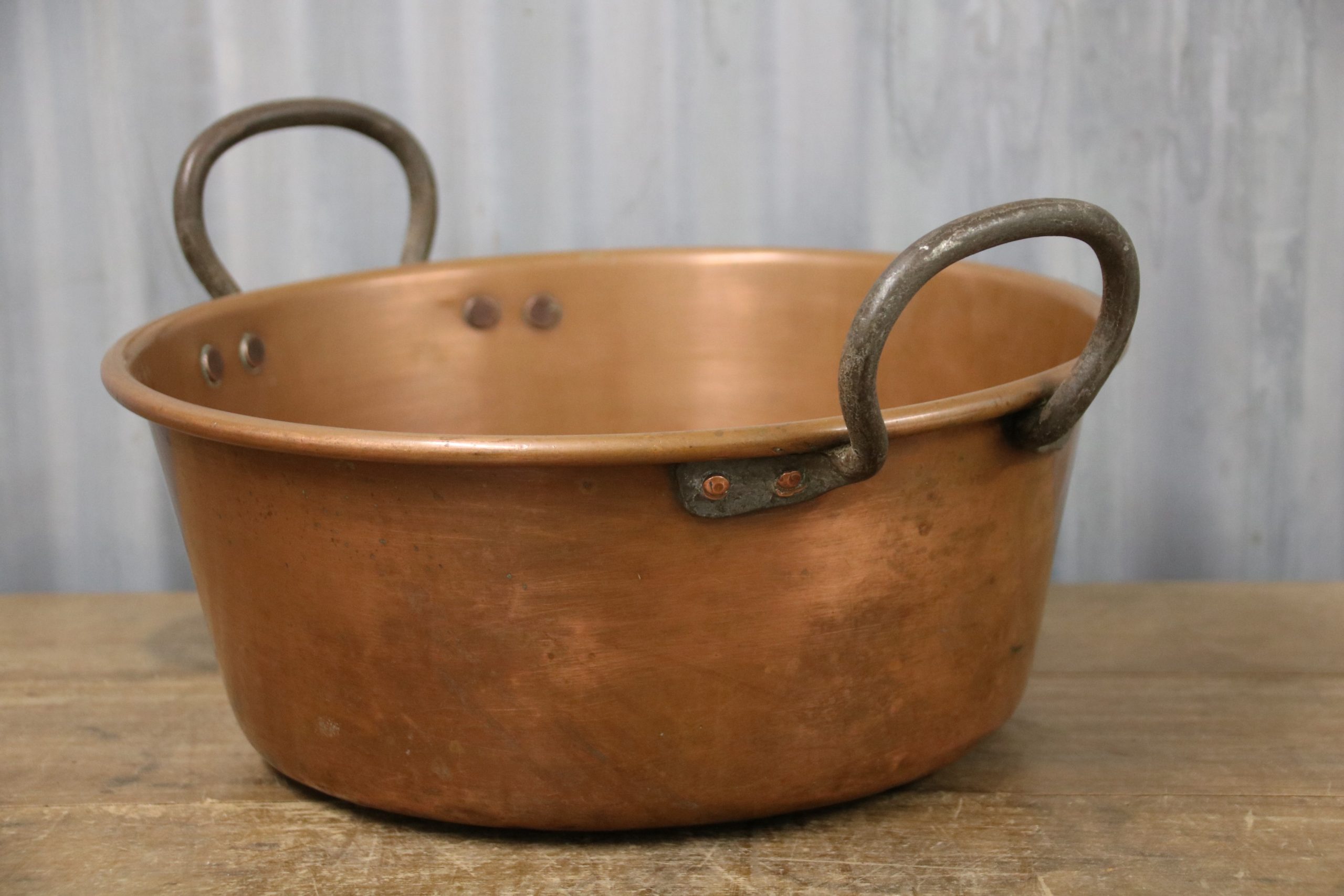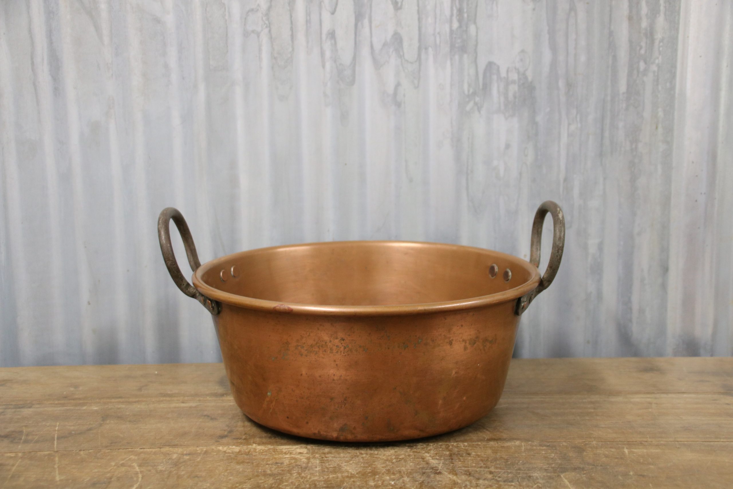 A stunning copper jam pan. Originally used to make jam in but would look beautiful displayed in the kitchen, used as a planter or even upcycled into a bathroom sink.