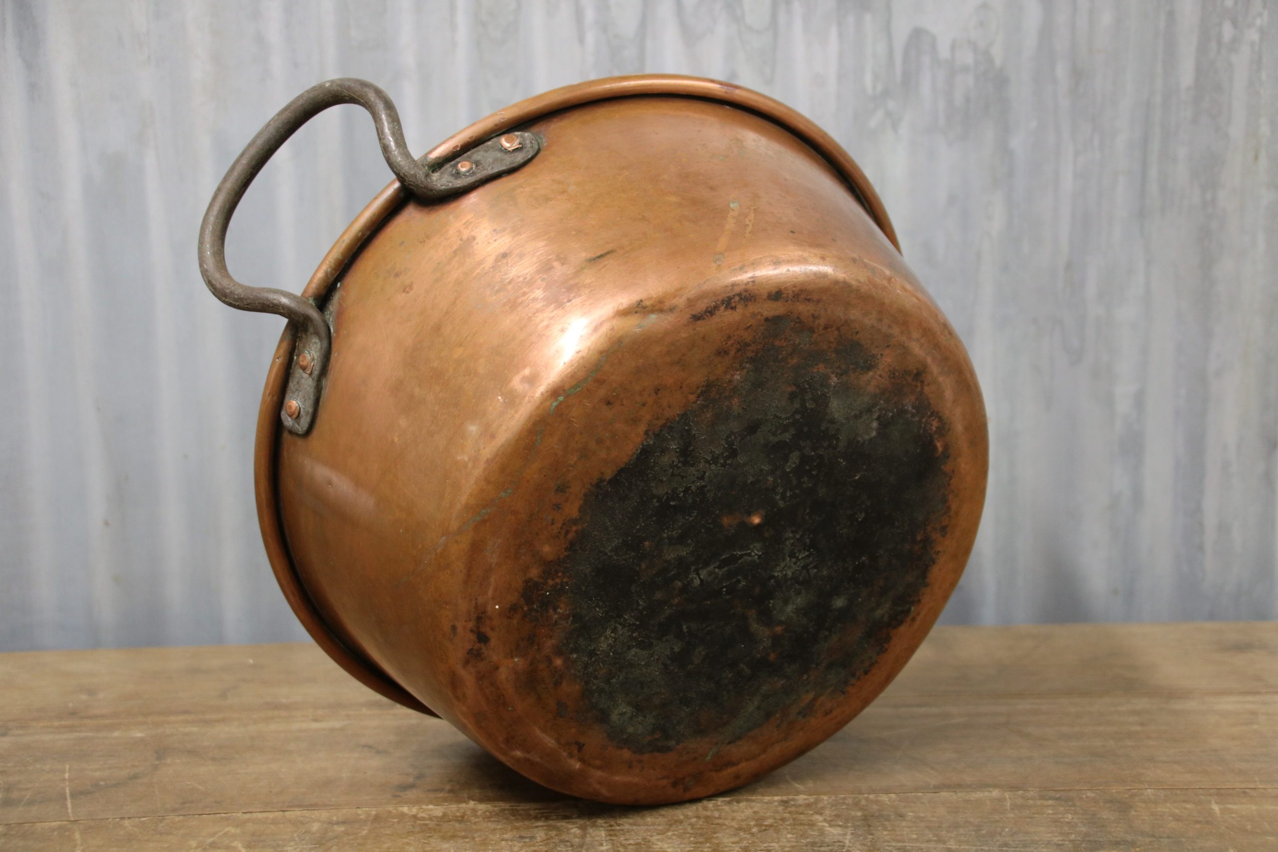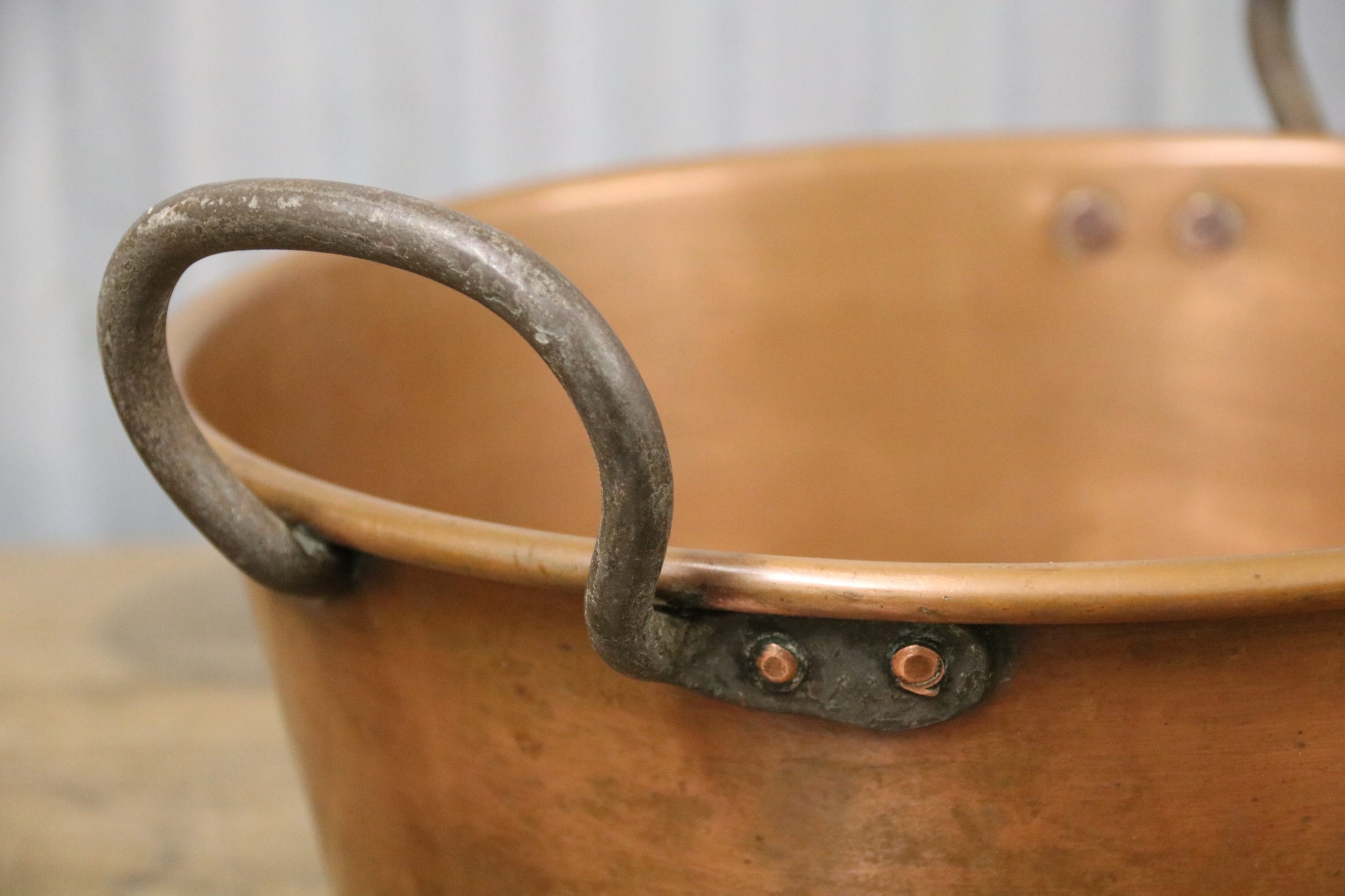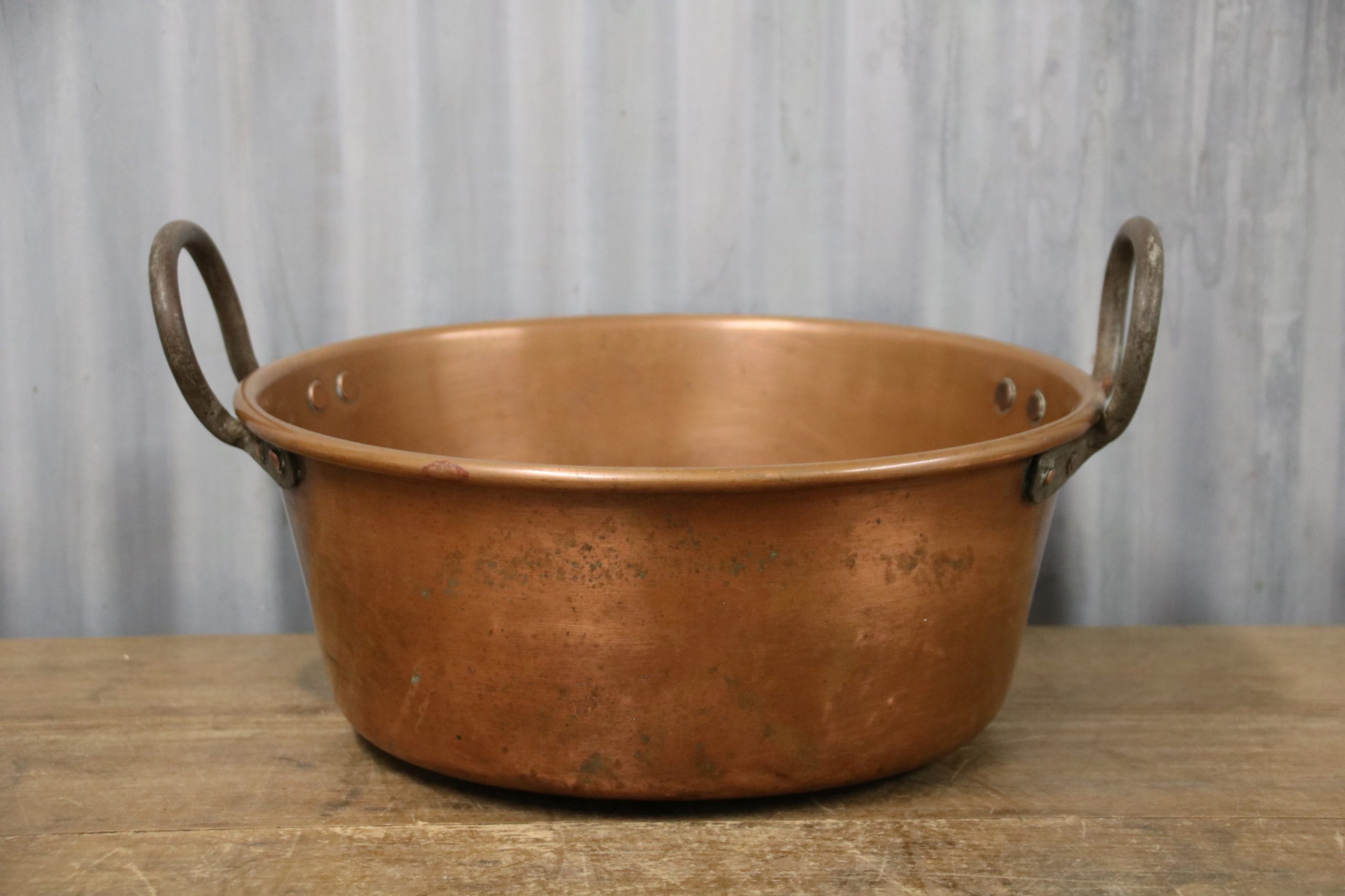 A stunning copper jam pan. Originally used to make jam in but would look beautiful displayed in the kitchen, used as a planter or even upcycled into a bathroom sink.