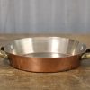 The saucer is in very good, used condition with a few marks and stains due to age. It has 2 handles and is tin lined.