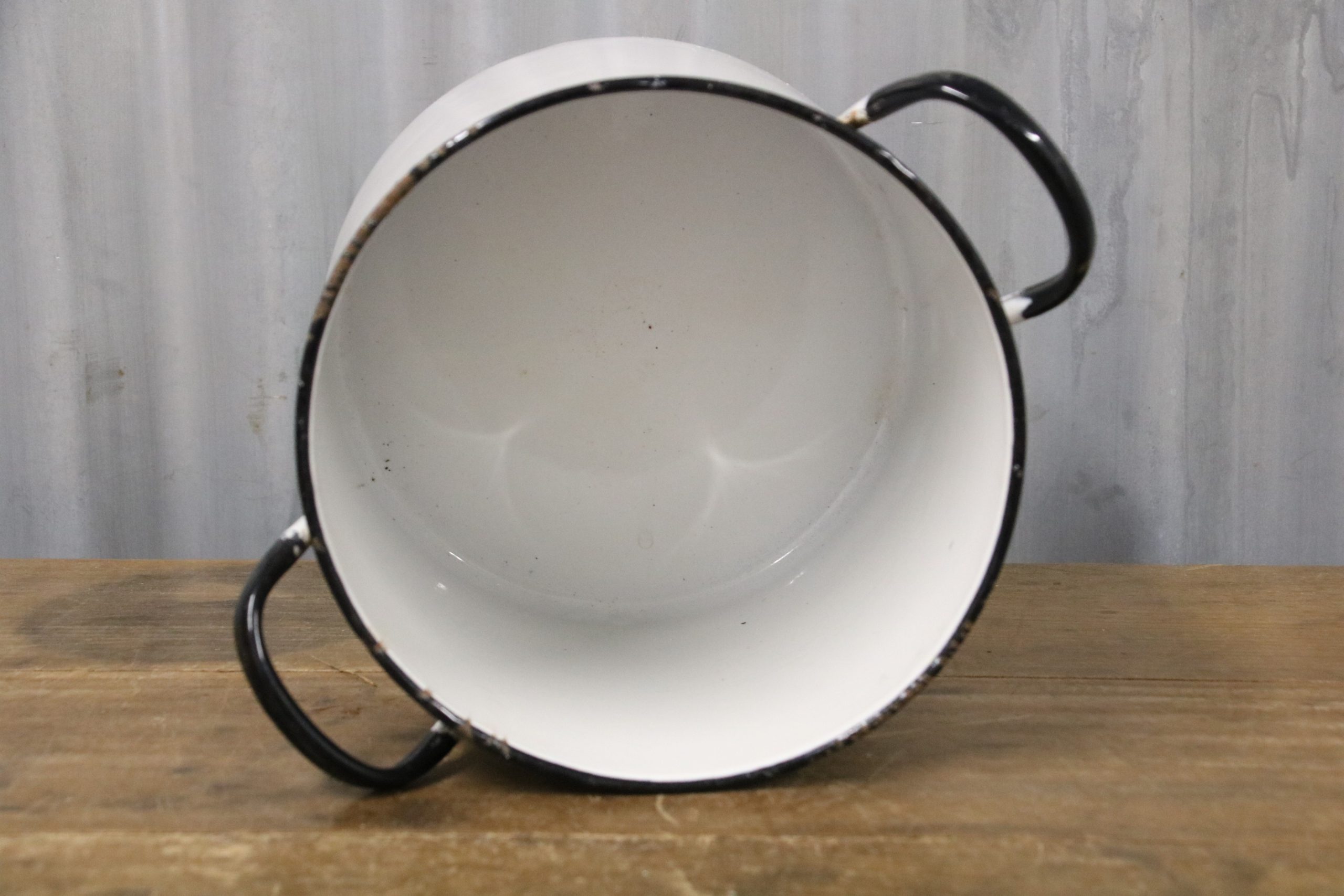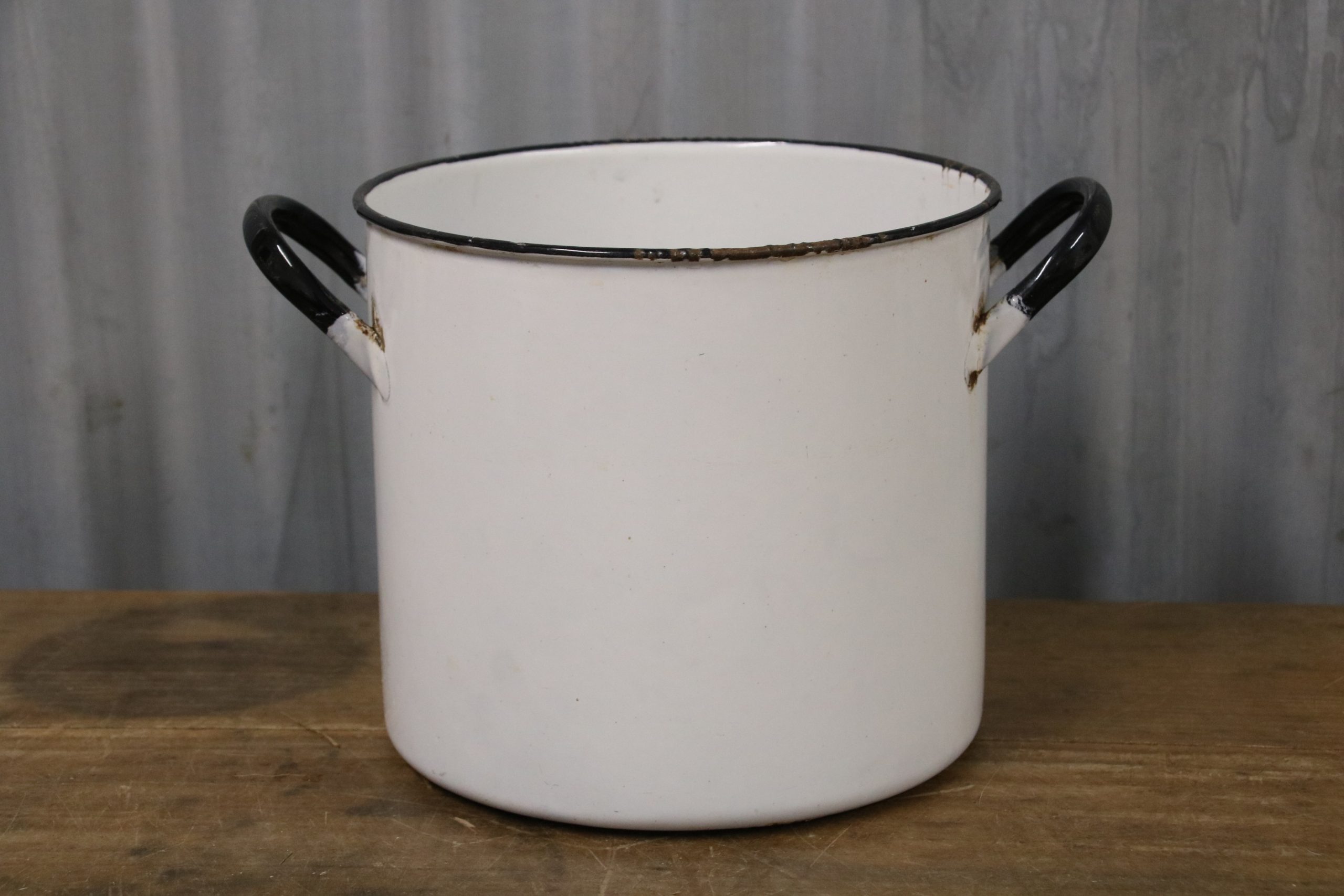 A quirky vintage enamel ‘Flour’ pot. It doesn’t come complete with a lid but would be perfect for using as storage in the potting shed, as a utensil pot in the kitchen or why not make it into a planter!