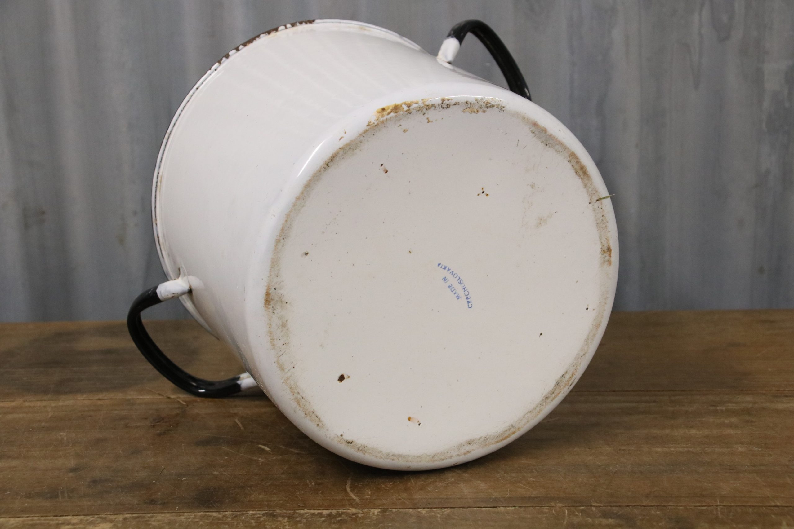 The pot is in very good condition with a few chip and small marks due to age. It has two handles and has ‘Made in Czechoslovakia’ on the bottom.