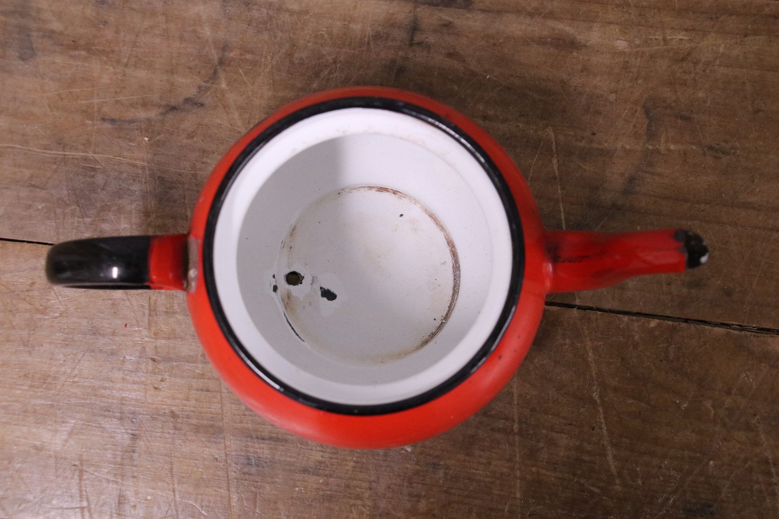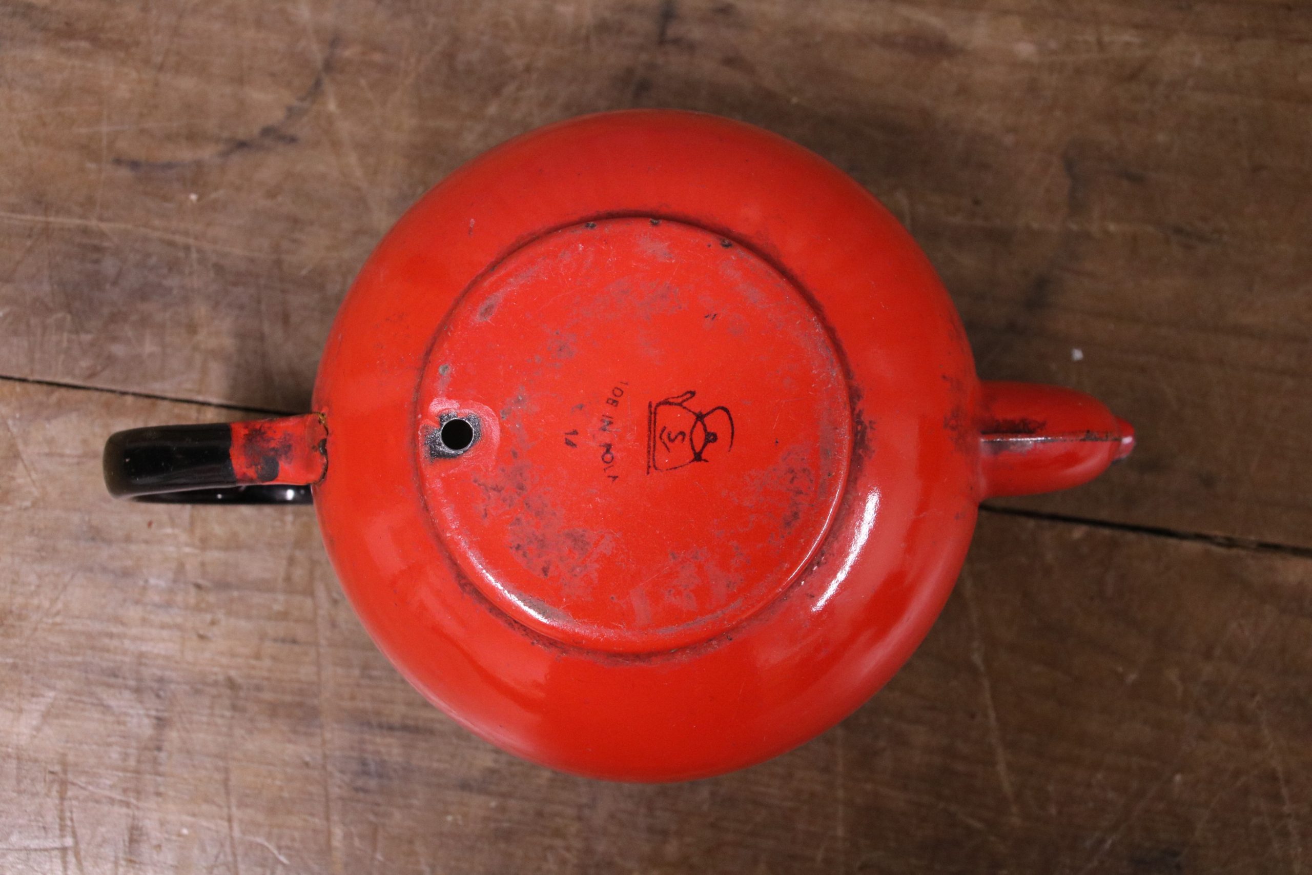The teapot is in very good, used condition with a few marks, stains and some chips on the enamel inside and out. It has a hole drilled into the back so it can be hung onto the wall, shed or tree. Made in Poland.