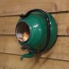 A vintage green enamel teapot which has been upcycled into a bird nest. Could also be used as a garden planter too!