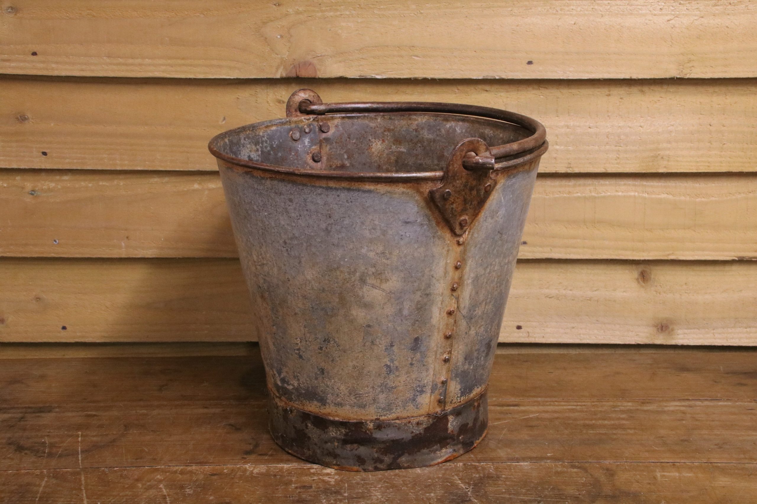 A reclaimed galvanised bucket with beautiful patina. Perfect for planting up with herbs in the garden, using to collect homegrown cut flowers or to store kindling by the fire.