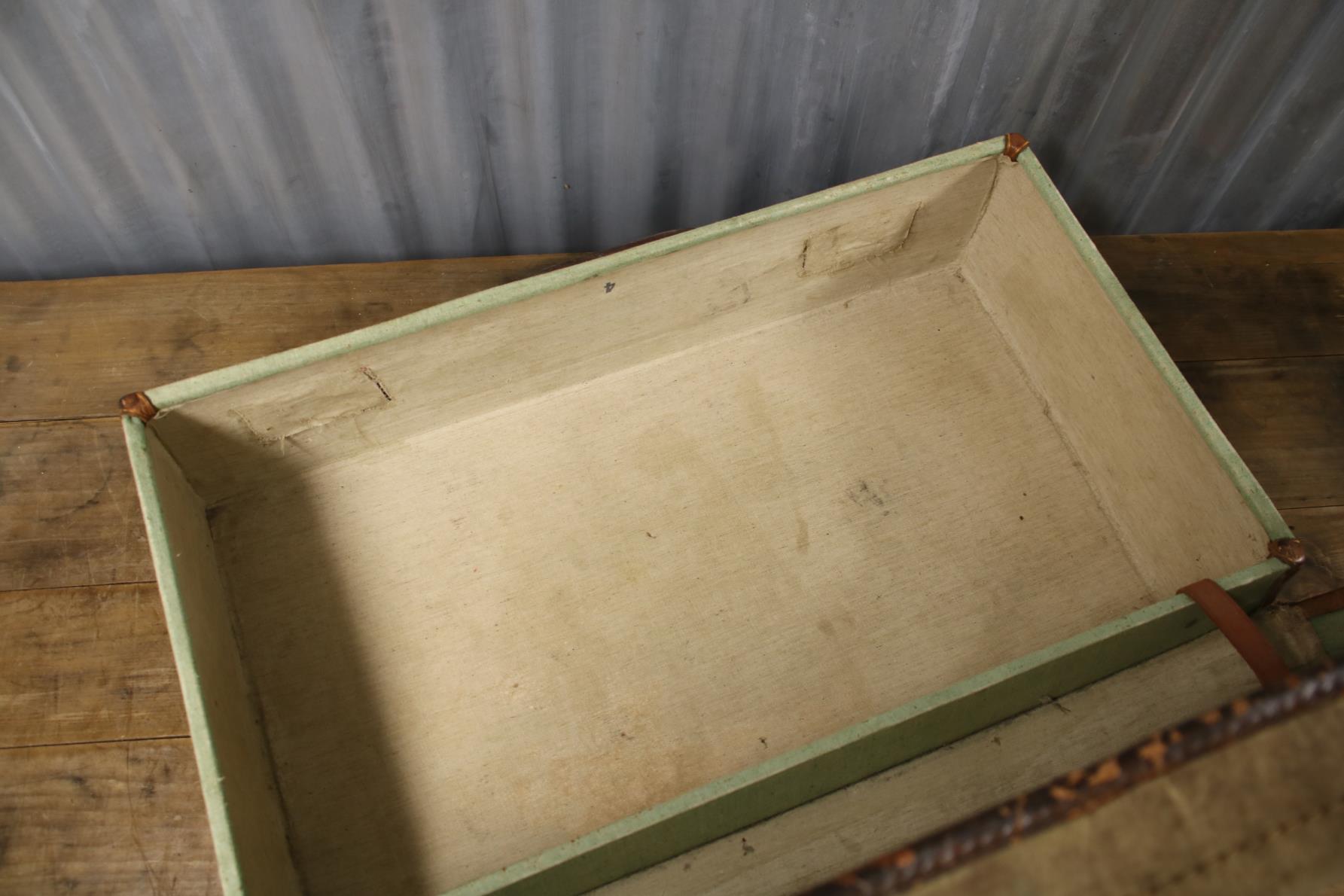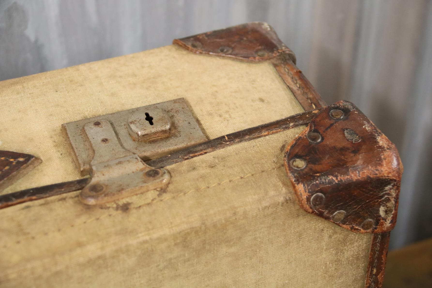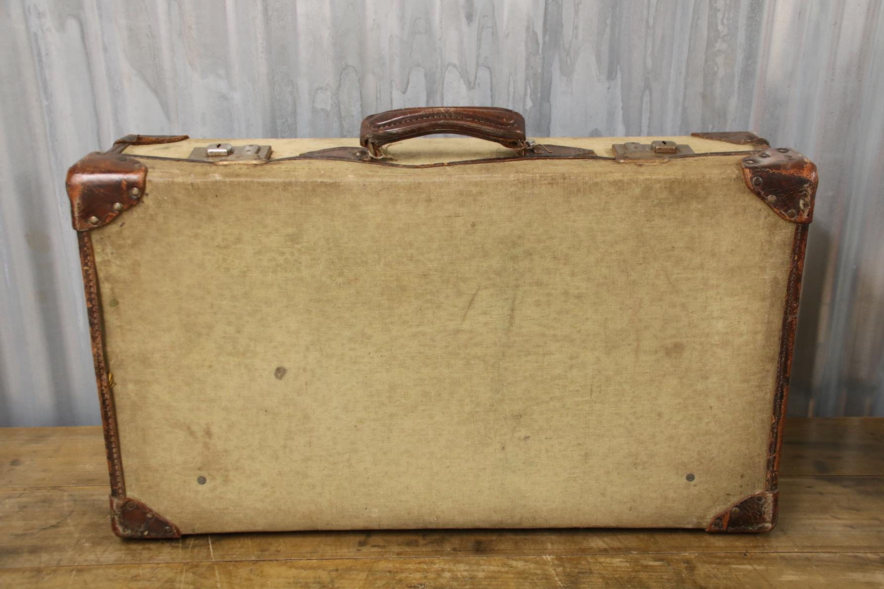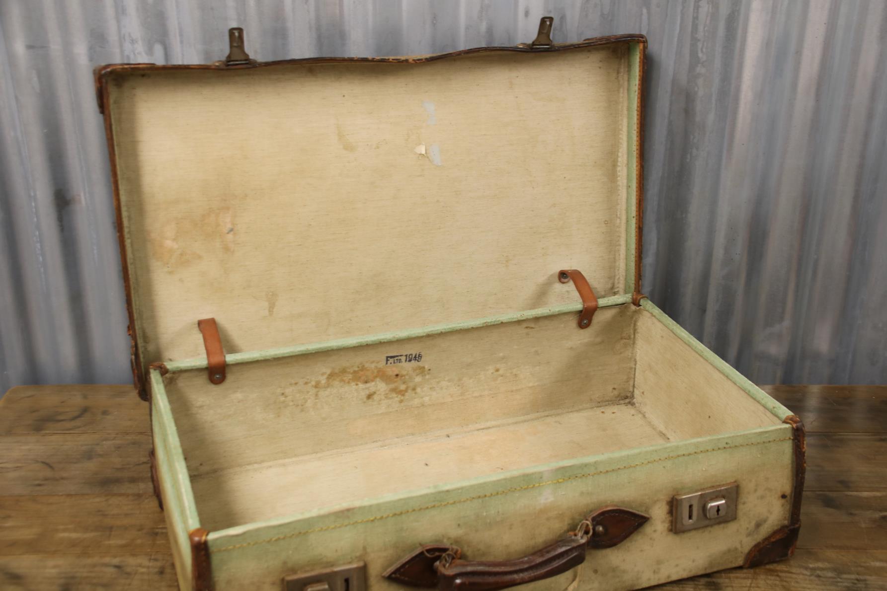 The suitcase is in good, used condition with a few marks, dents and stains due to age. It has leather corner protectors, one leather handle and 2 locks. 2 working keys are included so it can be locked. The case is a litle tatty and showing lots of character, some of the stitching is coming around on the leather edge protectors.