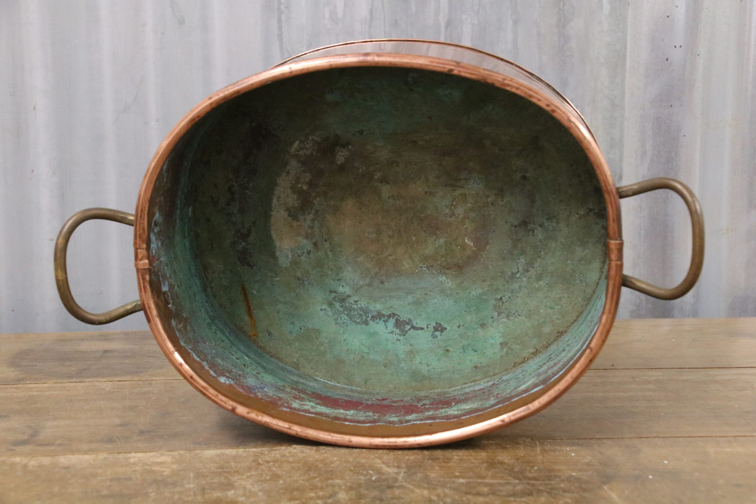 A beautiful oval copper container. Perfect for planting up with flowers or succulents inside the house.