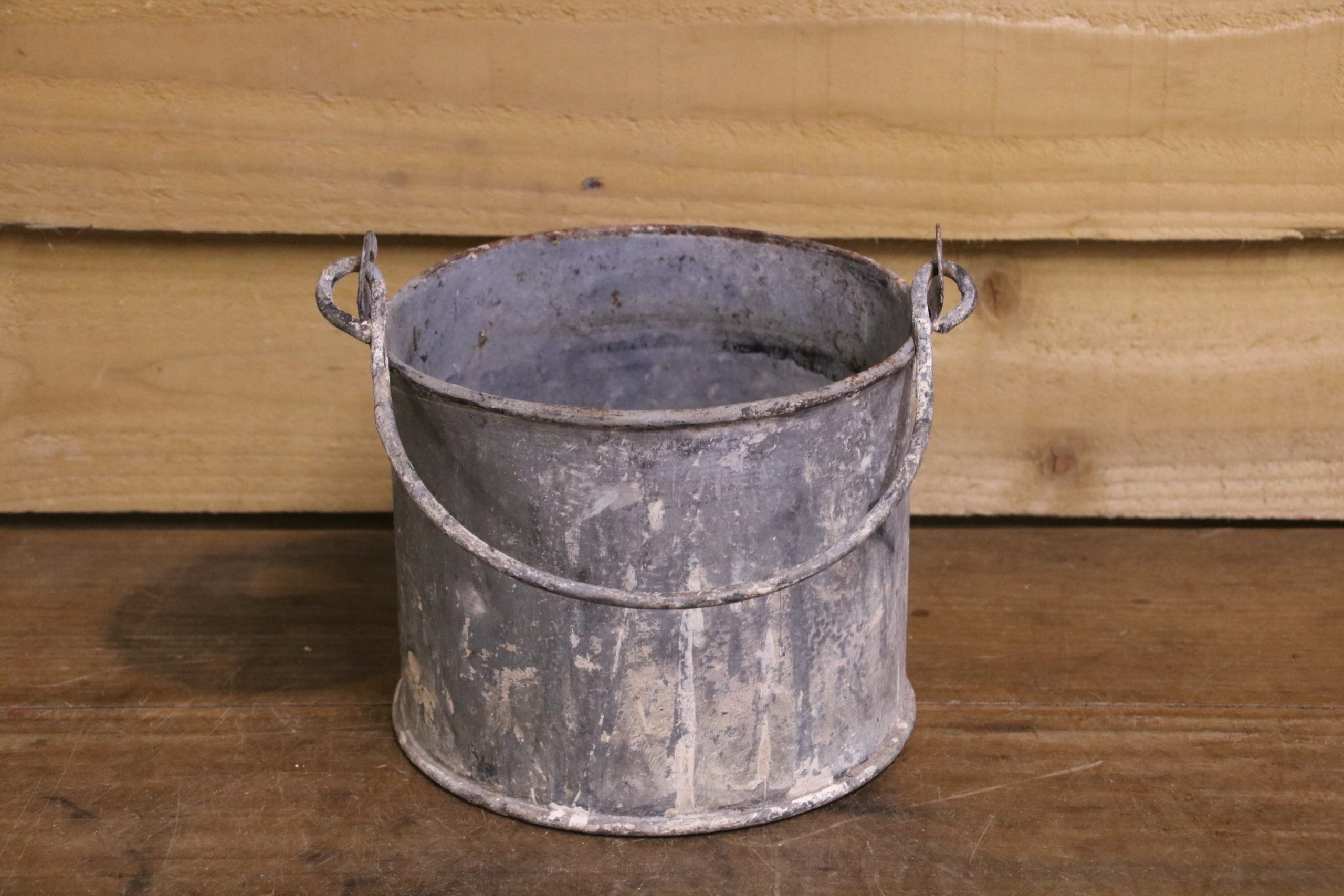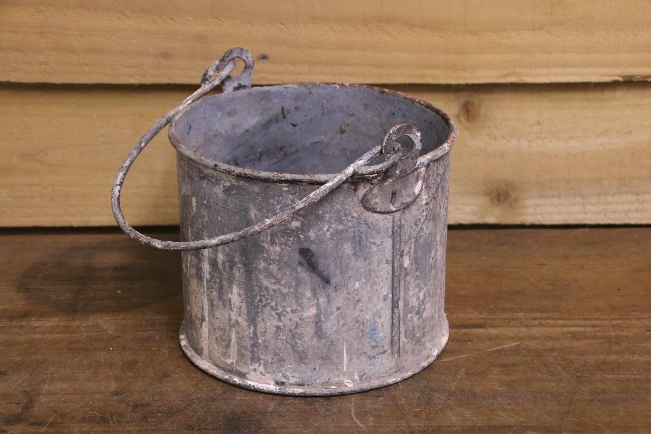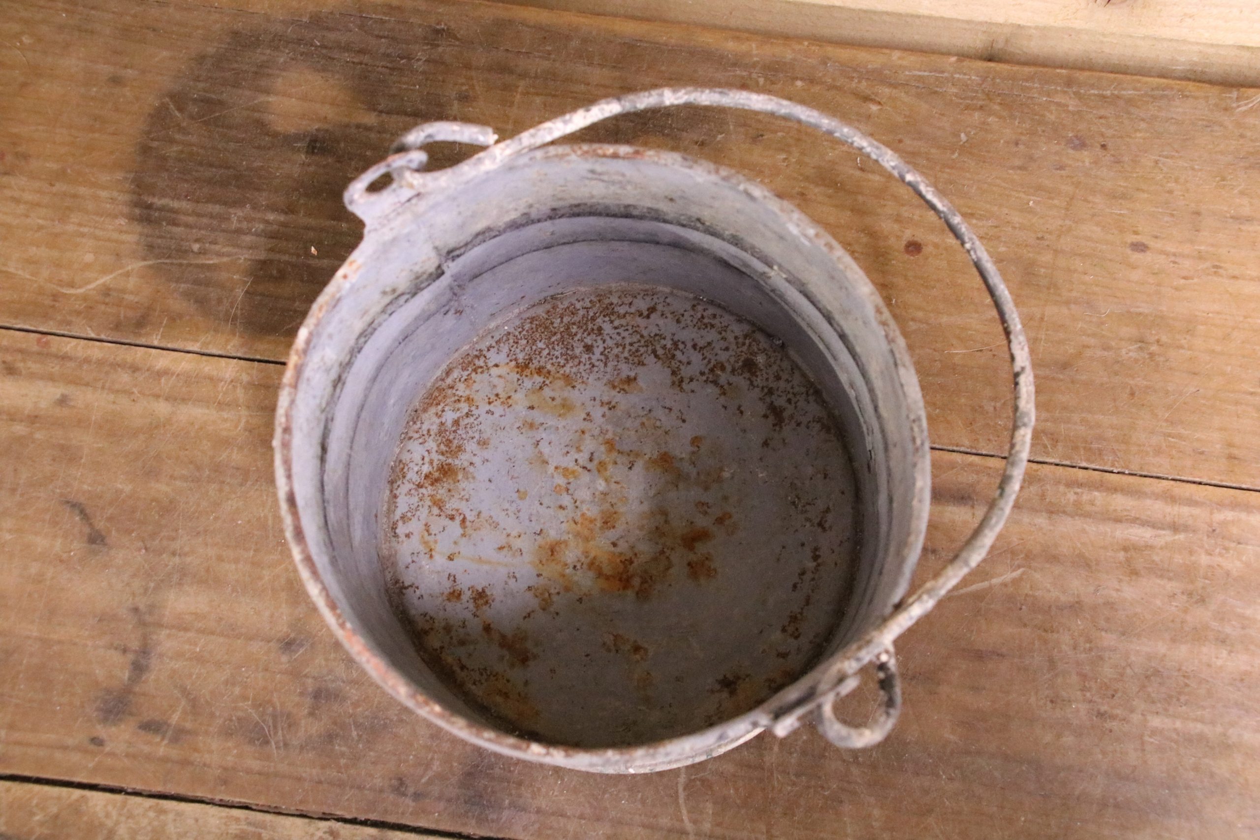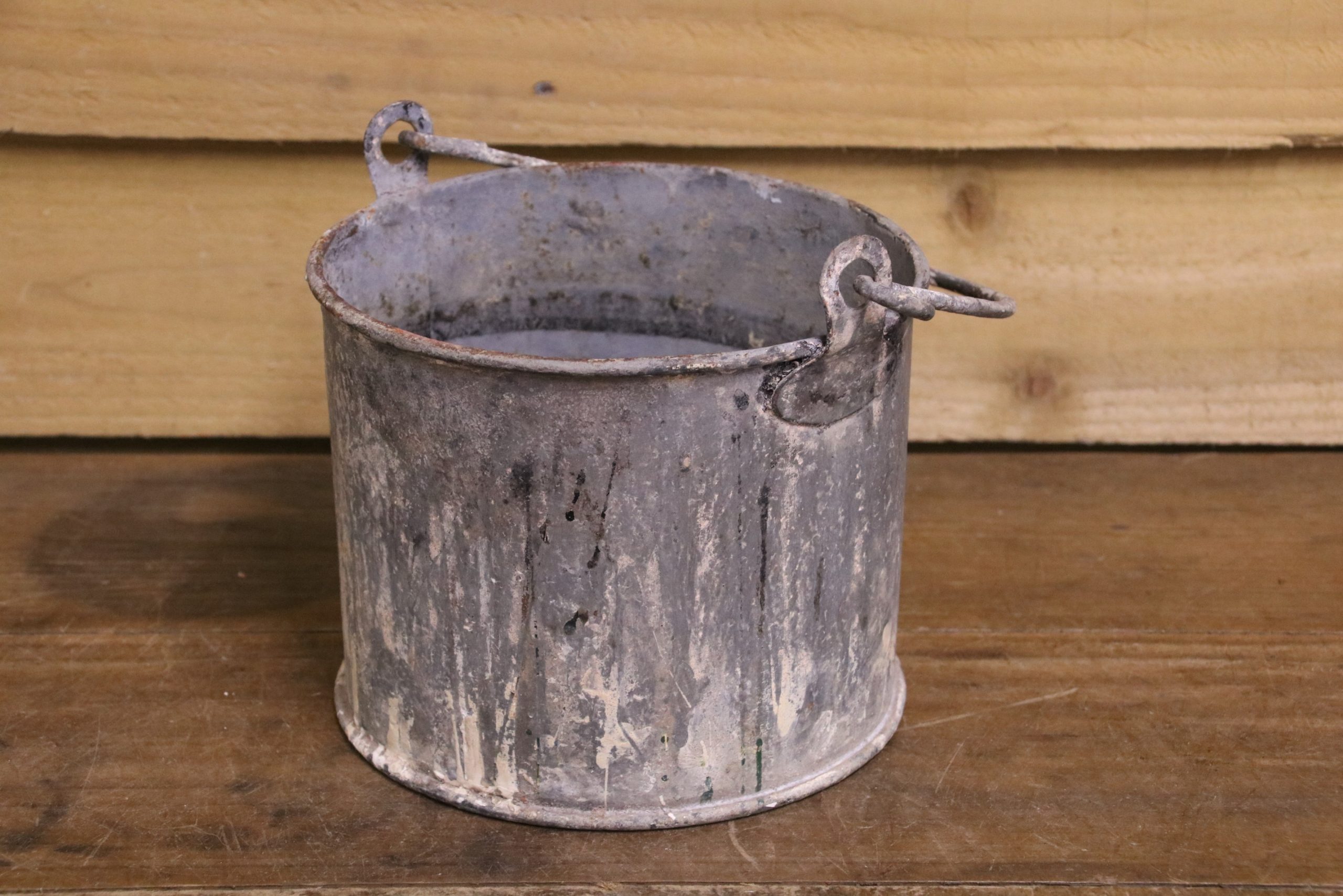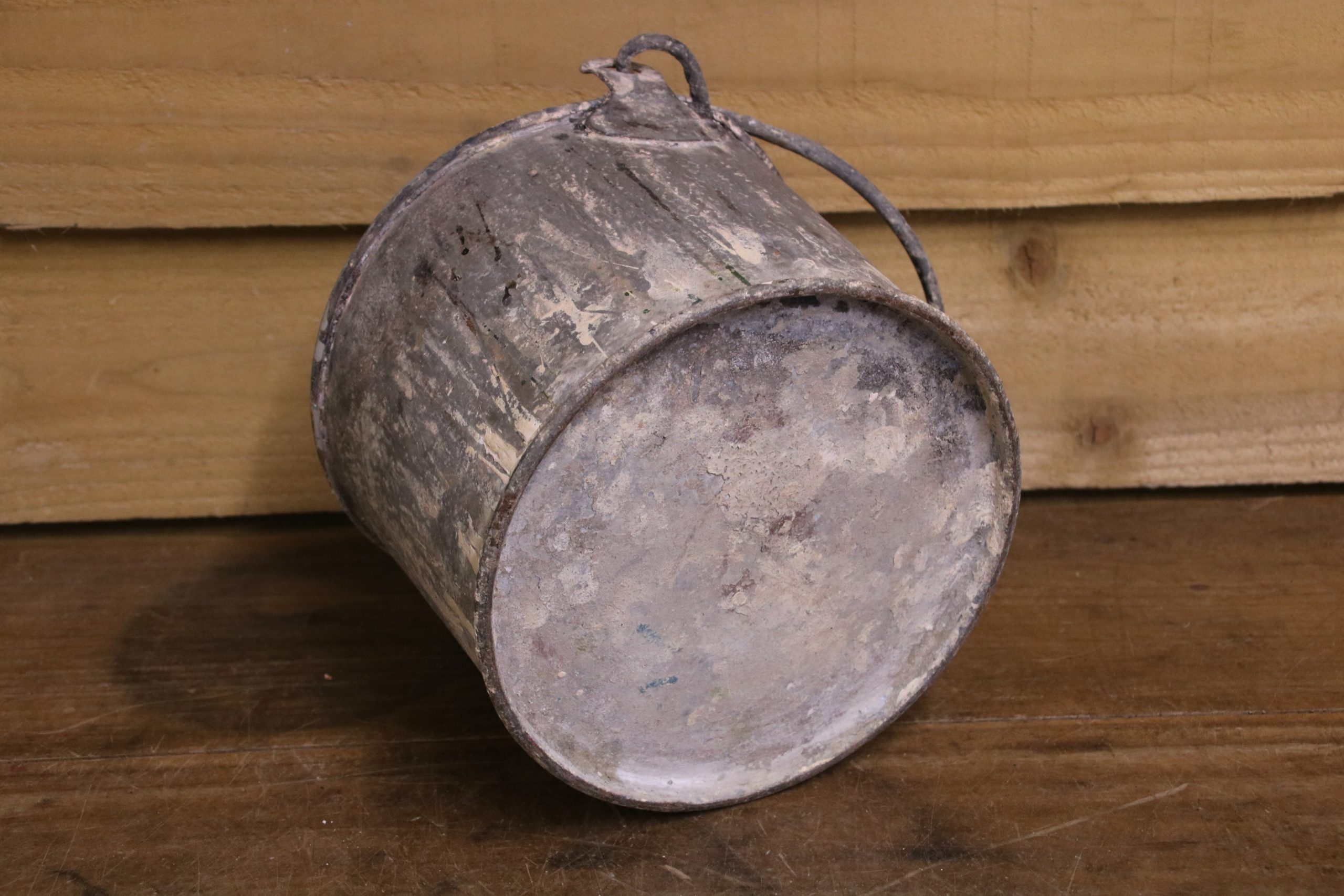 The pot is in very good condition with a few marks and stains due to age. It has one folding handle and there are some original paint splatters/drips.