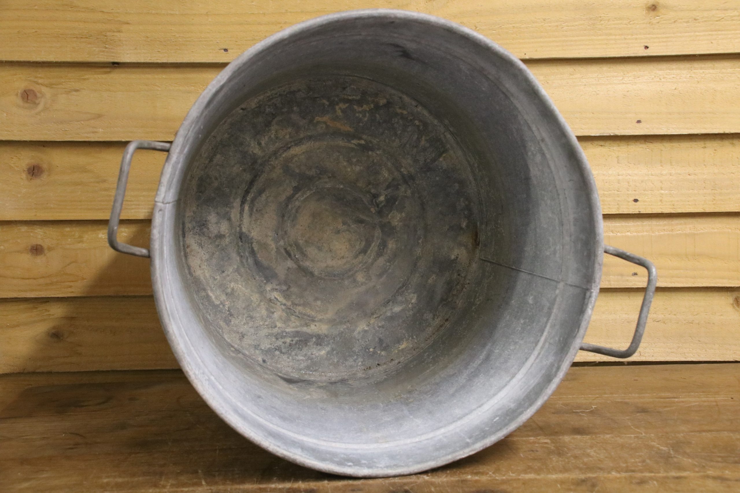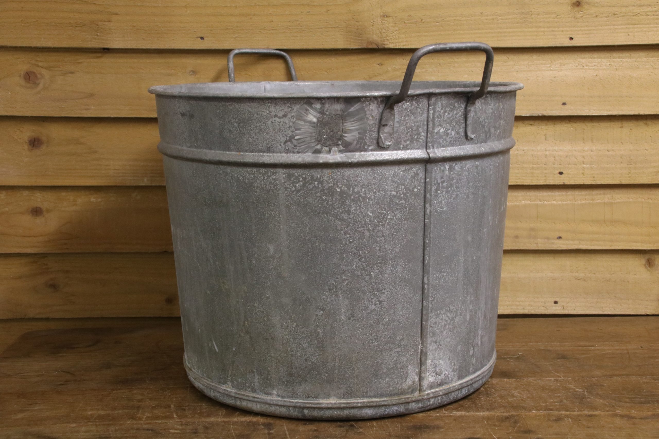 A vintage round, galvanised tub, originally used to boil and wash clothes. Perfect for planting up with spring bulbs, flowers or herbs. Holes can easily be drilled into the bottom for drainage.