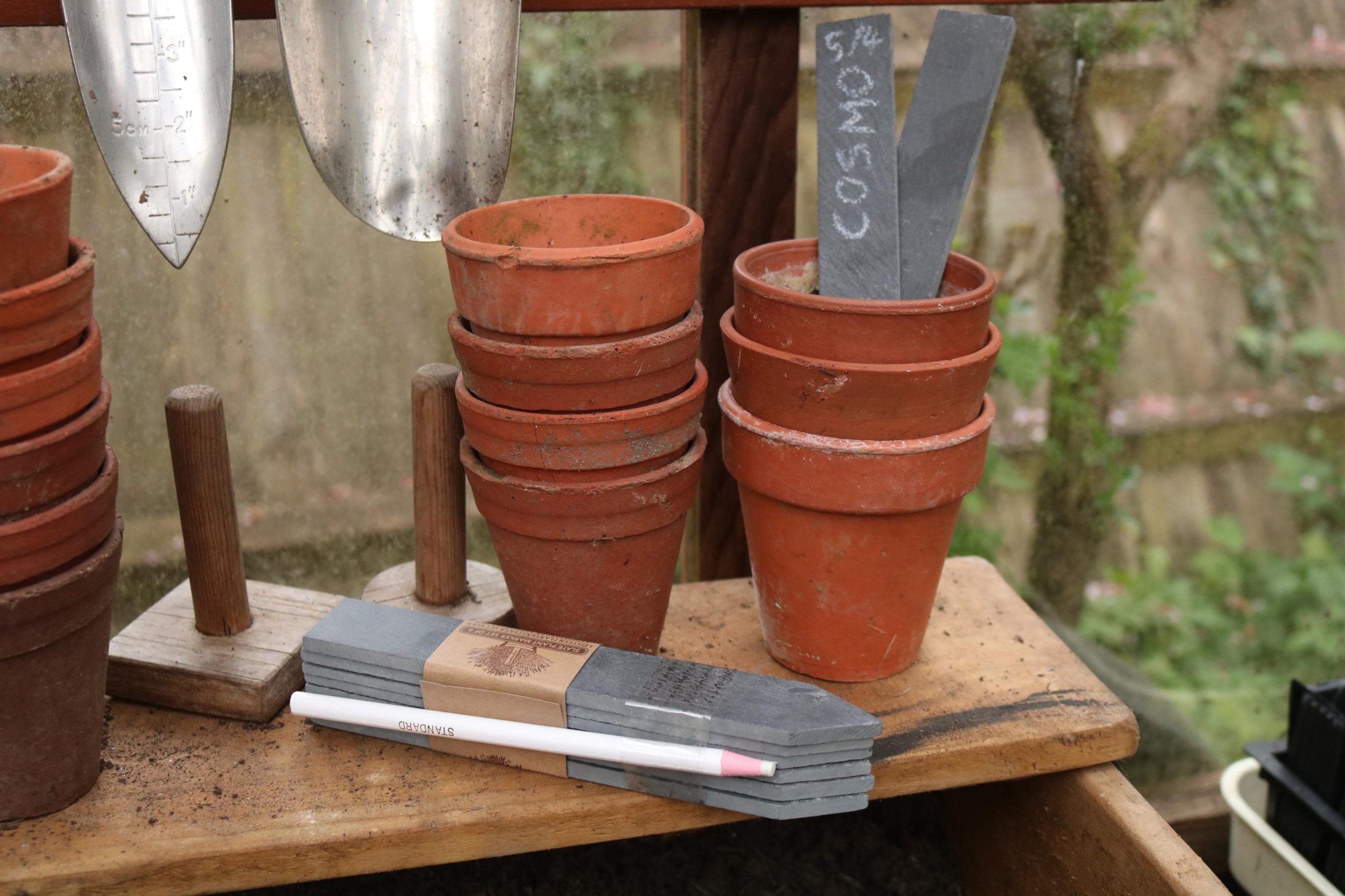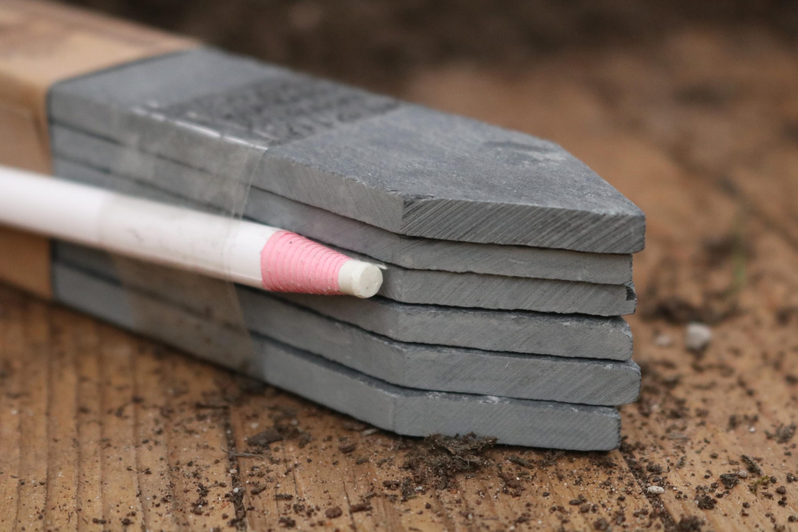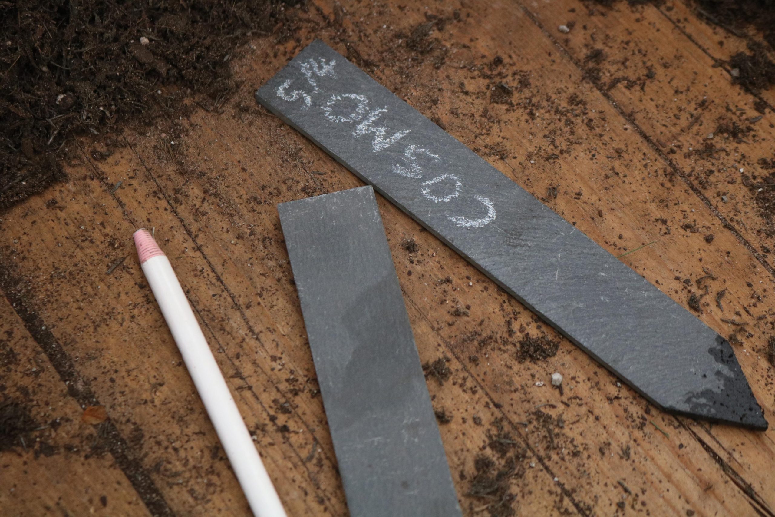 Beautiful real slate labels for use in the greenhouse or for labeling containers and herbs. Each label may differ in thickness and they have a point on one end to make it easier to push into soil.
