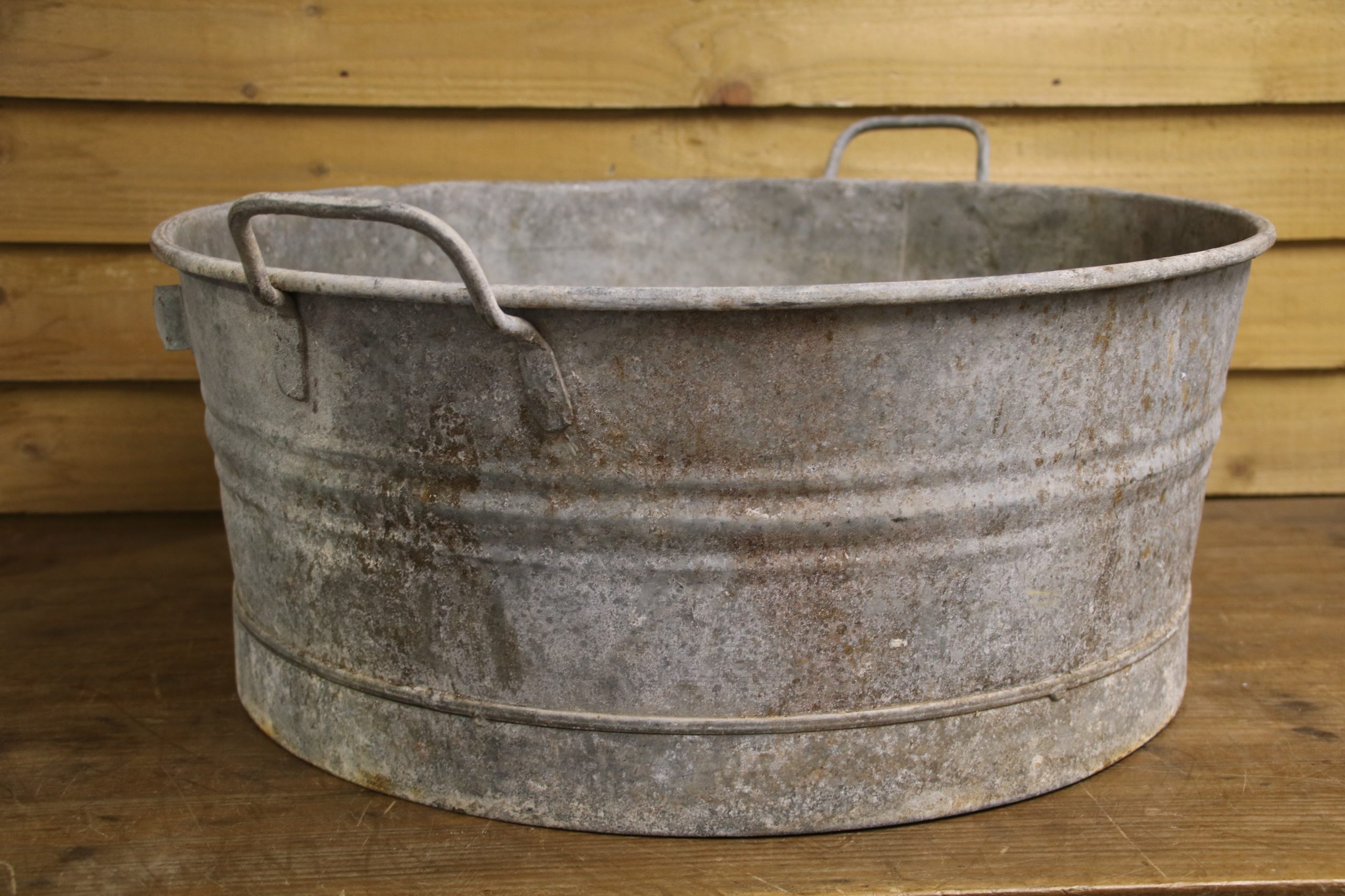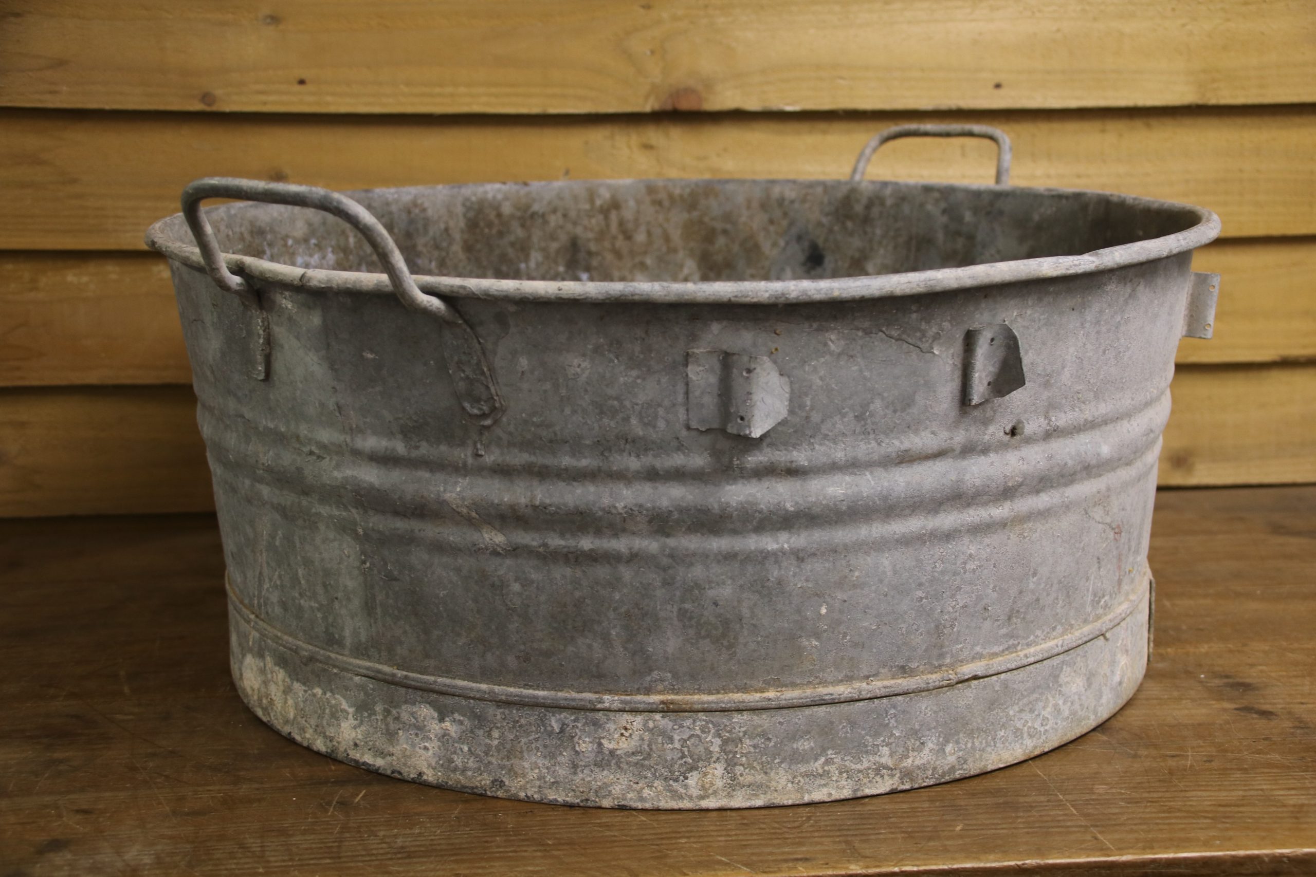 A large, round shallow galvanised tub which would look amazing filled with Spring bulbs and flowers in the garden.