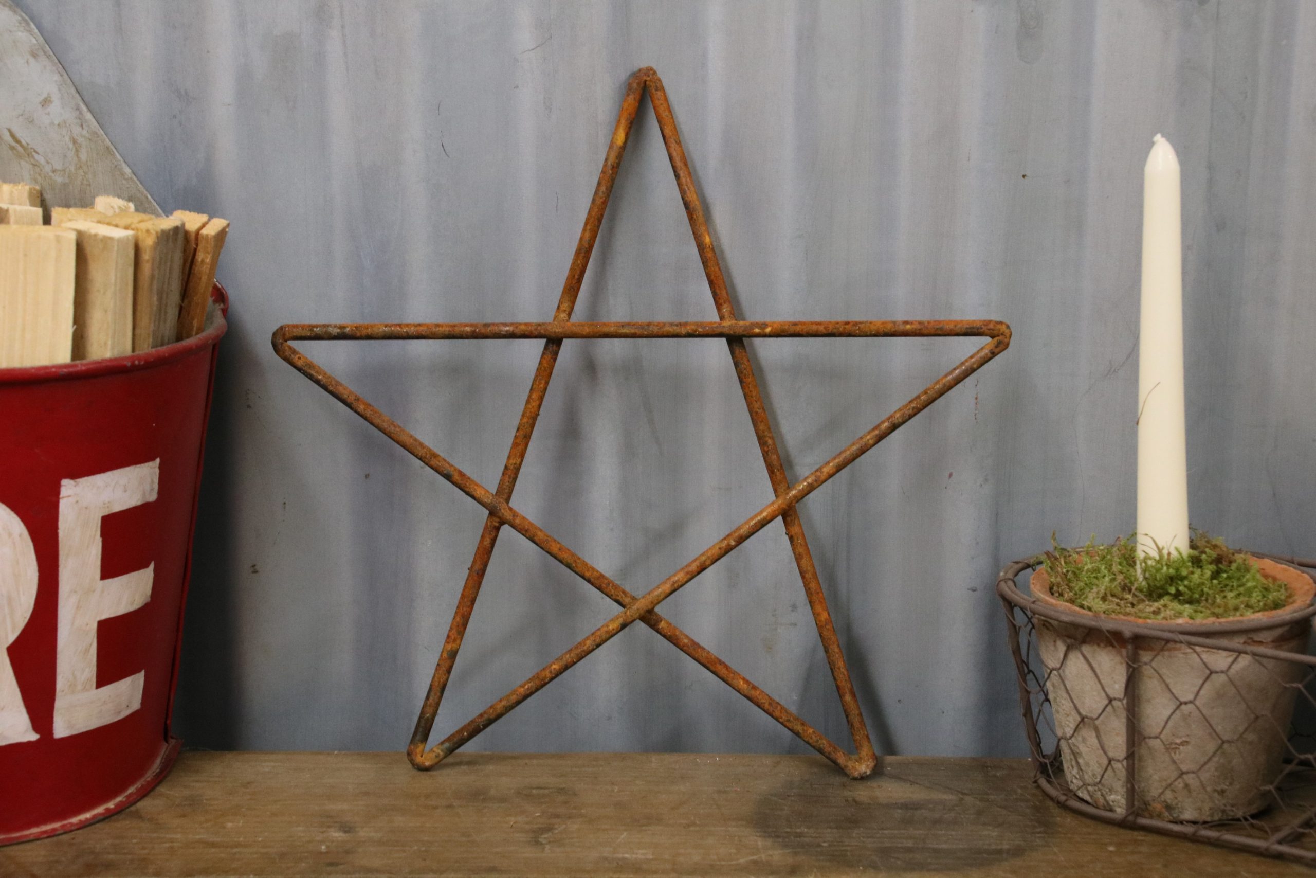 Handmade on the Welsh border from solid steel bar with a natural rust finish. Each star is individually made so slight variations may occur.