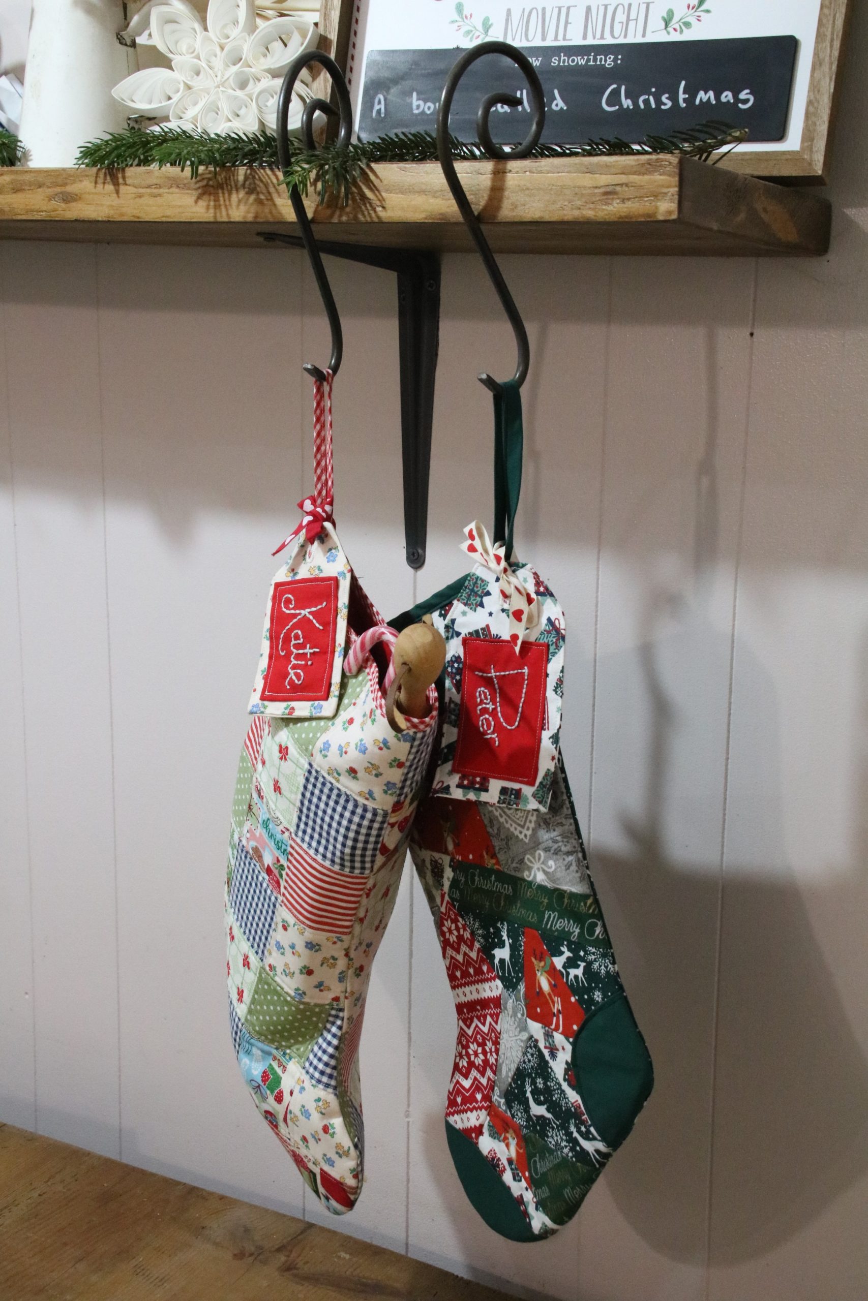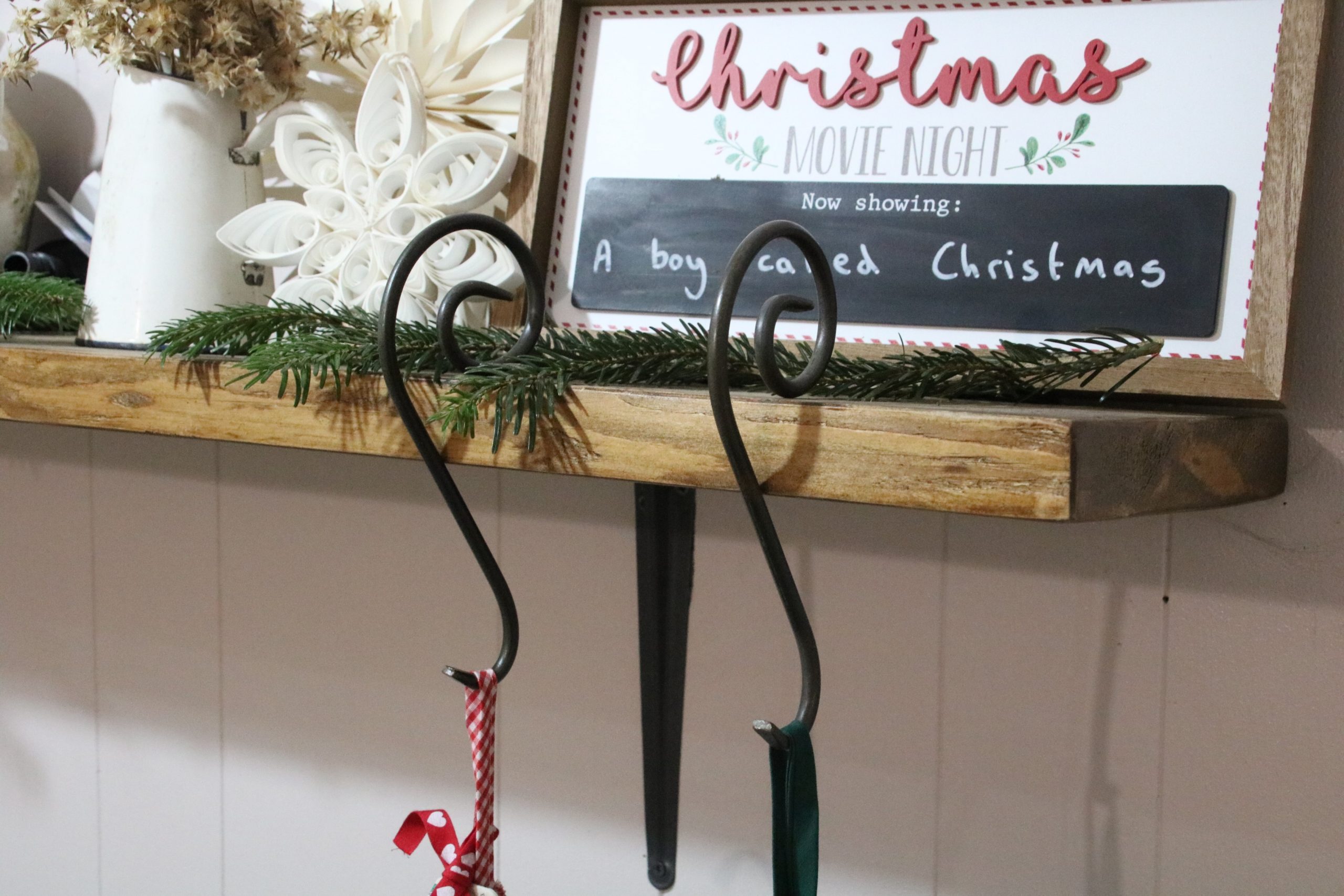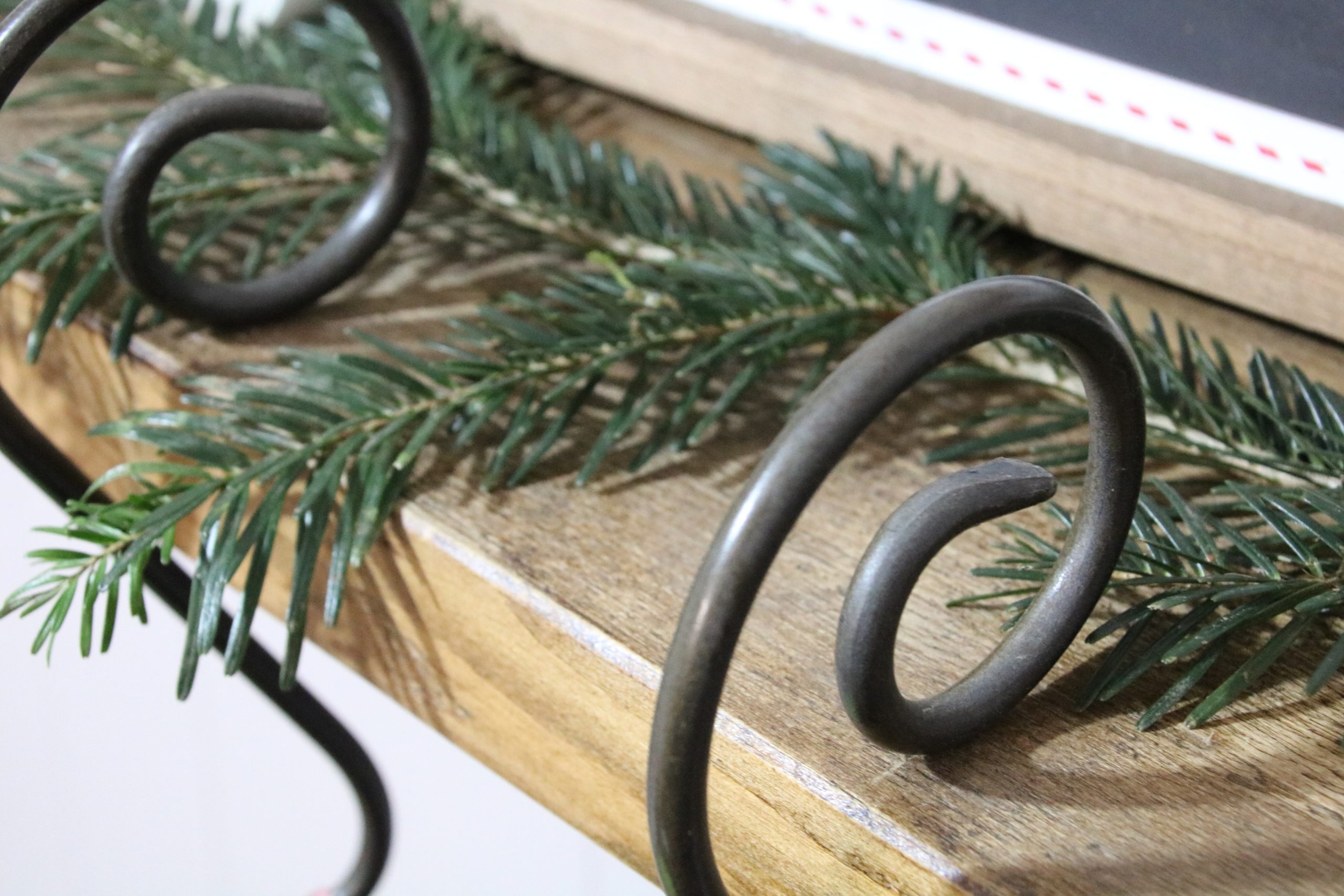 A beautiful handmade Christmas stocking hanger. Simply place on the fireplace mantle or a shelf and hang those stockings ready for Santa. It could also be used to hang a garland or wreath.