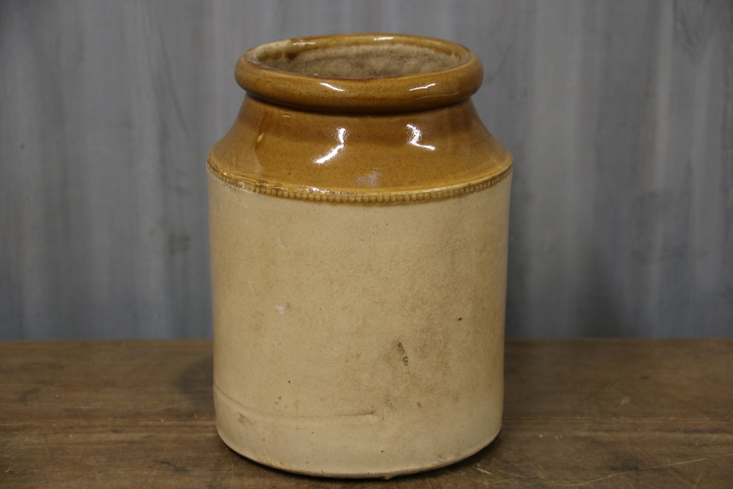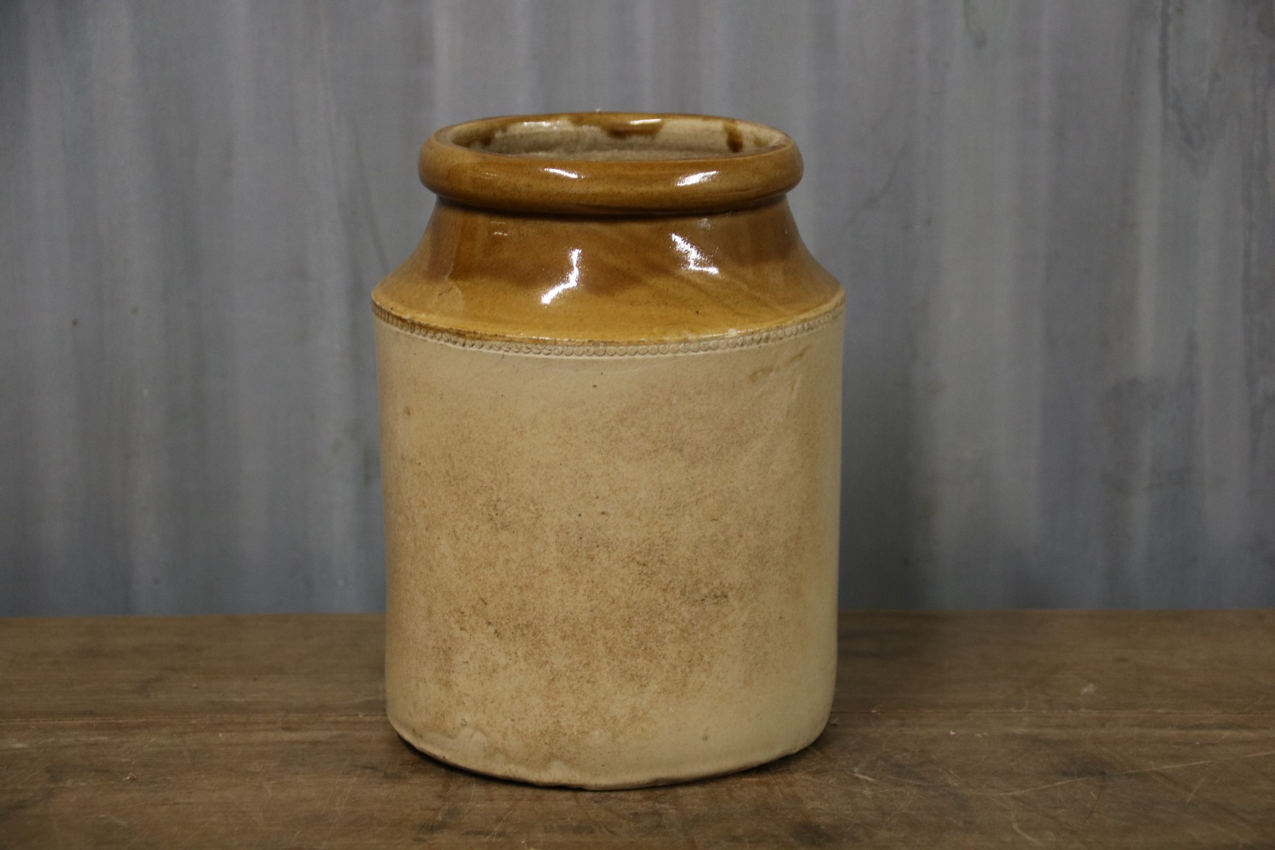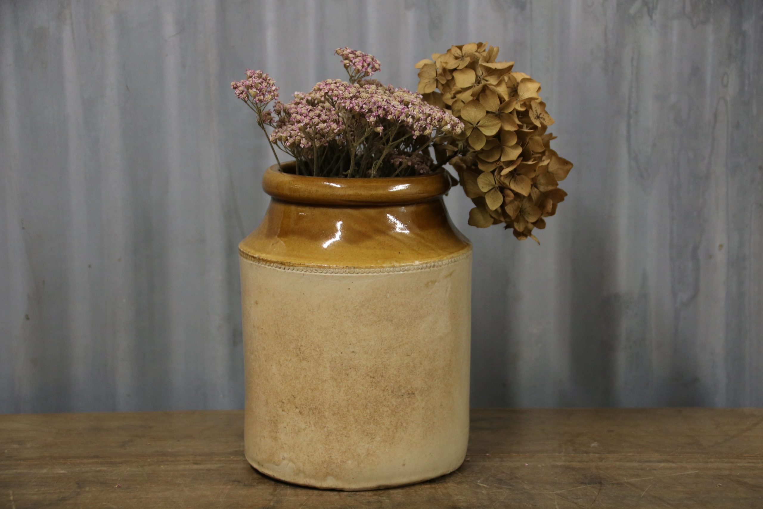 A rustic stoneware jar, originally used to store food but they would make beautiful vases for the country home. Simply fill with homegrown flowers or use to store kitchen utensils inside.