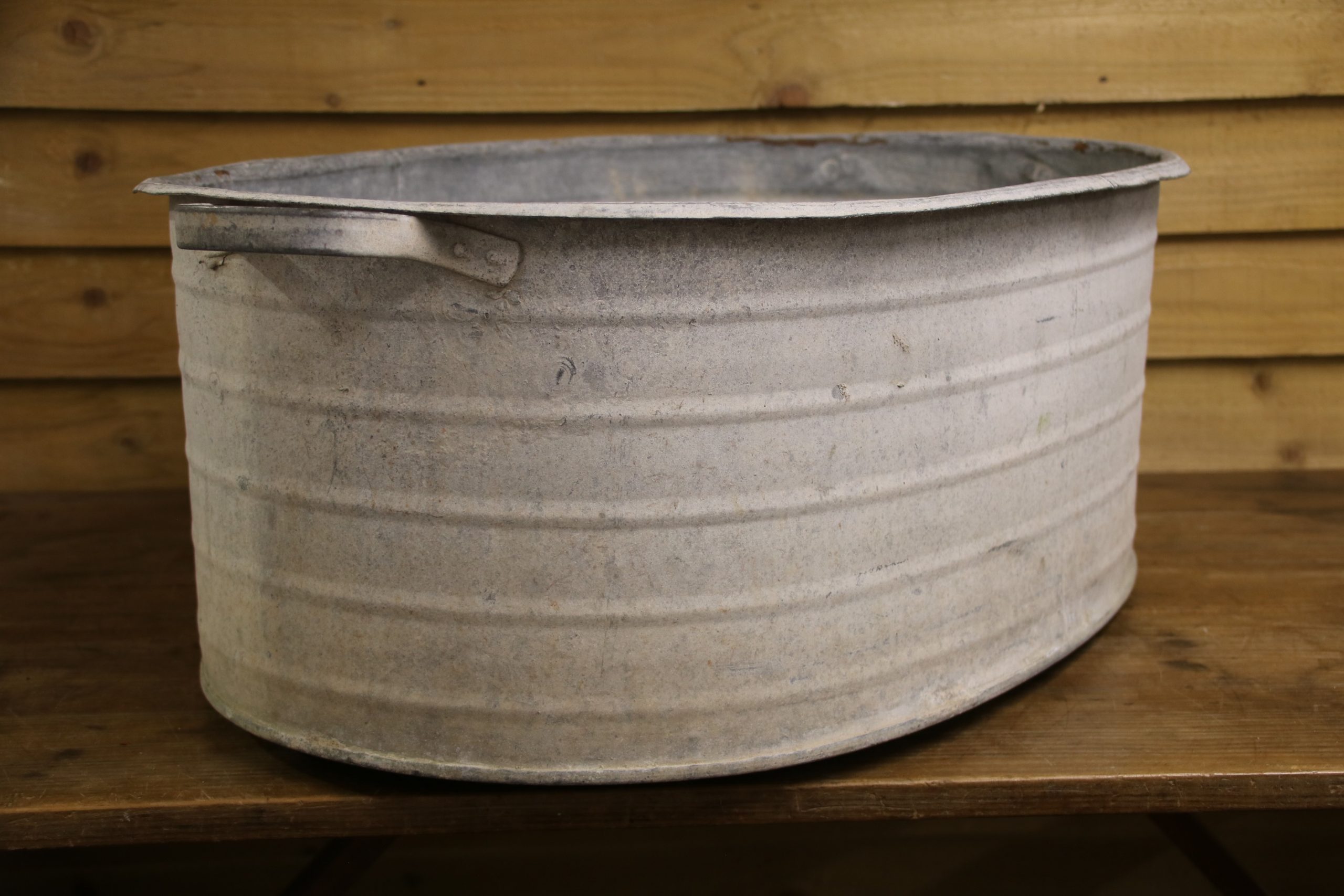 A large, straight edged galvanised tub which would look amazing filled with Spring bulbs and flowers in the garden.