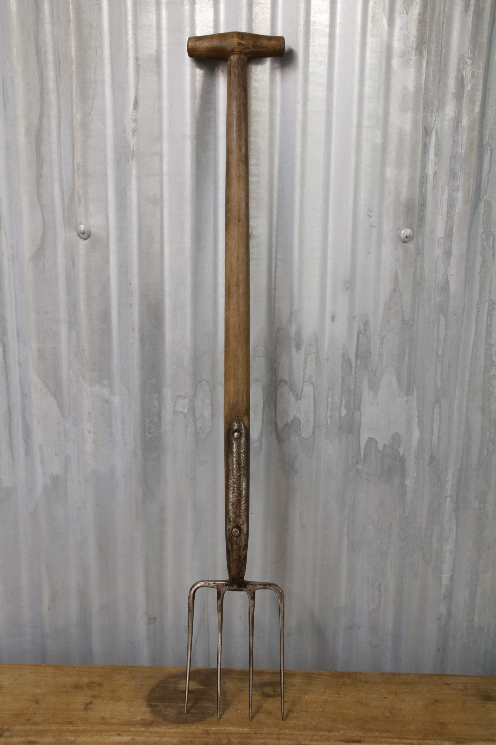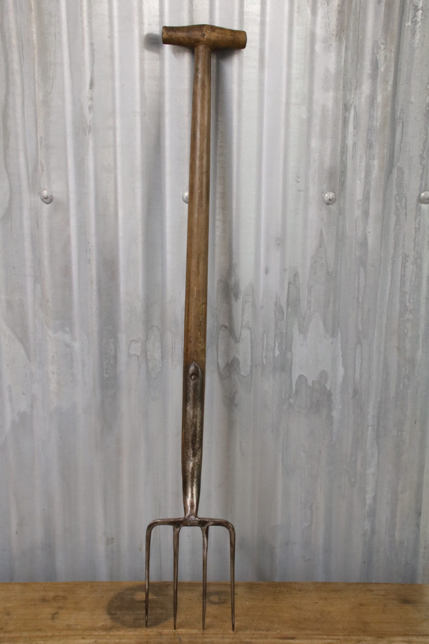 This vintage garden border fork is in very good condition with a waxed wooden T handle.