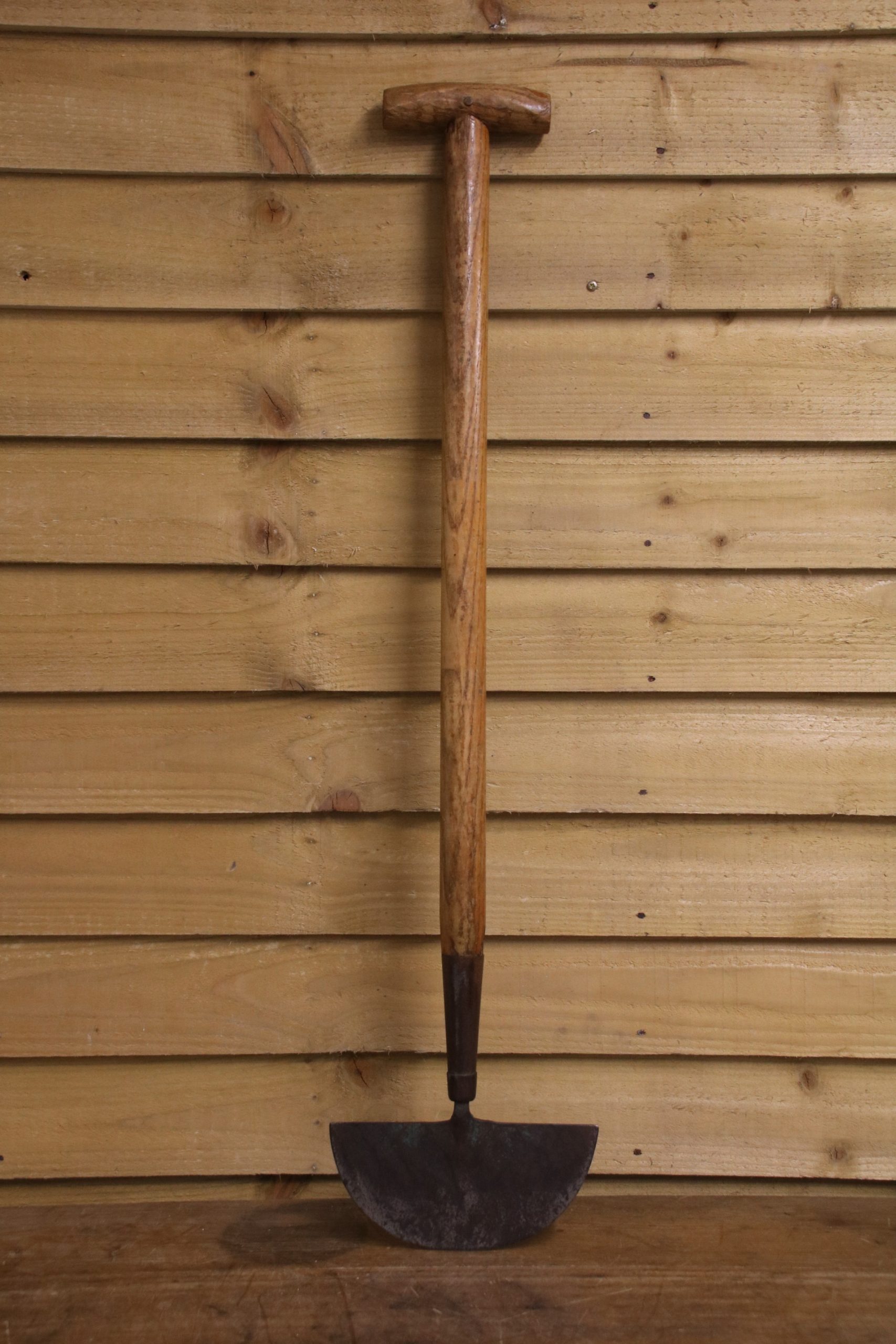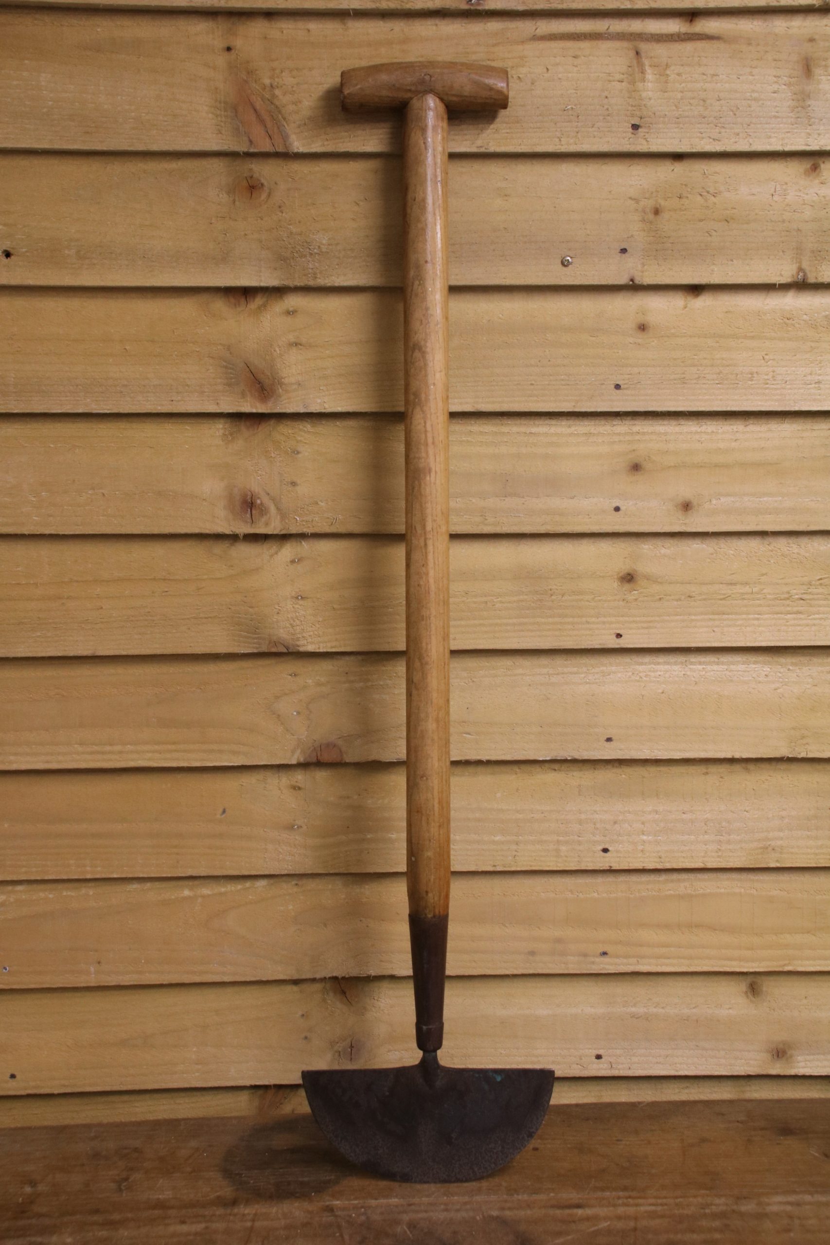 This vintage lawn edger is in very good condition with a waxed wooden T bar handle. It may need a sharpen.