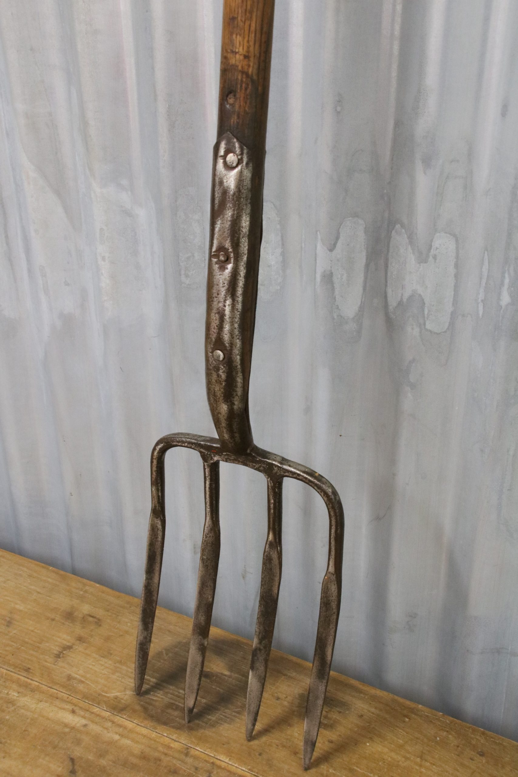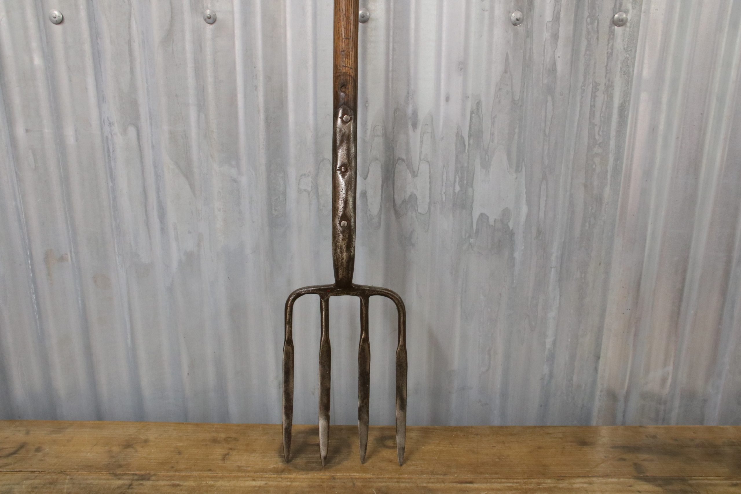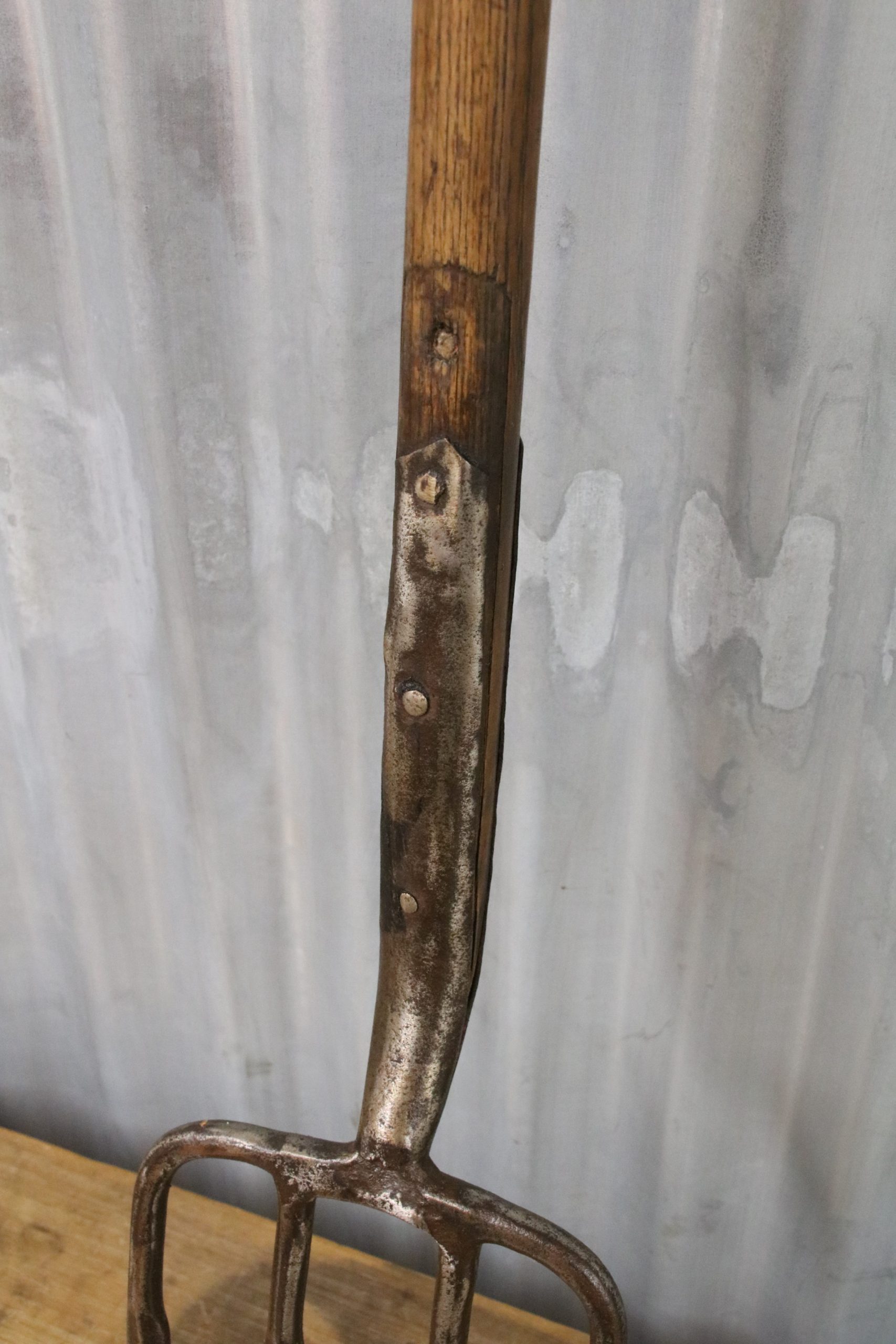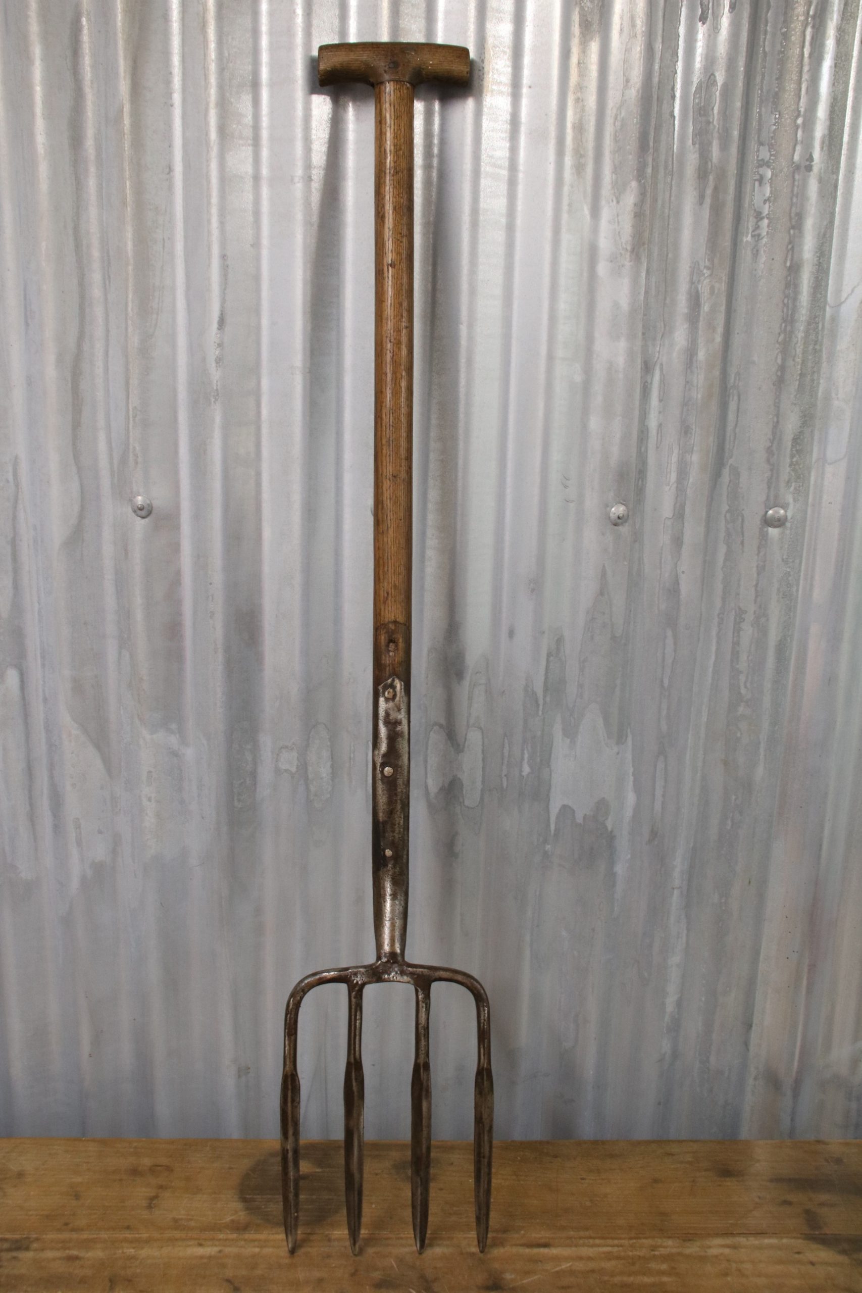This vintage garden fork is in very good condition with a waxed wooden T handle. It has 4 flat prongs, perfect for harvesting potatoes.