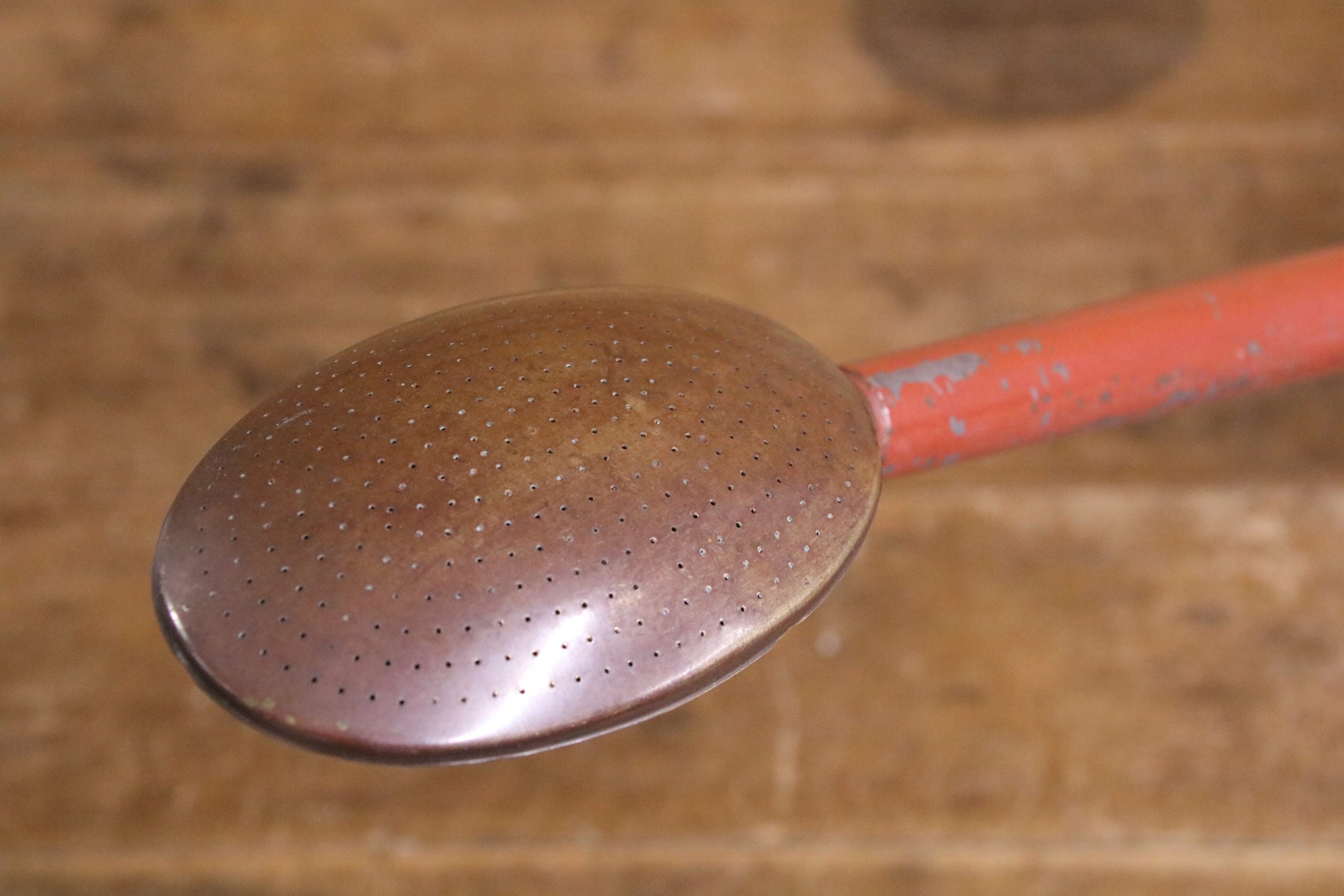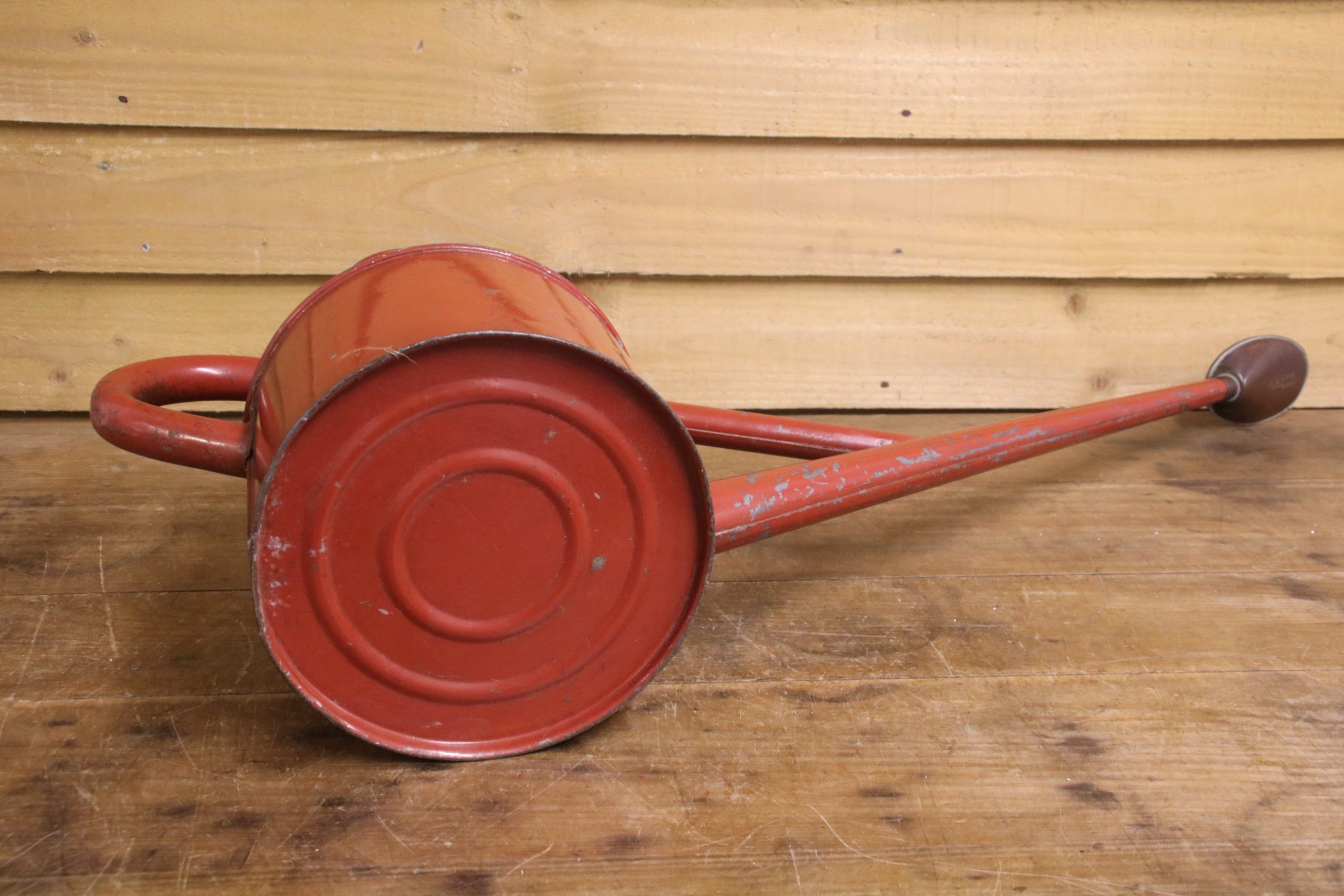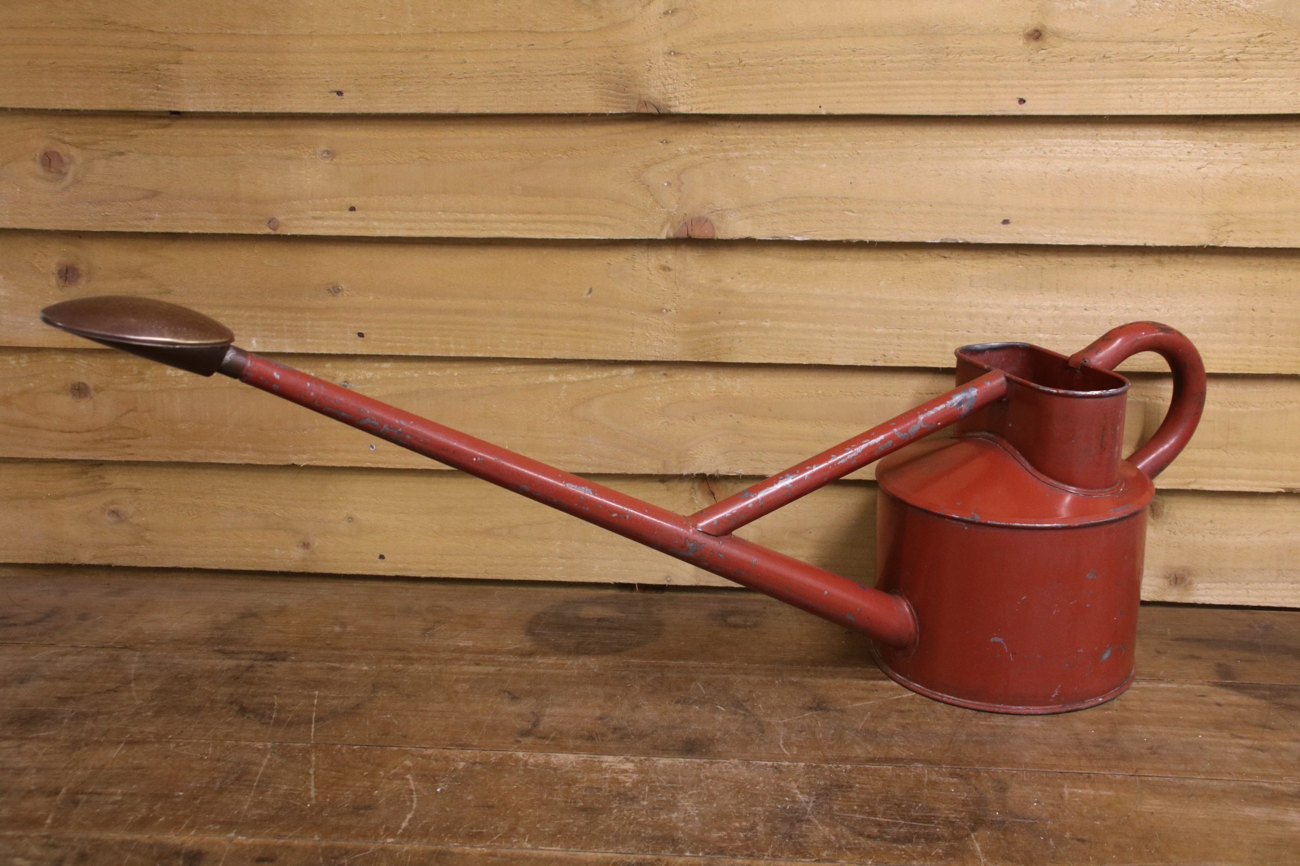 The watering can is in very good, used condition with a few marks and stains due to age. The red paintwork has a beautiful distressed look to it. Comes complete with a removable brass Haws rose, No.2&3.