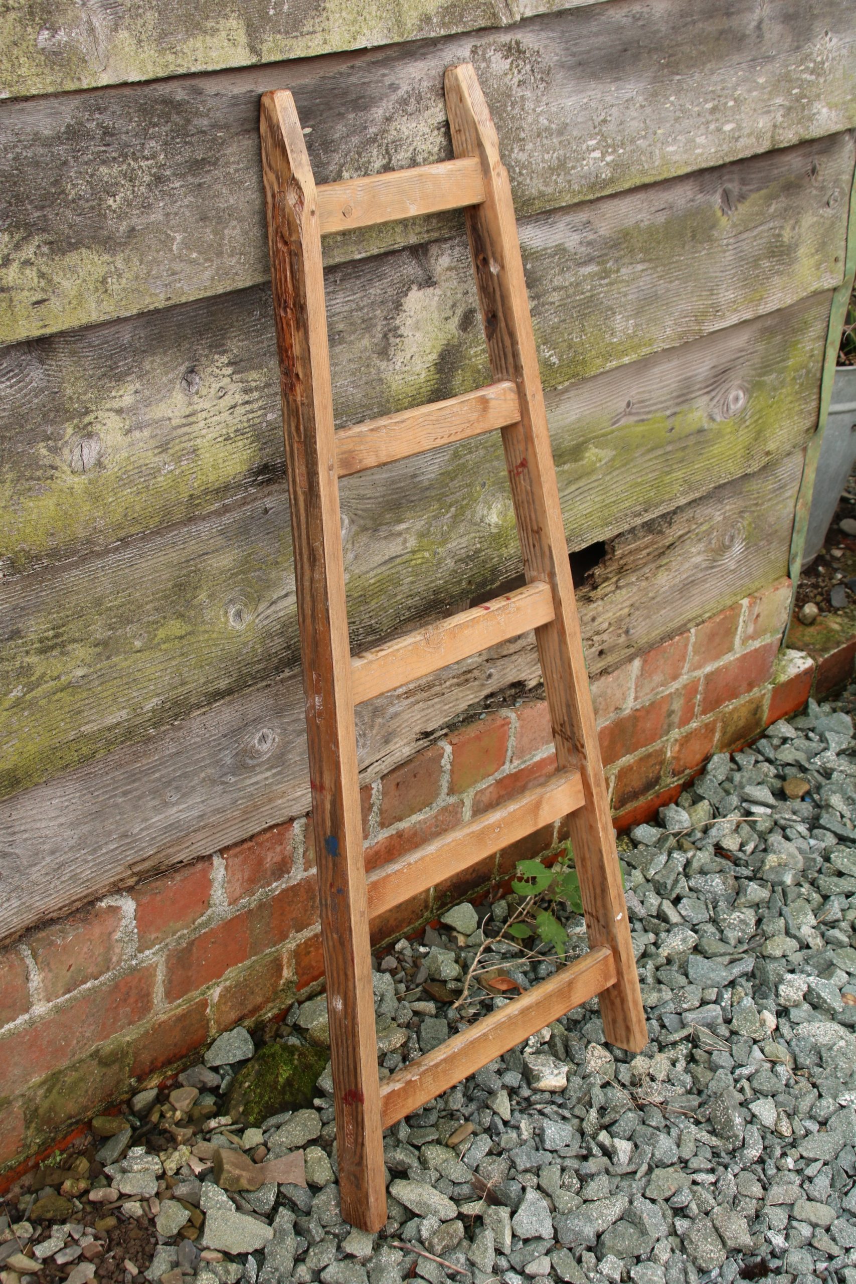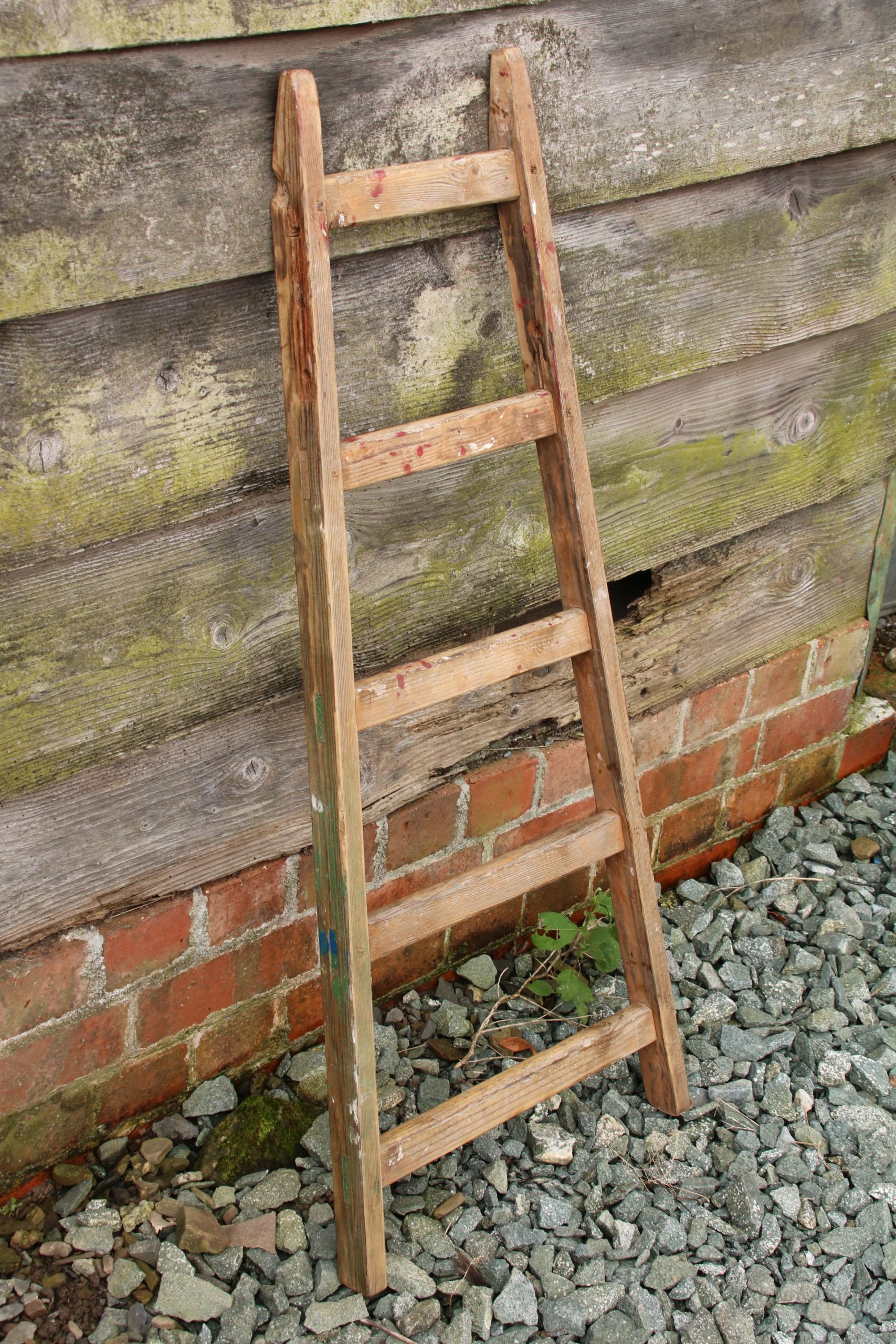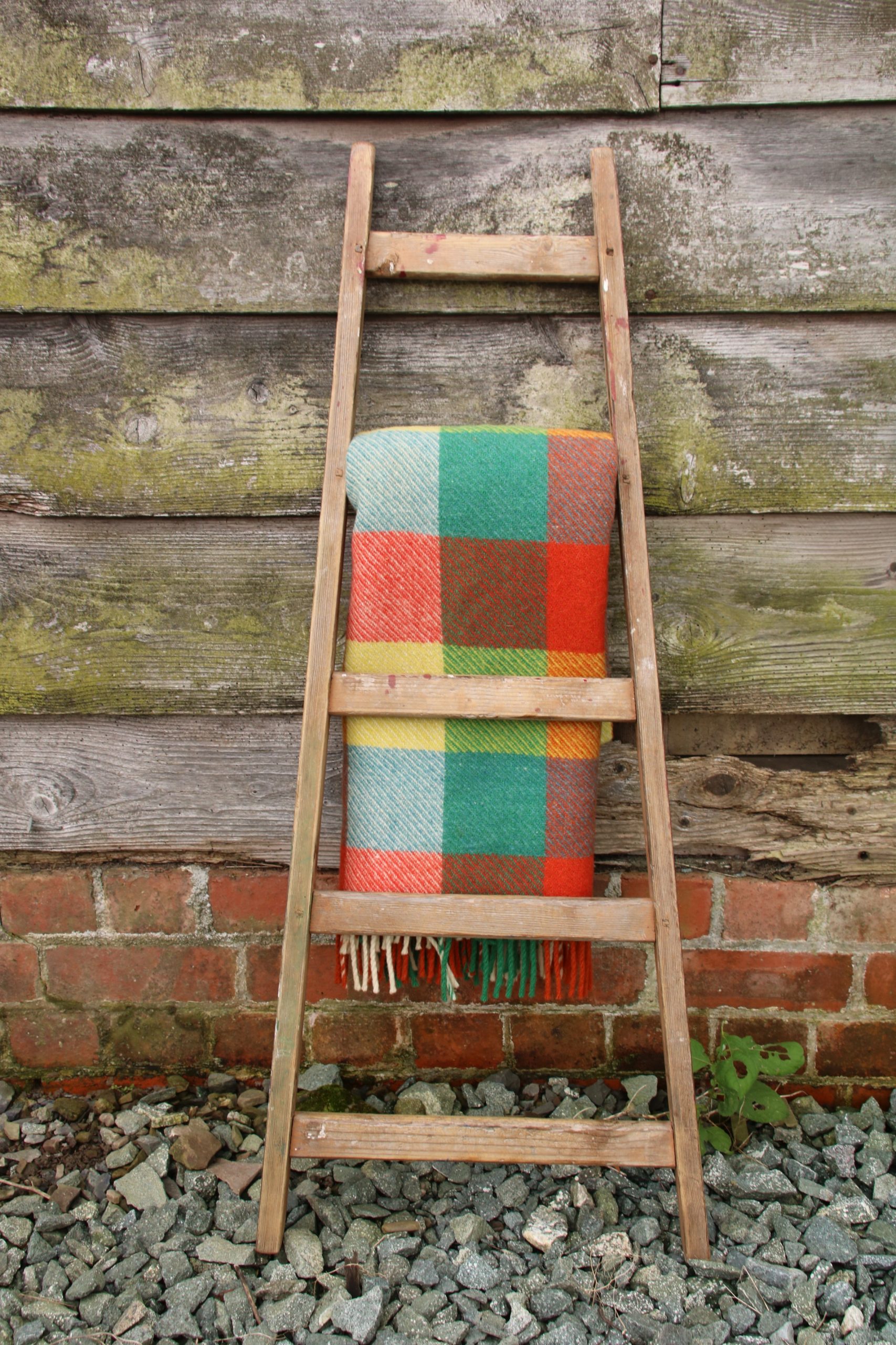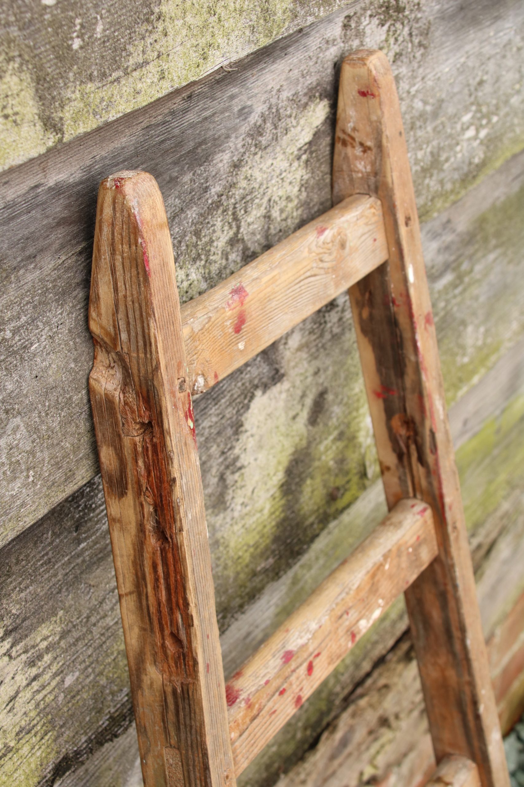 An industrial, old wooden ladder. Perfect for leaning against a wall to store towels or blankets.