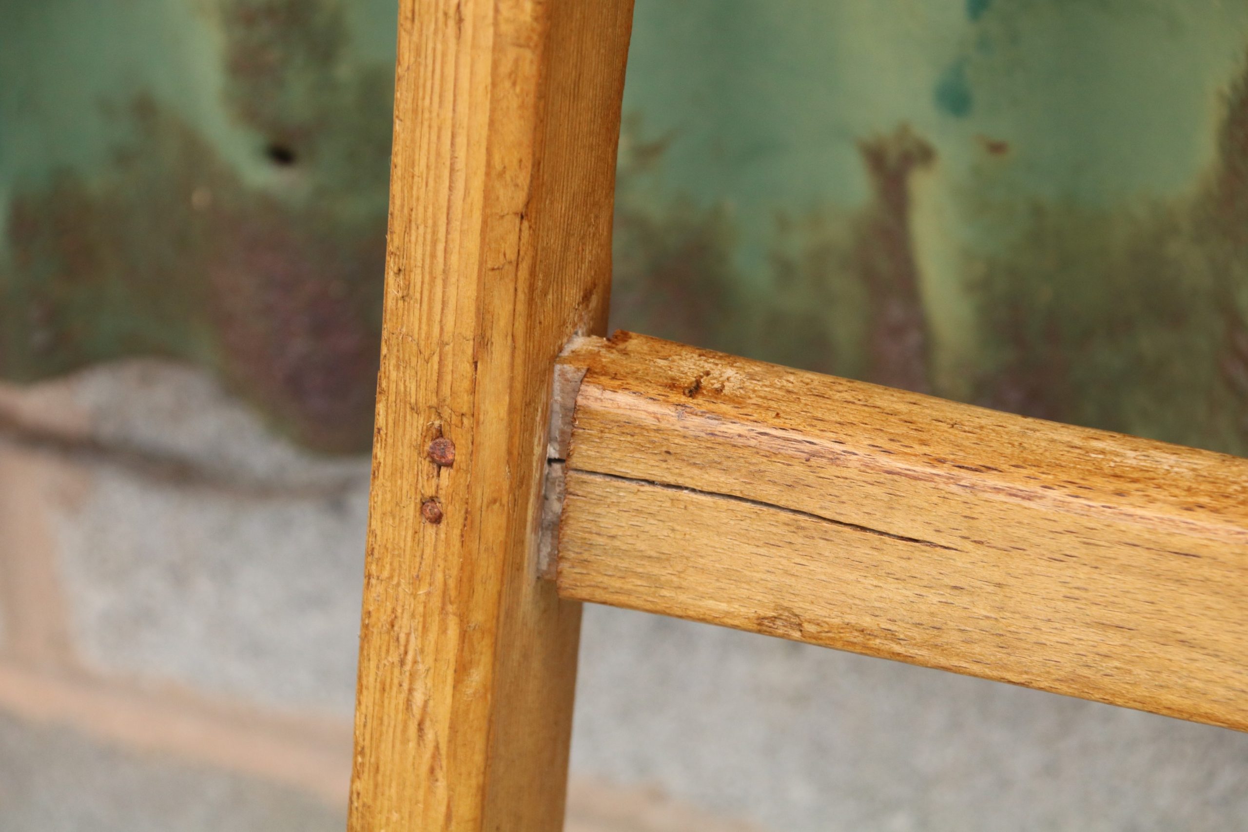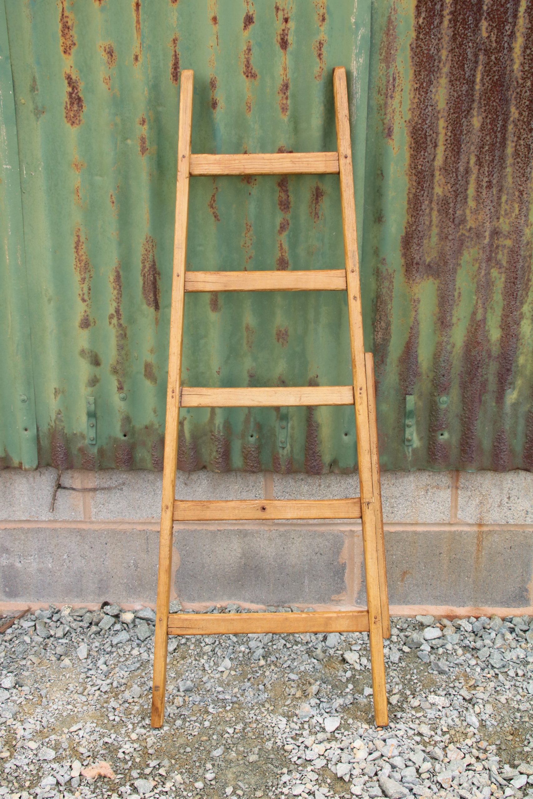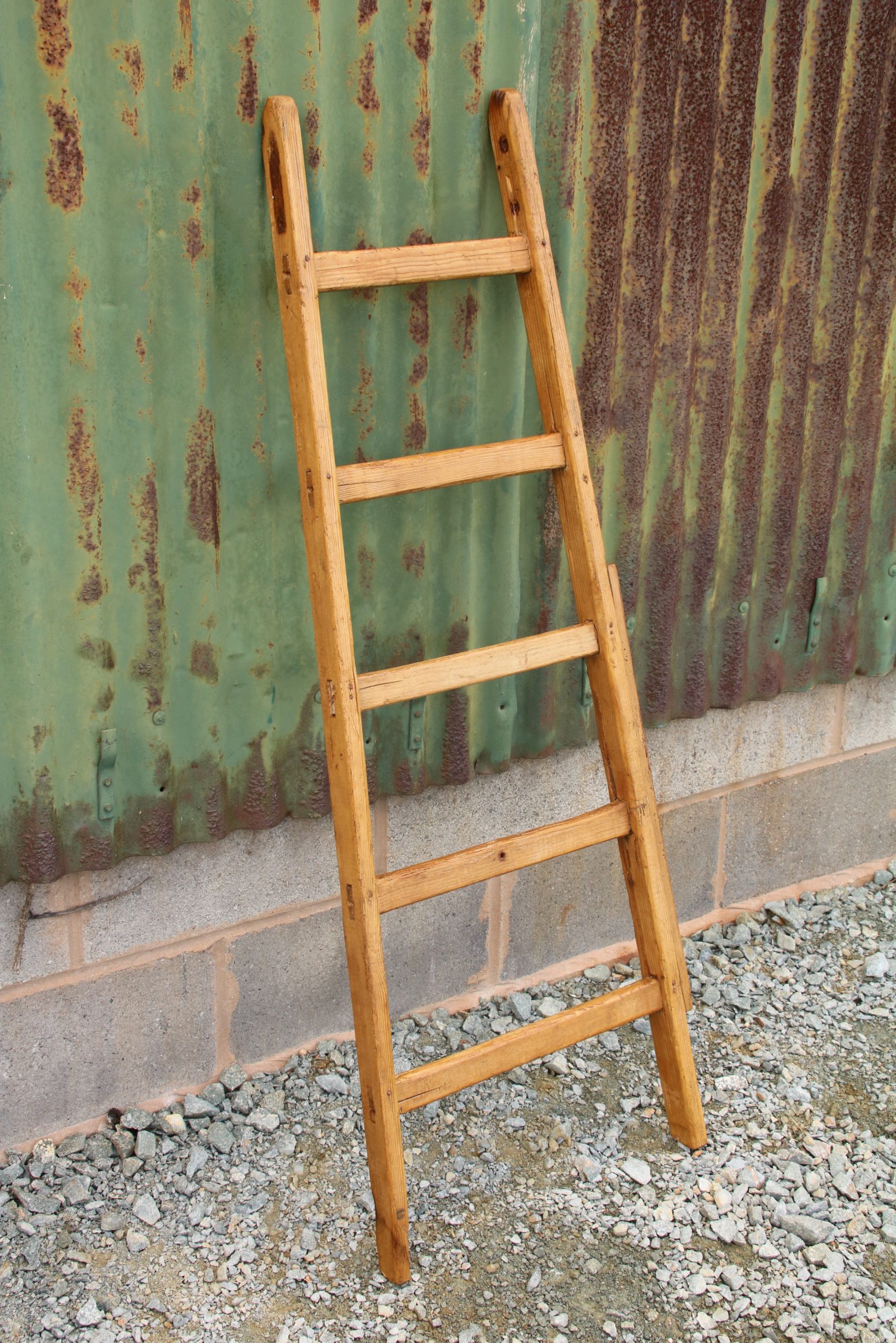 The ladder is in good, used condition with quite a bit of sideways motion. The leg has been repaired with a piece of wood attached to outside to strengthen it. It has been waxed and polished and has some original patina on it. There are signs of old woodworm which has been thoroughly treated.