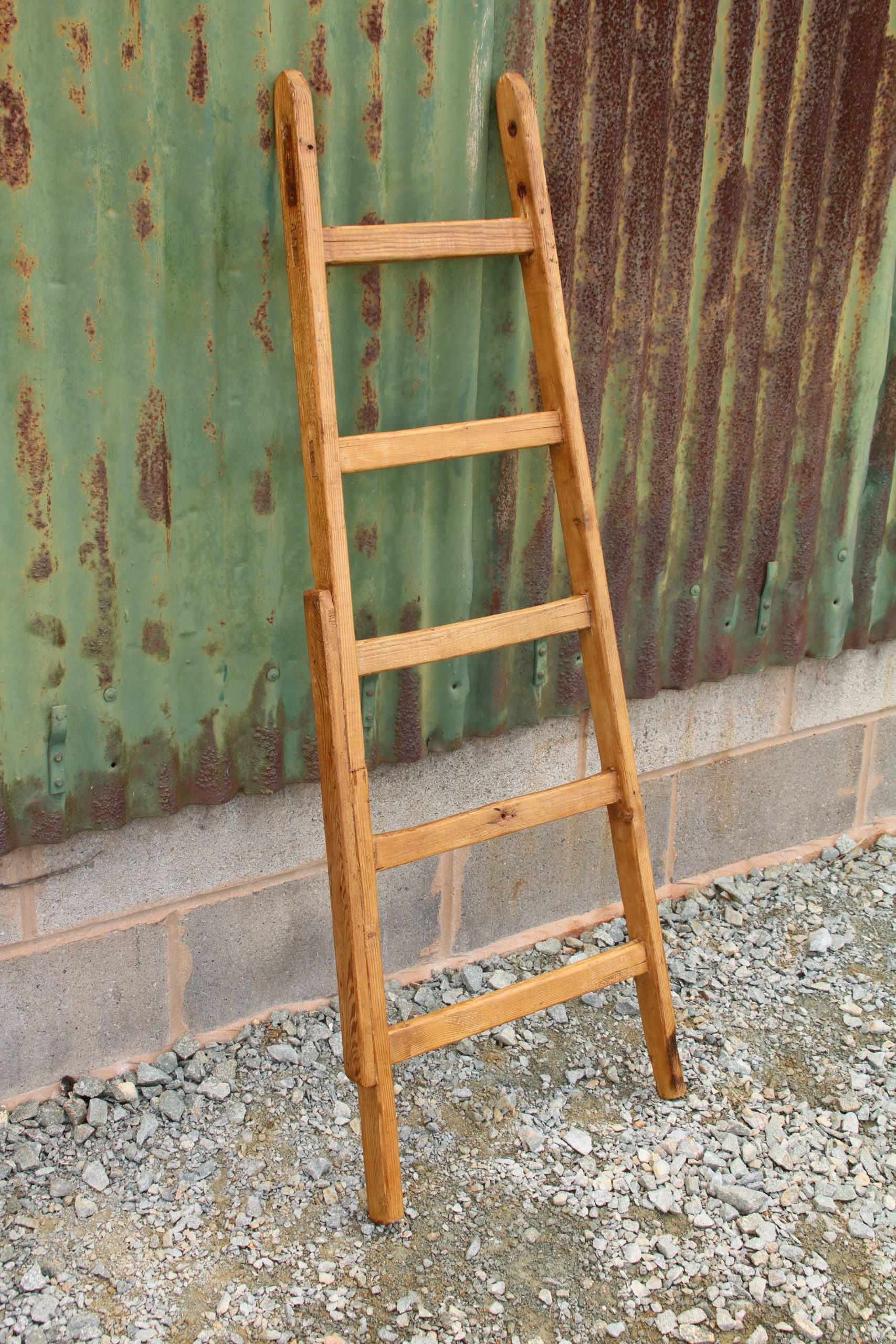 An industrial, old wooden ladder. Perfect for leaning against a wall to store towels or blankets.