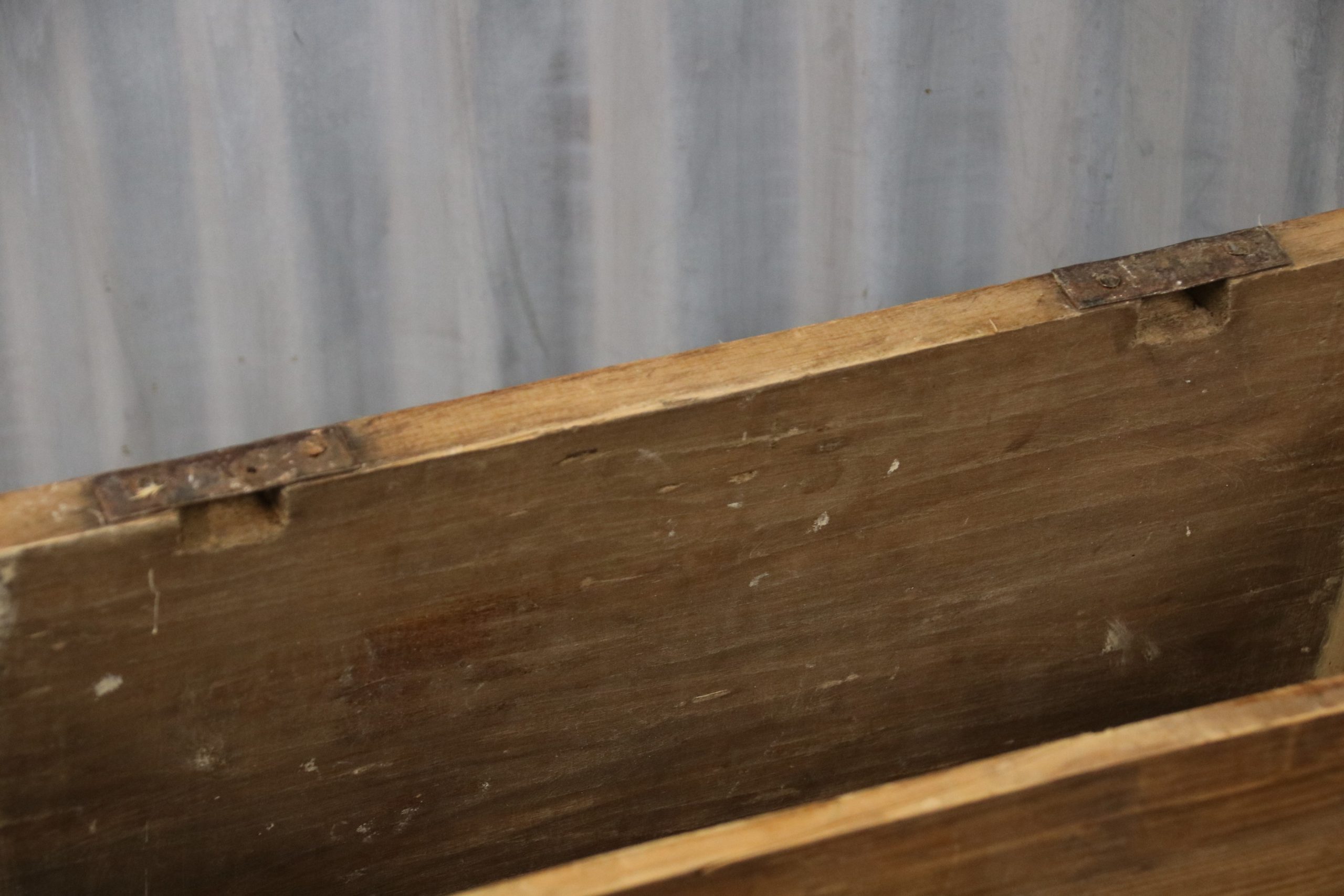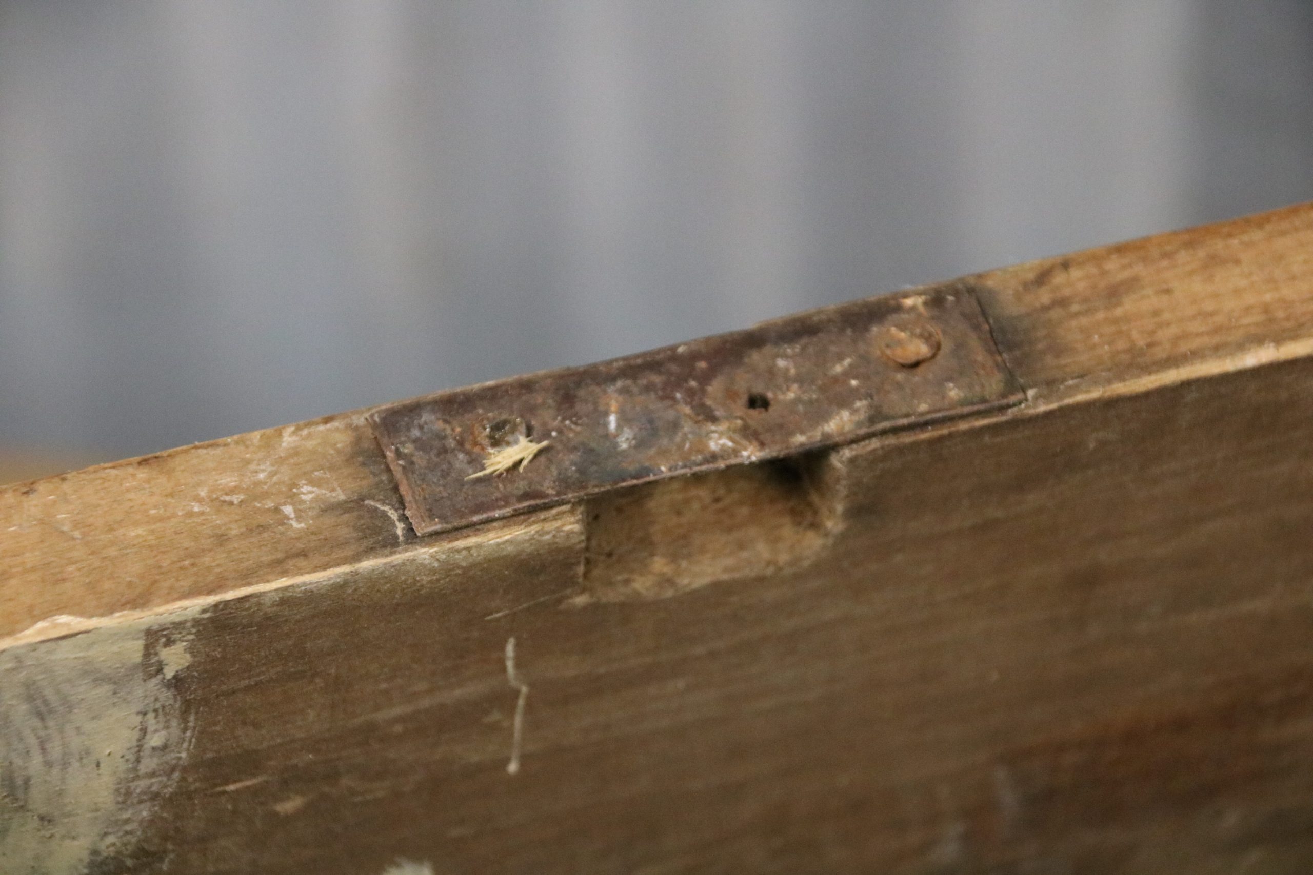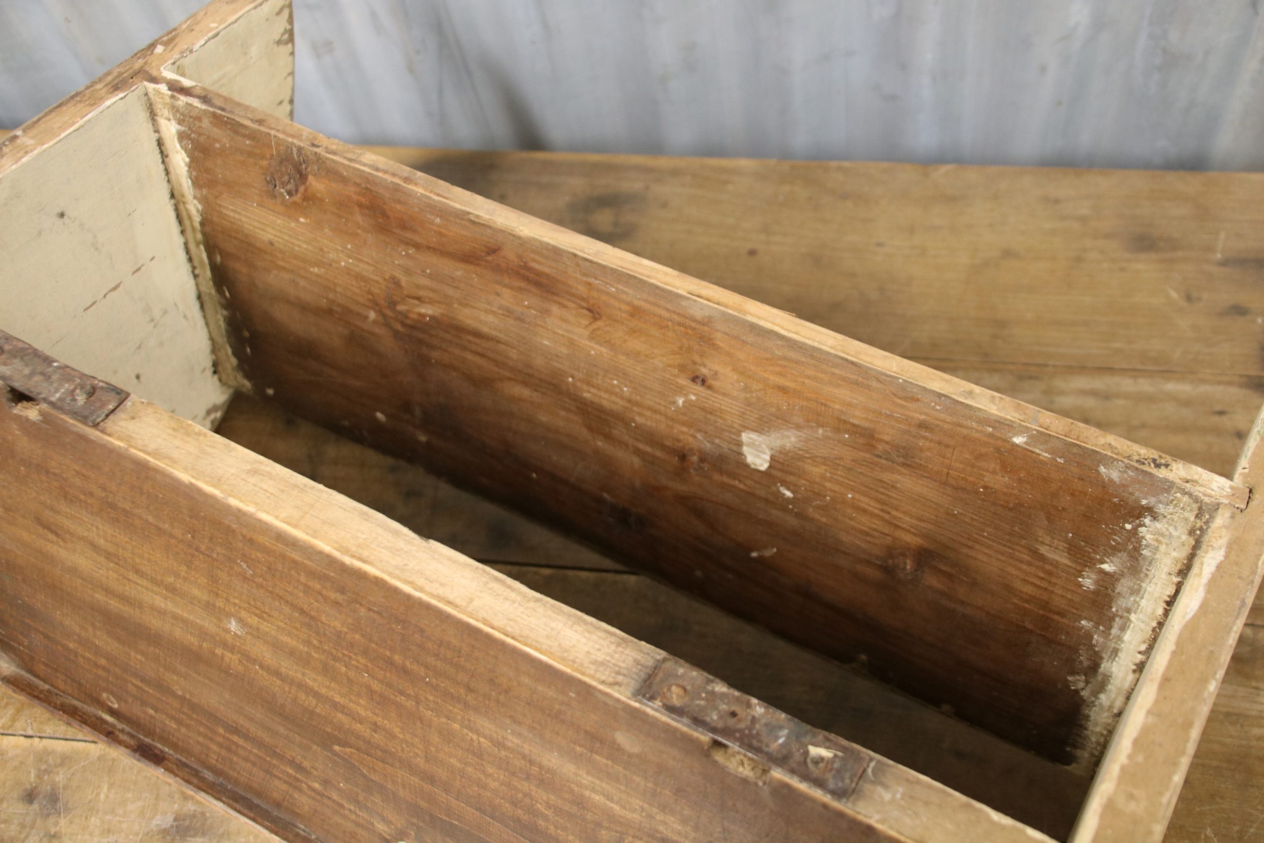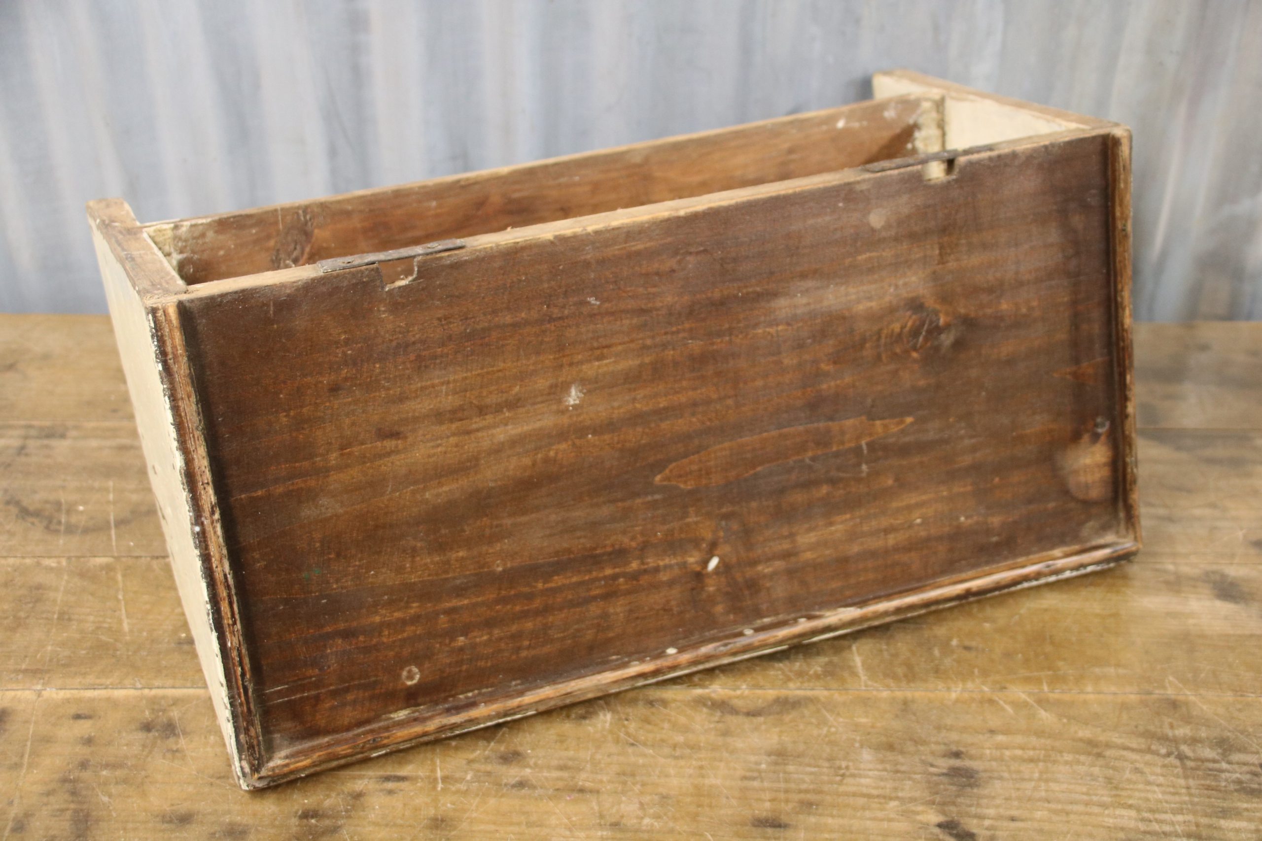 The shelf is in very good condition with a few marks, stains and scratches due to age. It has original distressed cream paintwork and two metal brackets on the back. There is a lip around the top to prevent baskets etc from falling off. There is a very small amount of old woodworm which has been thoroughly treated.