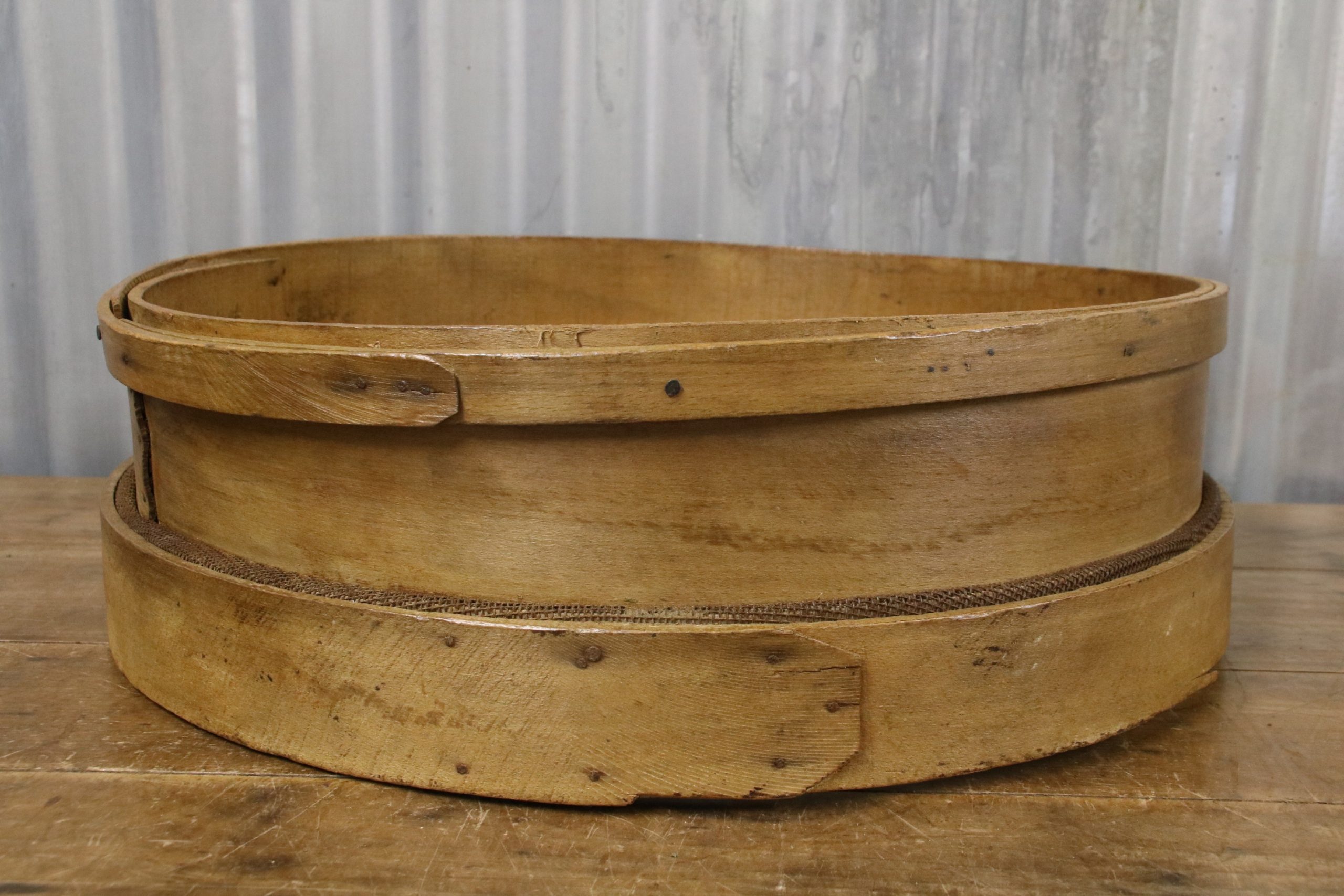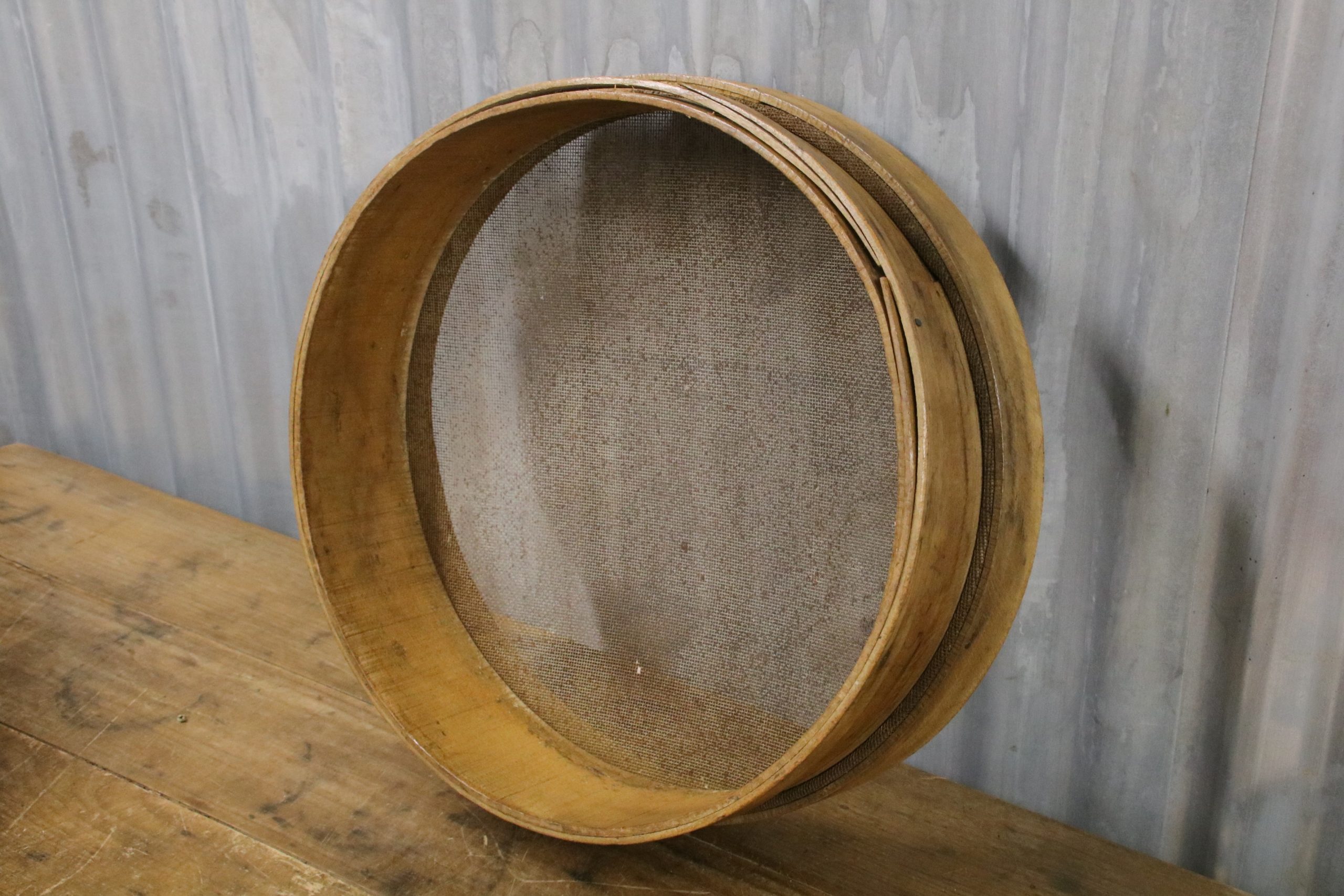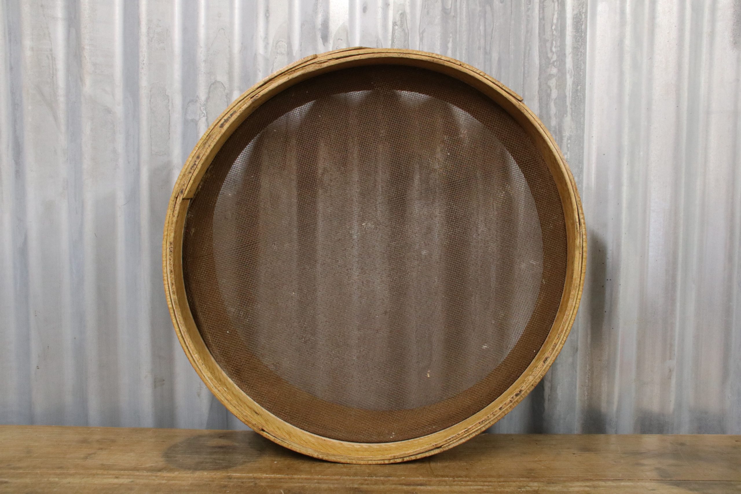 The sieve is in very good condition with a few marks and stains due to age. The mesh is very fine and it has some faint handwriting on the side. It has been waxed and polished.