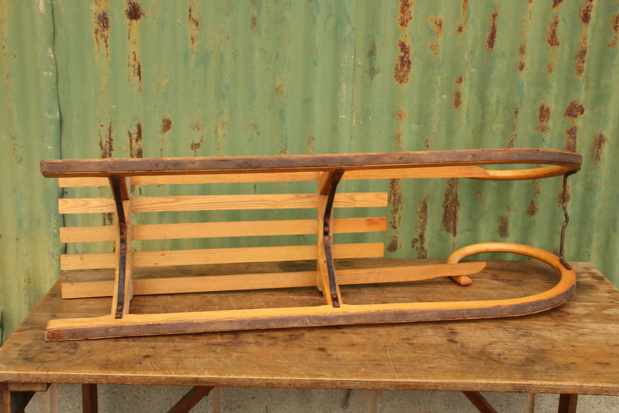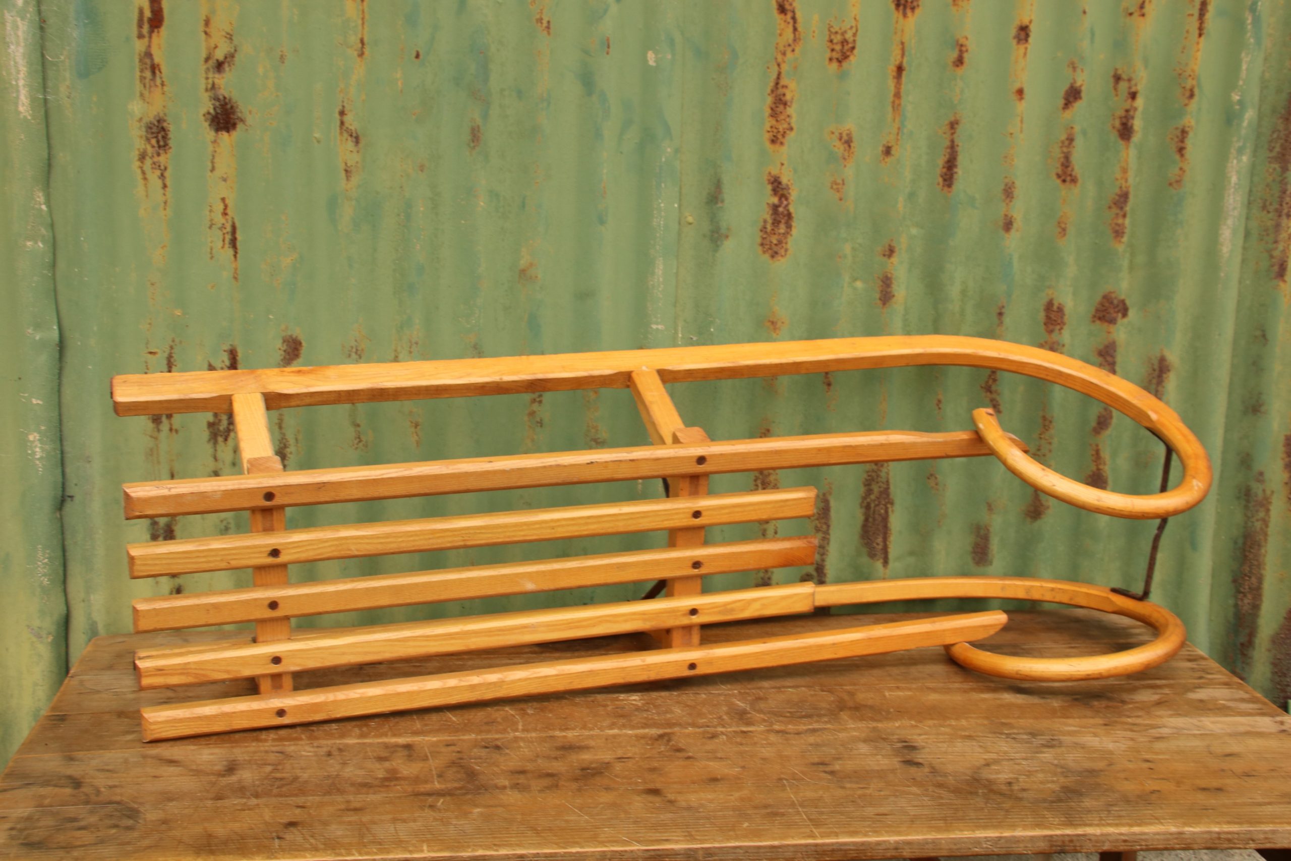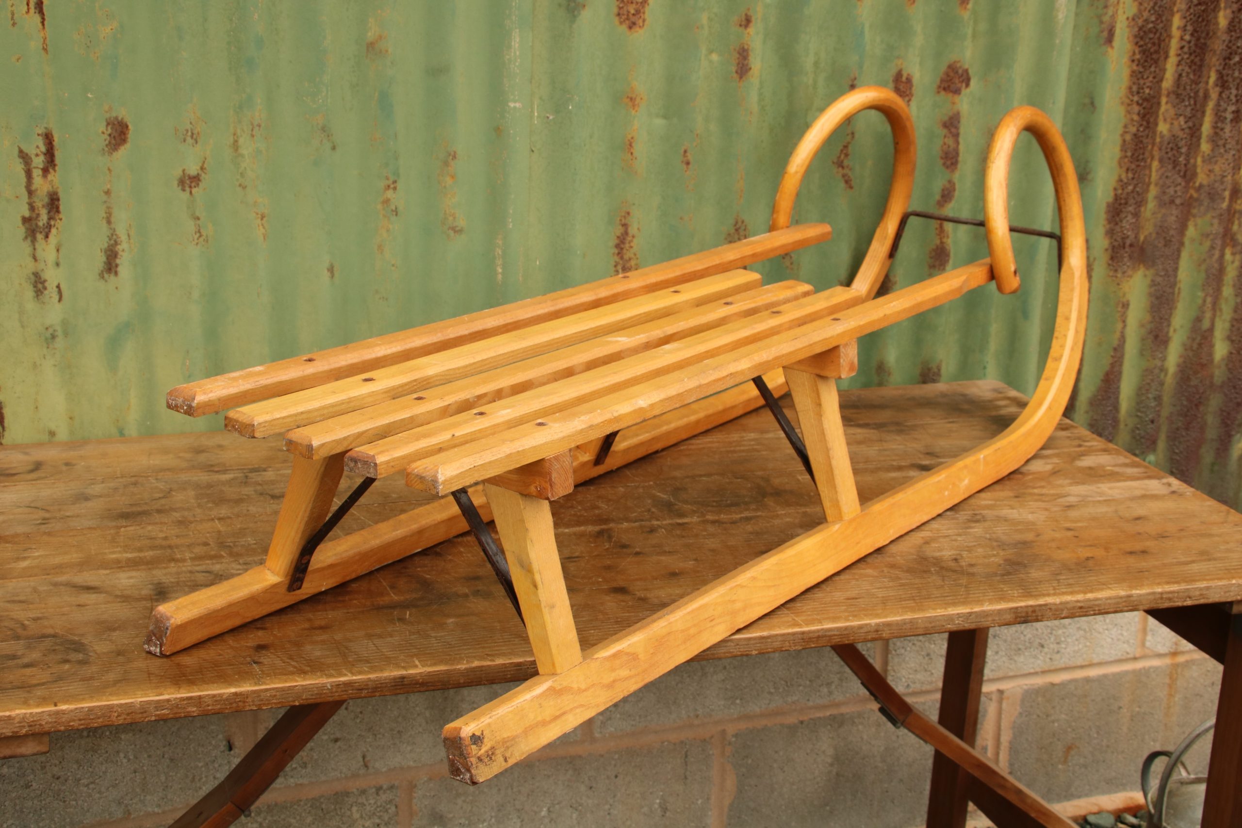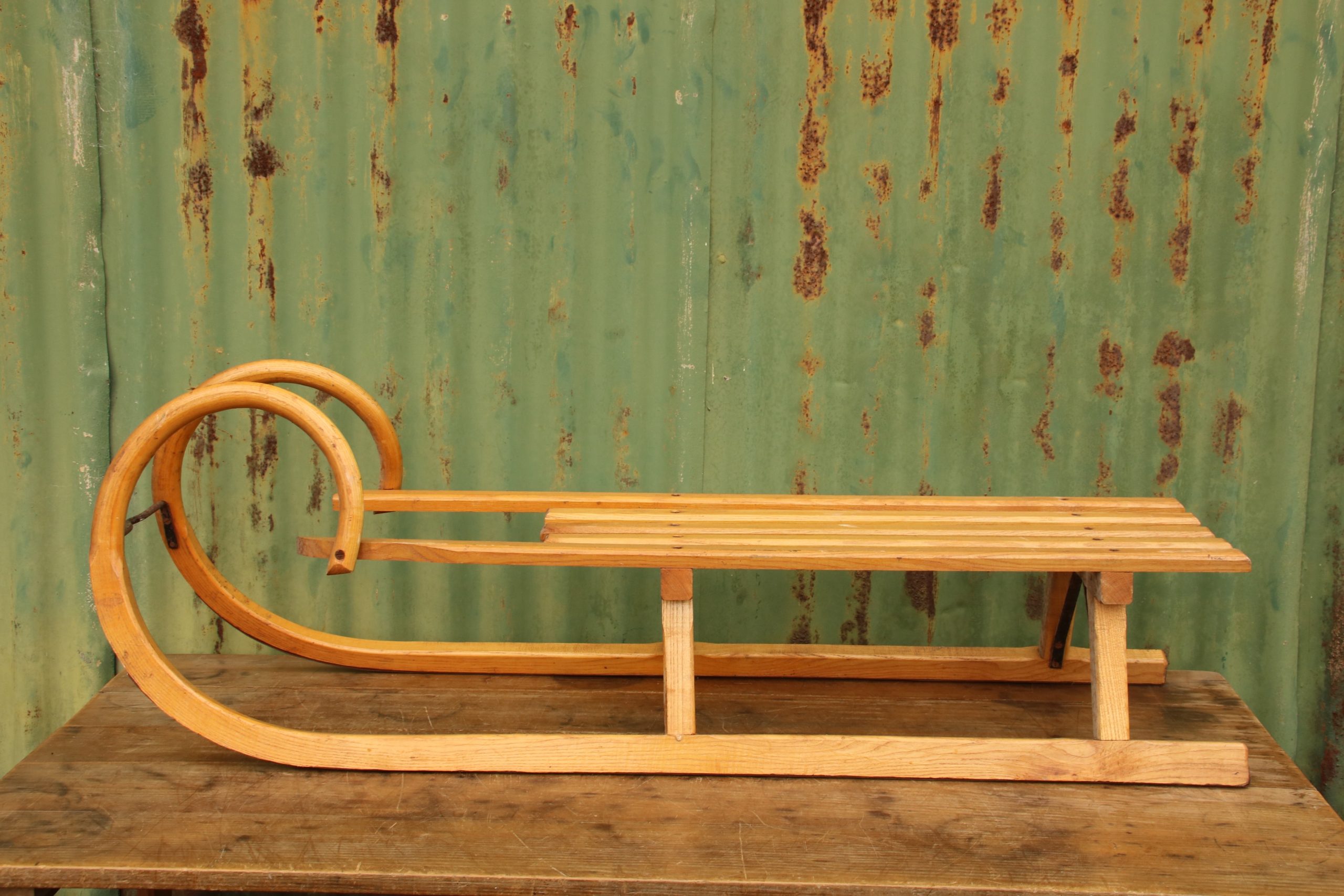 The sledge is in very good, vintage condition with a few marks and scratches due to age. It has beautiful traditional, curved bars at the front and a long seating area!