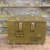 A very industrial, green wooden trunk. Perfect for storage or can be used as a small coffee table.